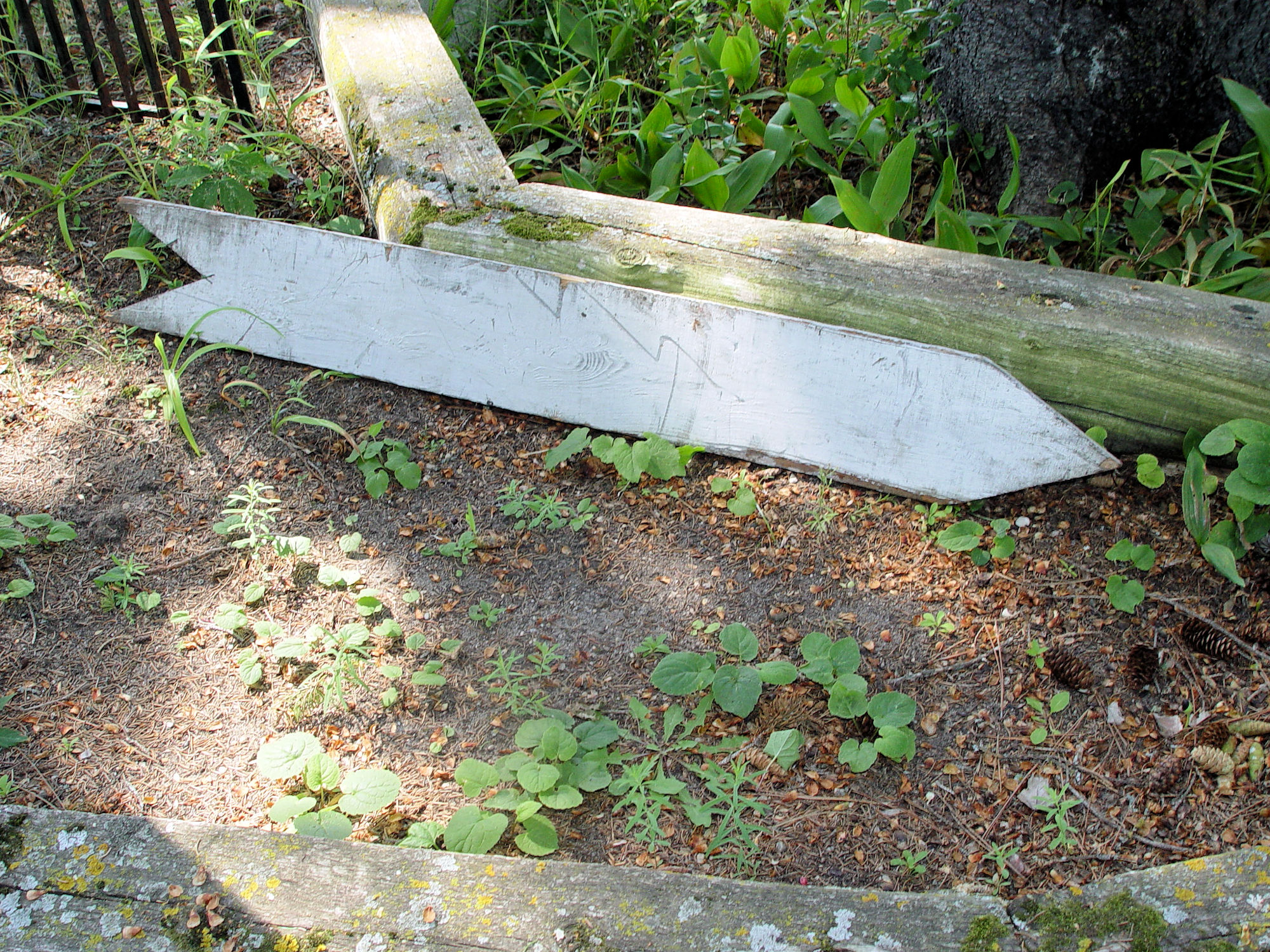 Painted a light silver background with black lettering.
