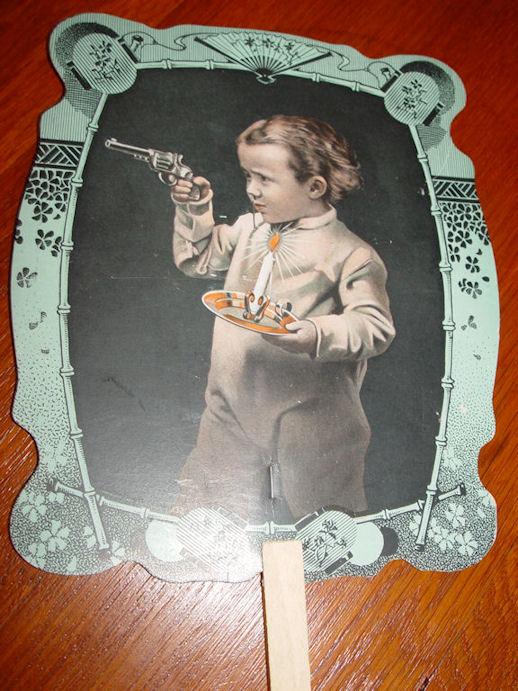 The graphics on this are fantastic! Little boy in his long john underwear holding a candle and what looks to be a toy handgun or pistol.