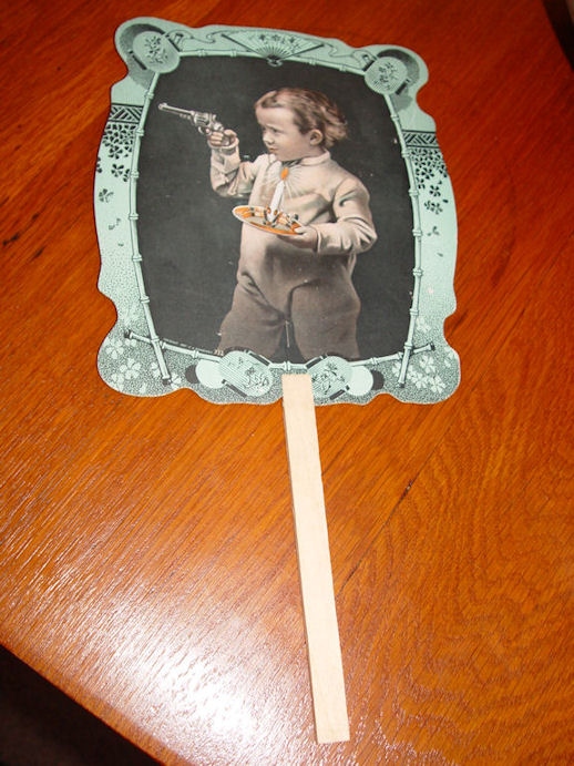 Great advertising fan c 1890. A by-gone convenience for customers when business's gave away fans that advertised their services. Fans were very important to circulate stifling hot days.
