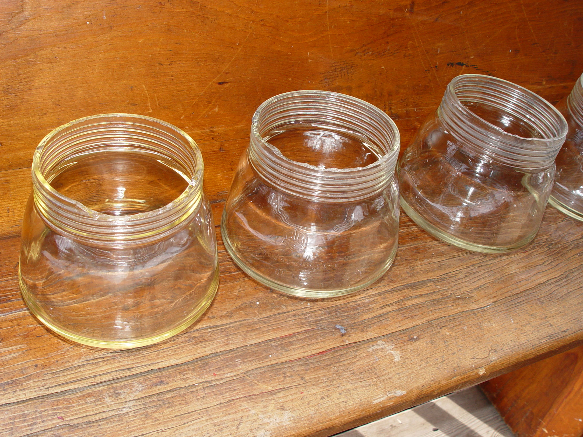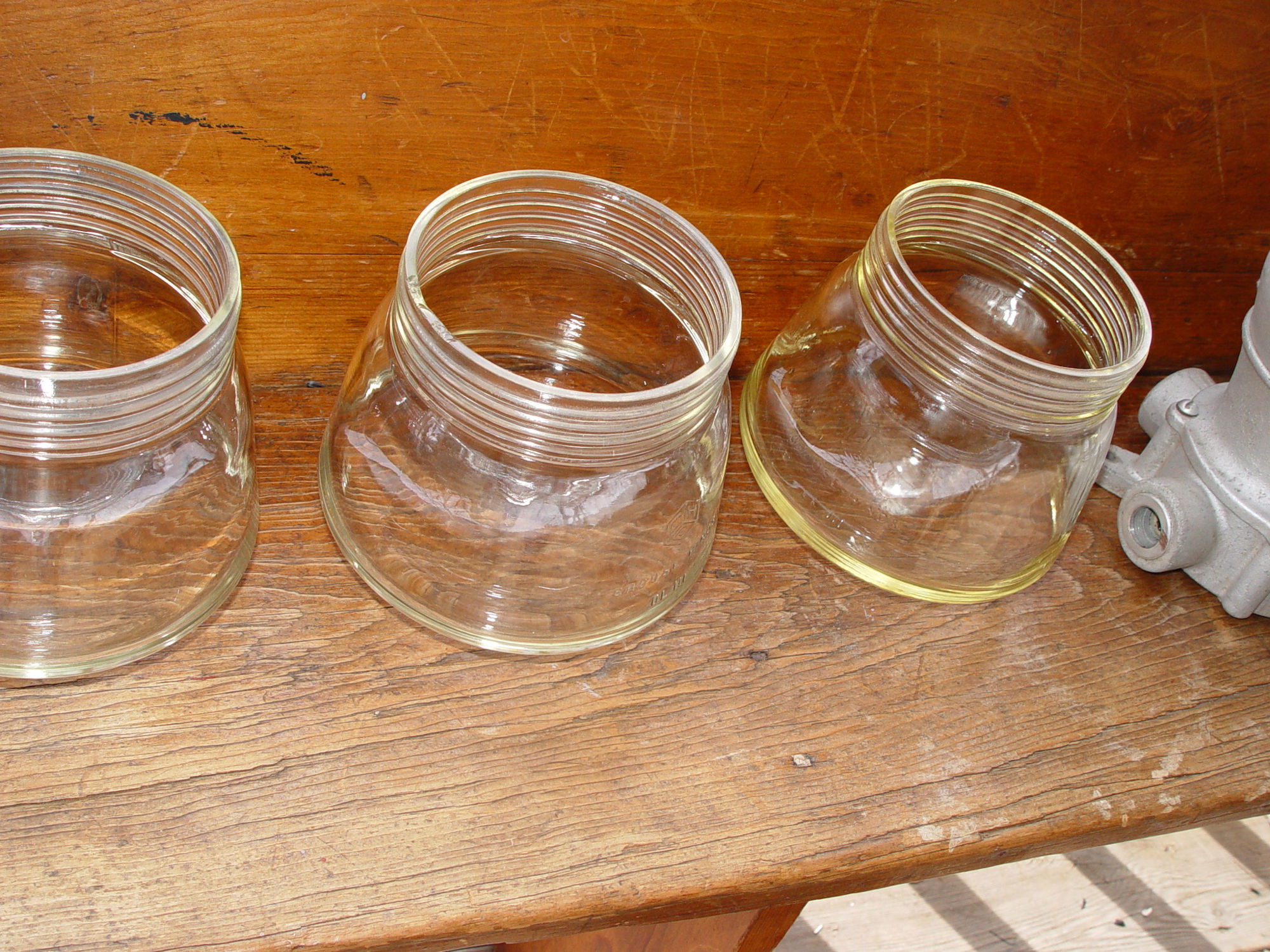 chipped edges at the thread. The one shown in the last photo, (the one I missed), is equally as nice but that one has again a glass shade with chipped edge. Note that when screwed onto fixture you see no damage to the glass.