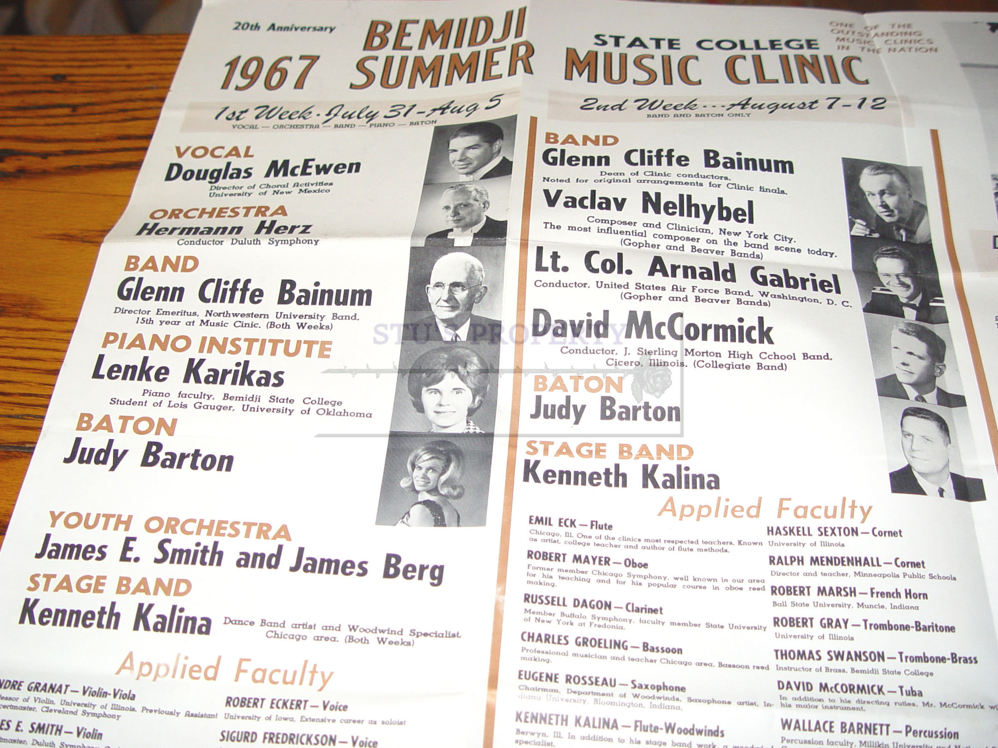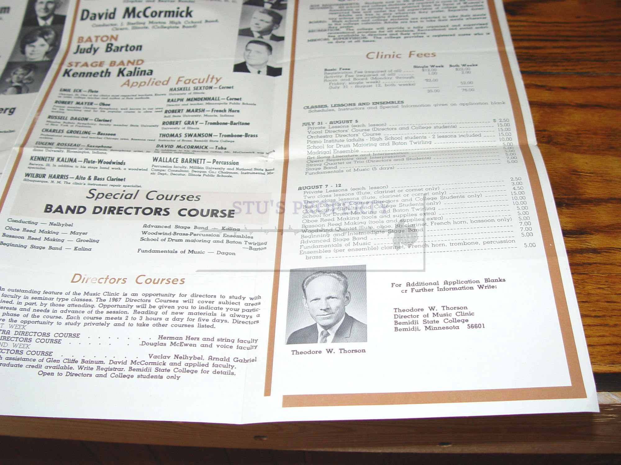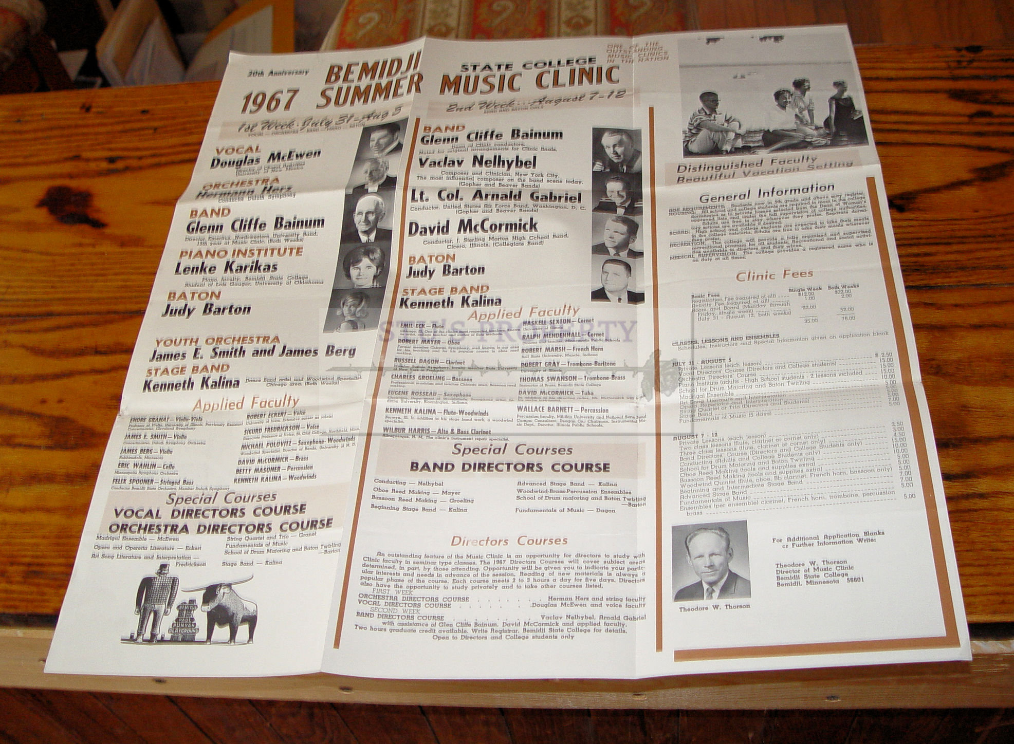 A wonderful collectible for the musical history buff. 1967 Bemidji State College Summer Music Clinic. Theodor (Ted) W. Thorson, Director. One of the outstanding music clinics in the nation.