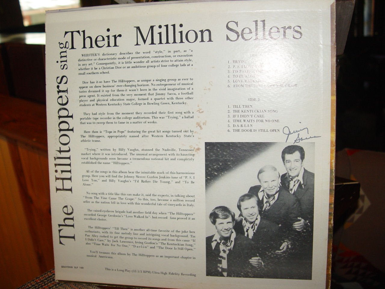 Mar 10, 2015 - James W. "Jimmy" Sacca Jr. died Saturday in Lexington at age 85. He was lead singer of the Hilltoppers, who from 1952 to 1959. Short note to the owners of the album signed in front, The Hill Toppers......signed, autographed in the back by Jimmy Sacca.