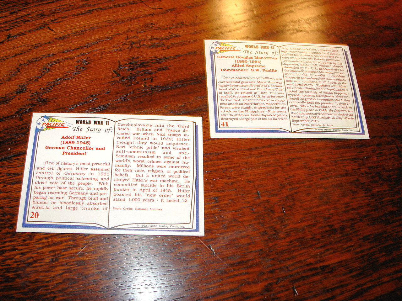 These vintage original cards were purchased in an older estate. General MacArthur no. 41 and Adolf Hitler no. 20.