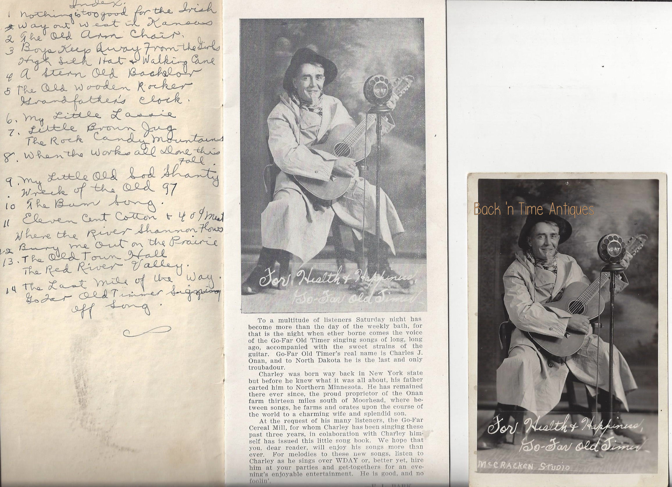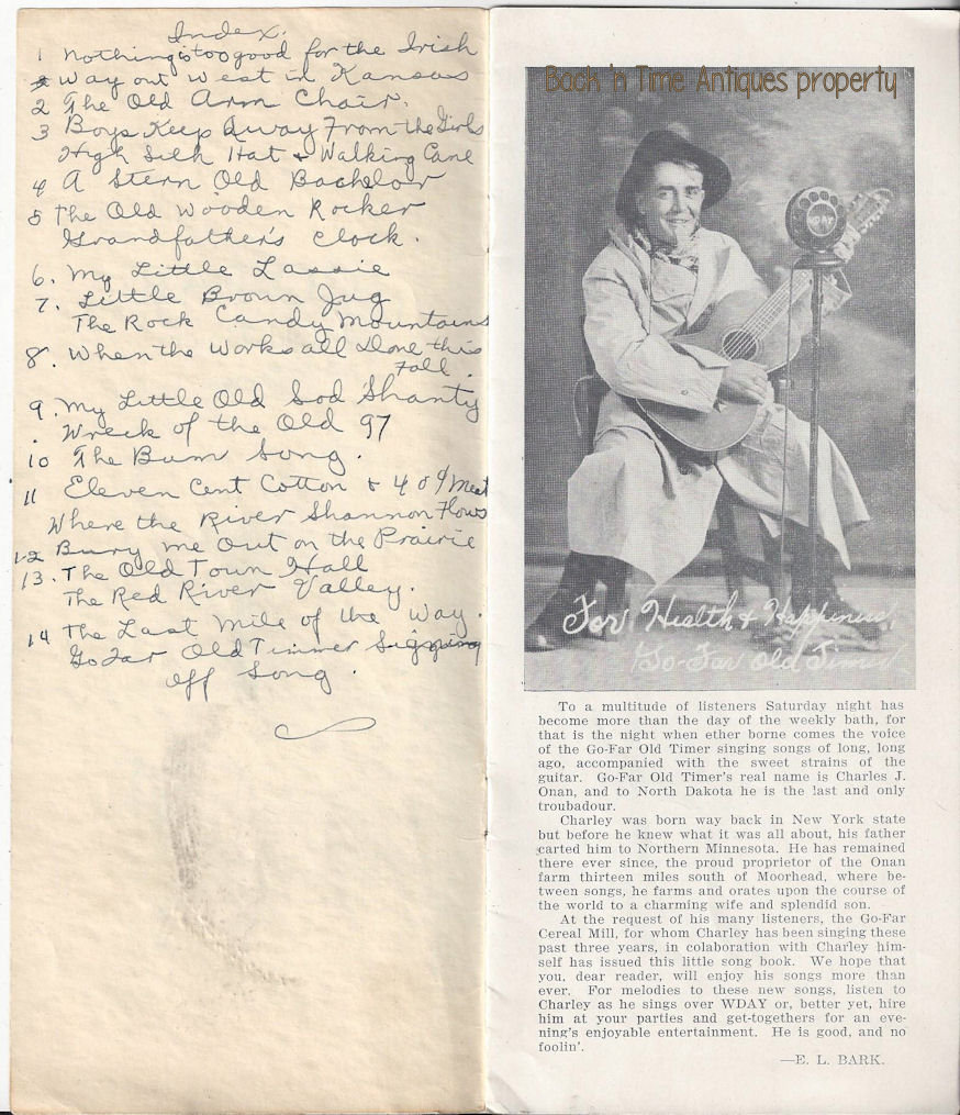 Along with this is a song book that I found at a later date with the photo inside showing my RPPC. These are a fun find and will be sold together. Many great early songs inside and someone at some point in history wrote the songs on the front end paper.