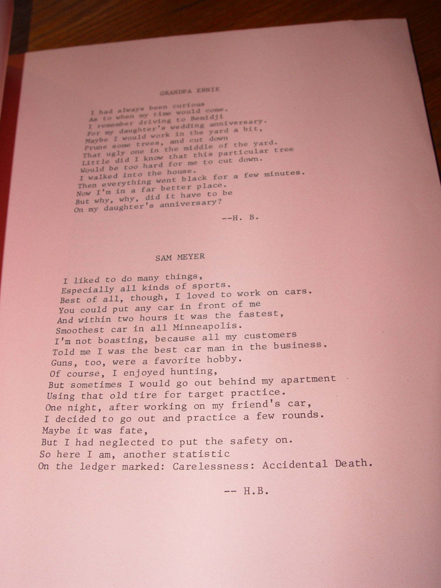by Barb Ghostley, staple binding with pink interior. No