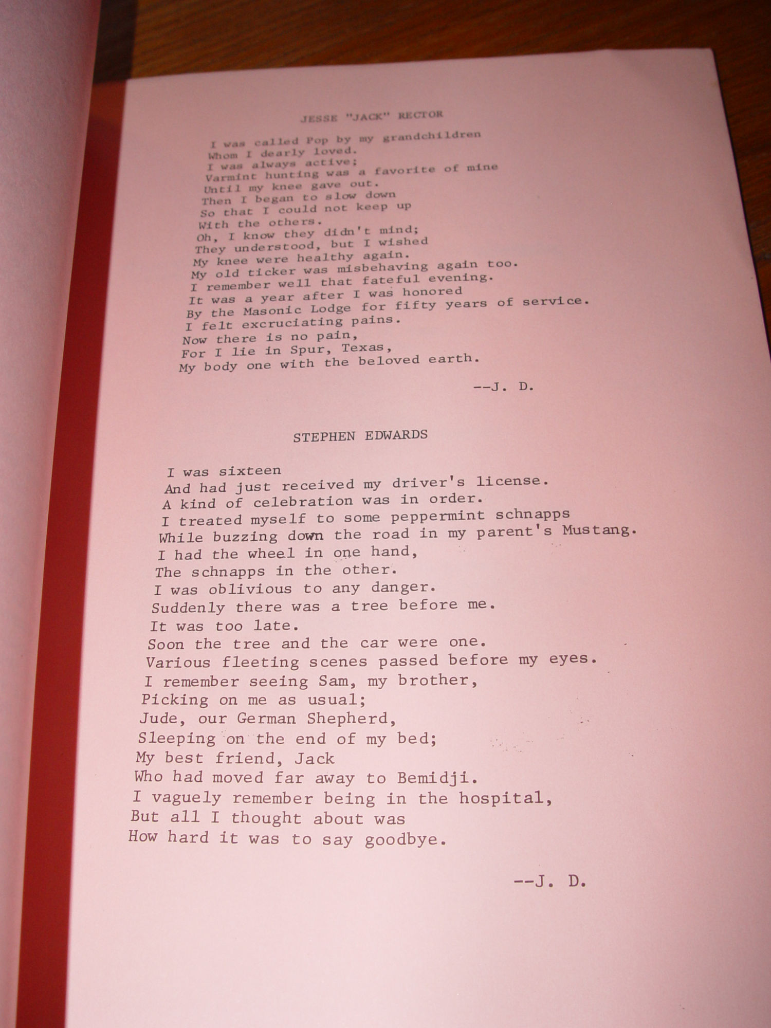 many years ago after her passing. Red paper covers designed