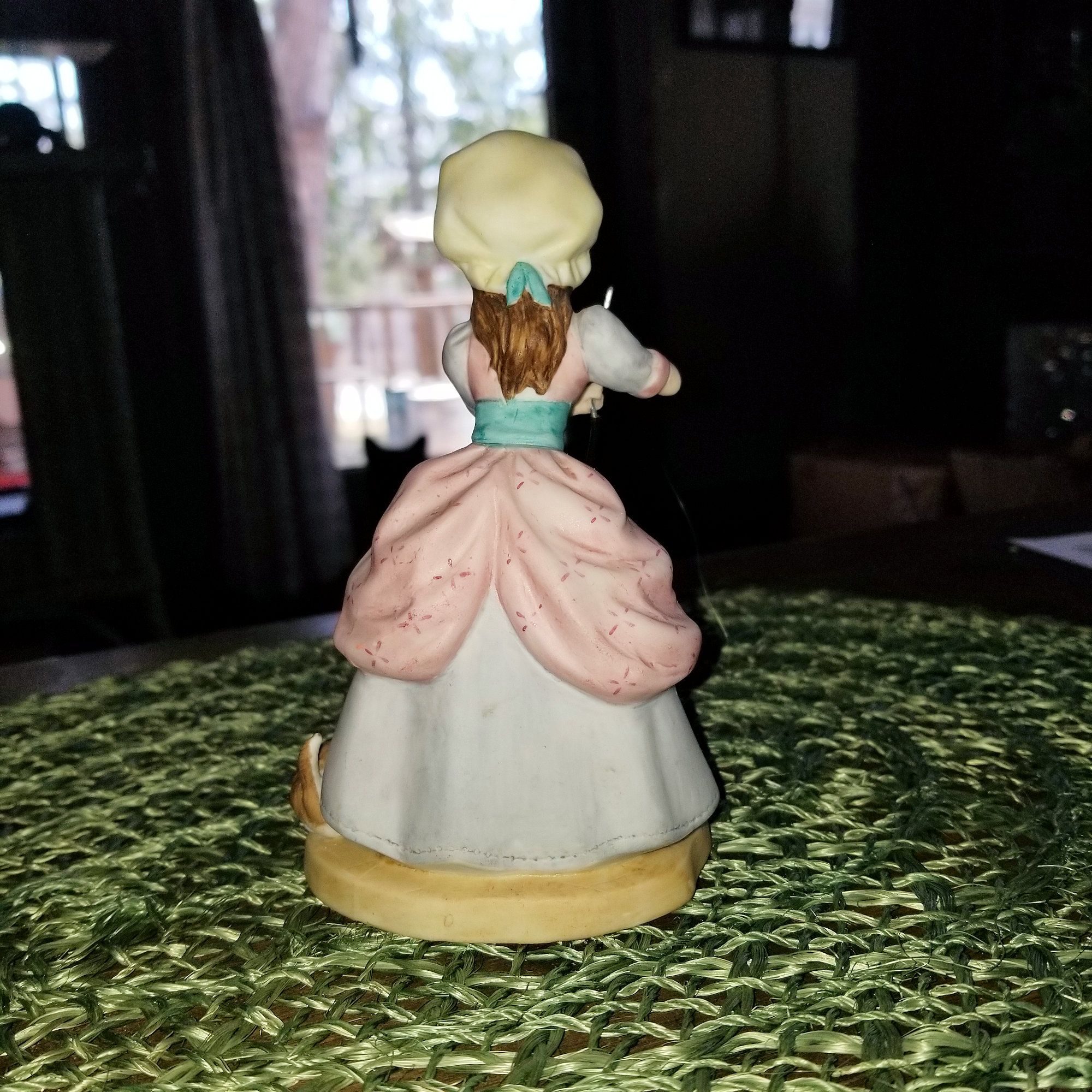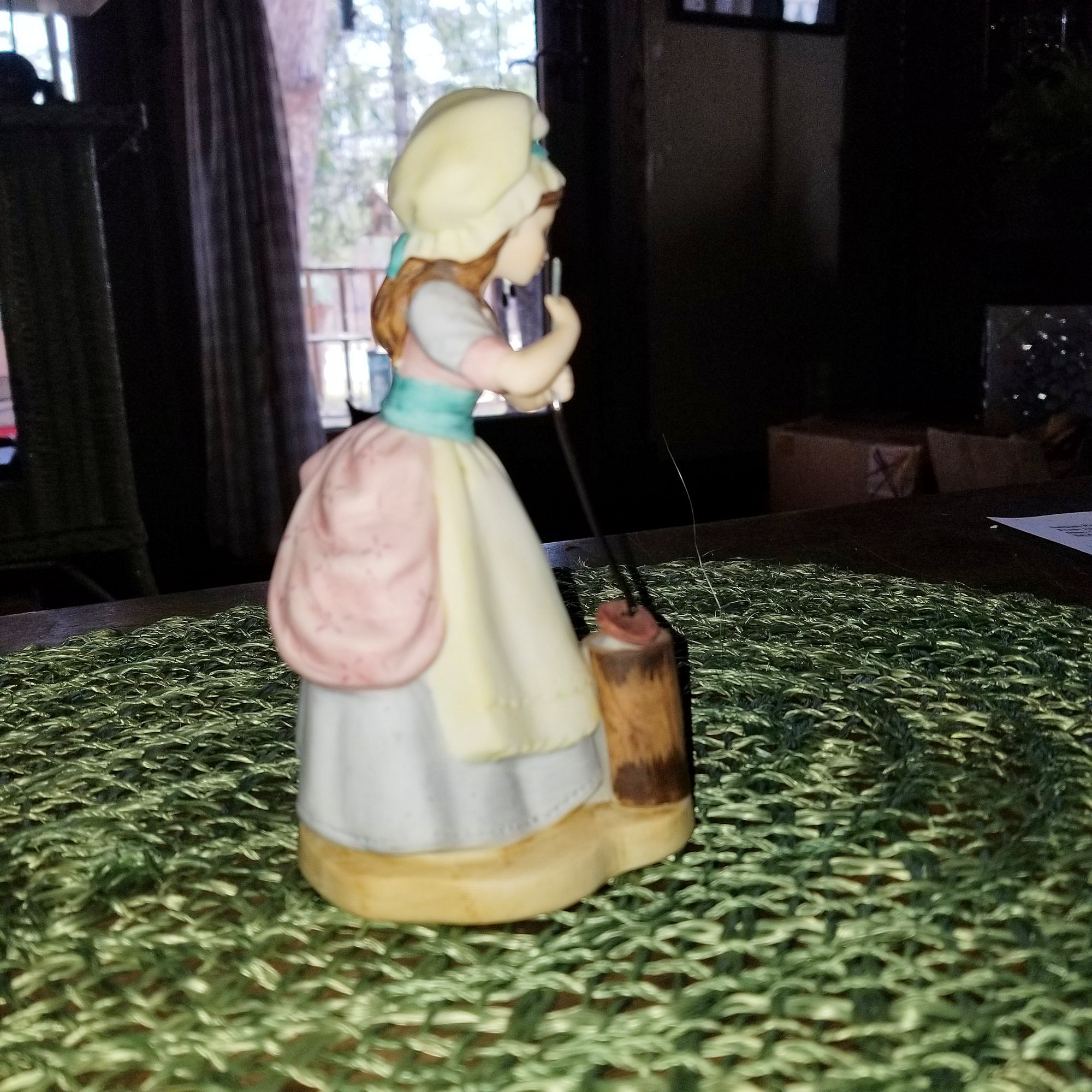 Porcelain bisque figurine farm girl churning butter