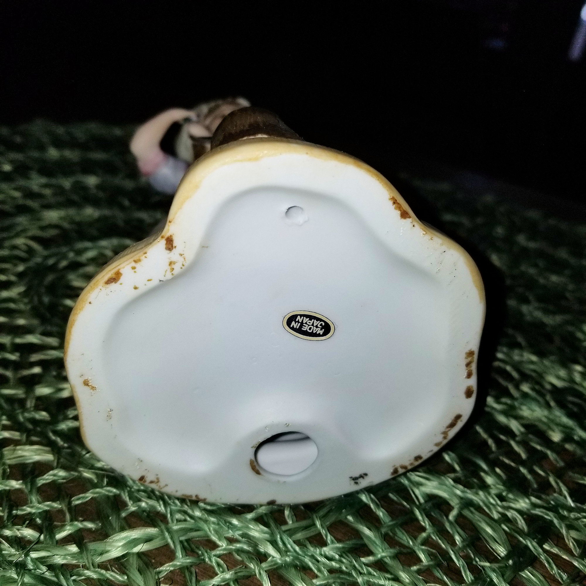 Showing it's original Made in Japan sticker on the bottom. The little metal rod that she's holding show some of the paint off the tip by her dainty hands. Otherwise in very nice condition. Great defined definition.
