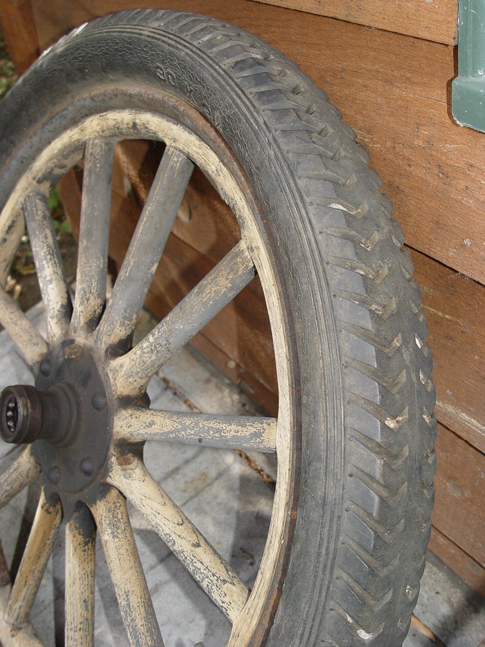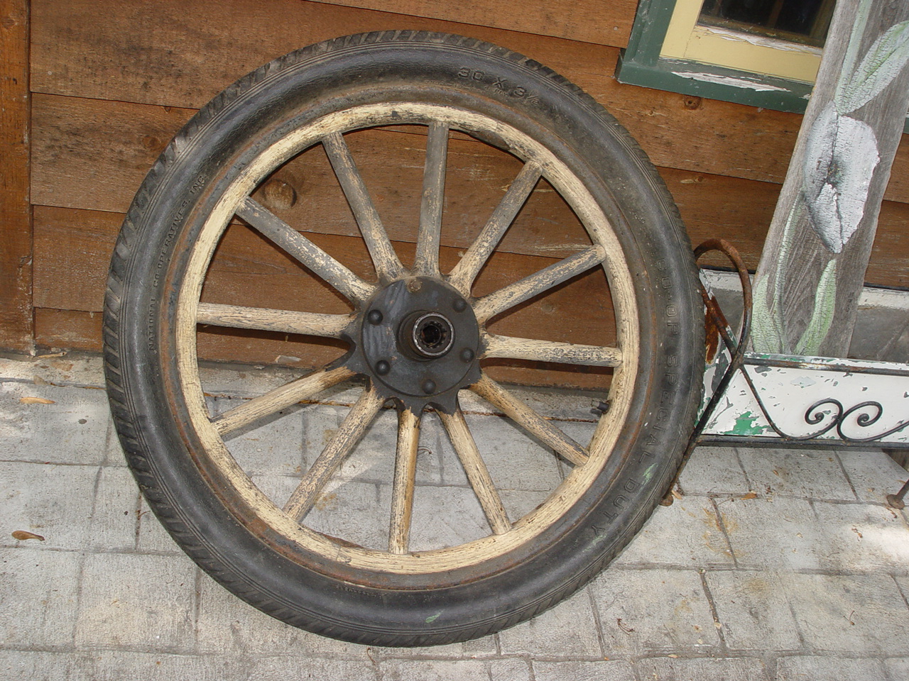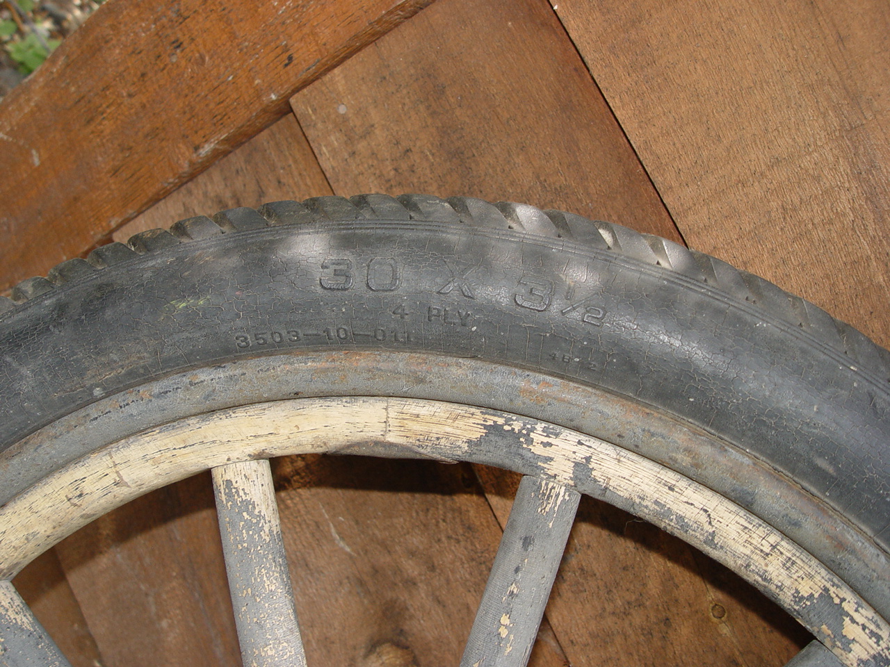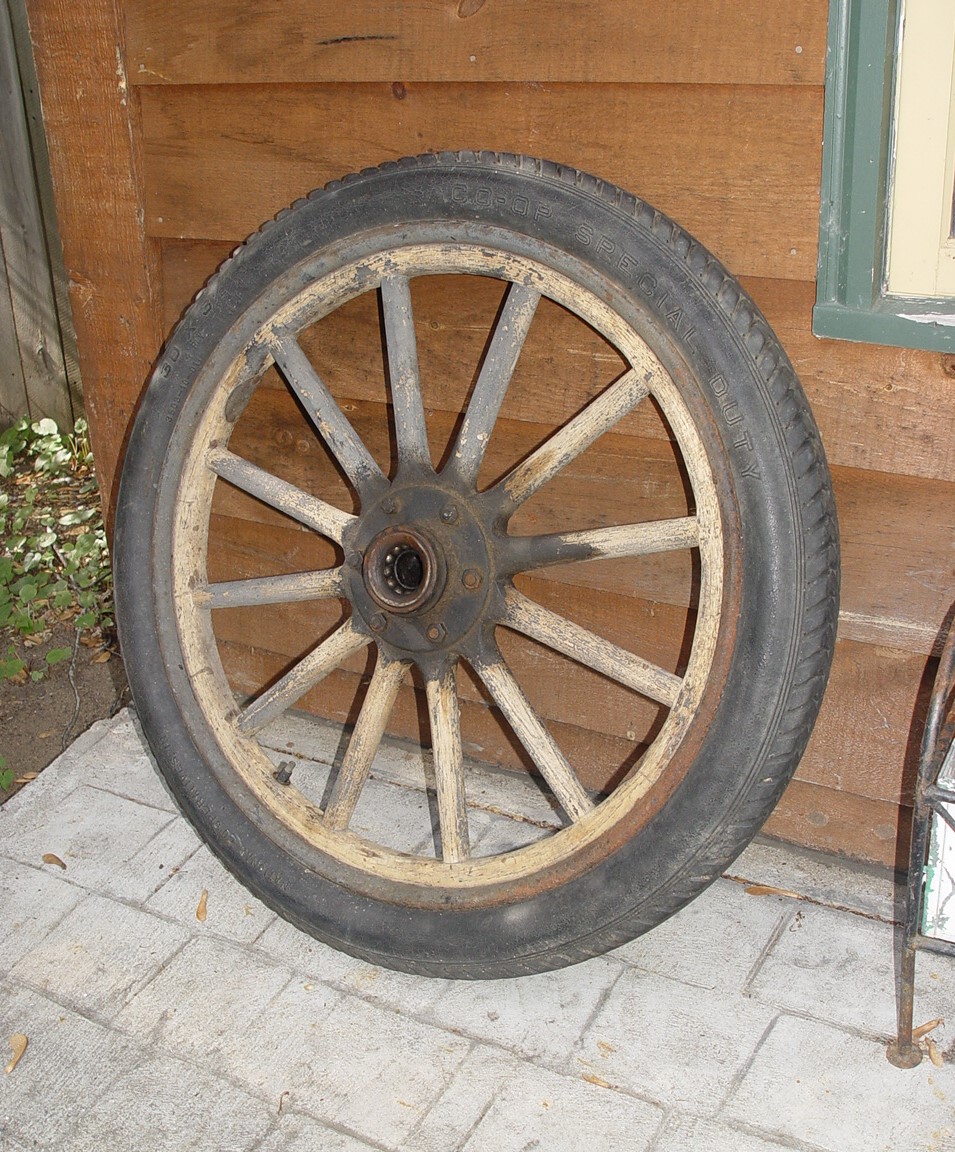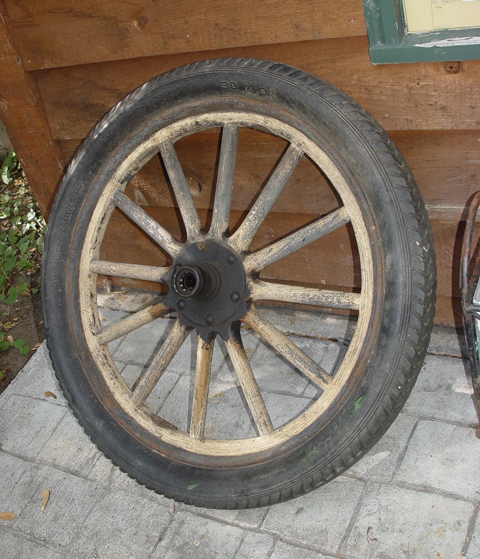 If you are doing a restoration this would be a good option to consider. Ford model T Truck or Car original wood spoke or spindle 30 x 3.5" 4ply tire and wheel. Thick rubber tire with a steel or cast iron hub with ball bearings inside.