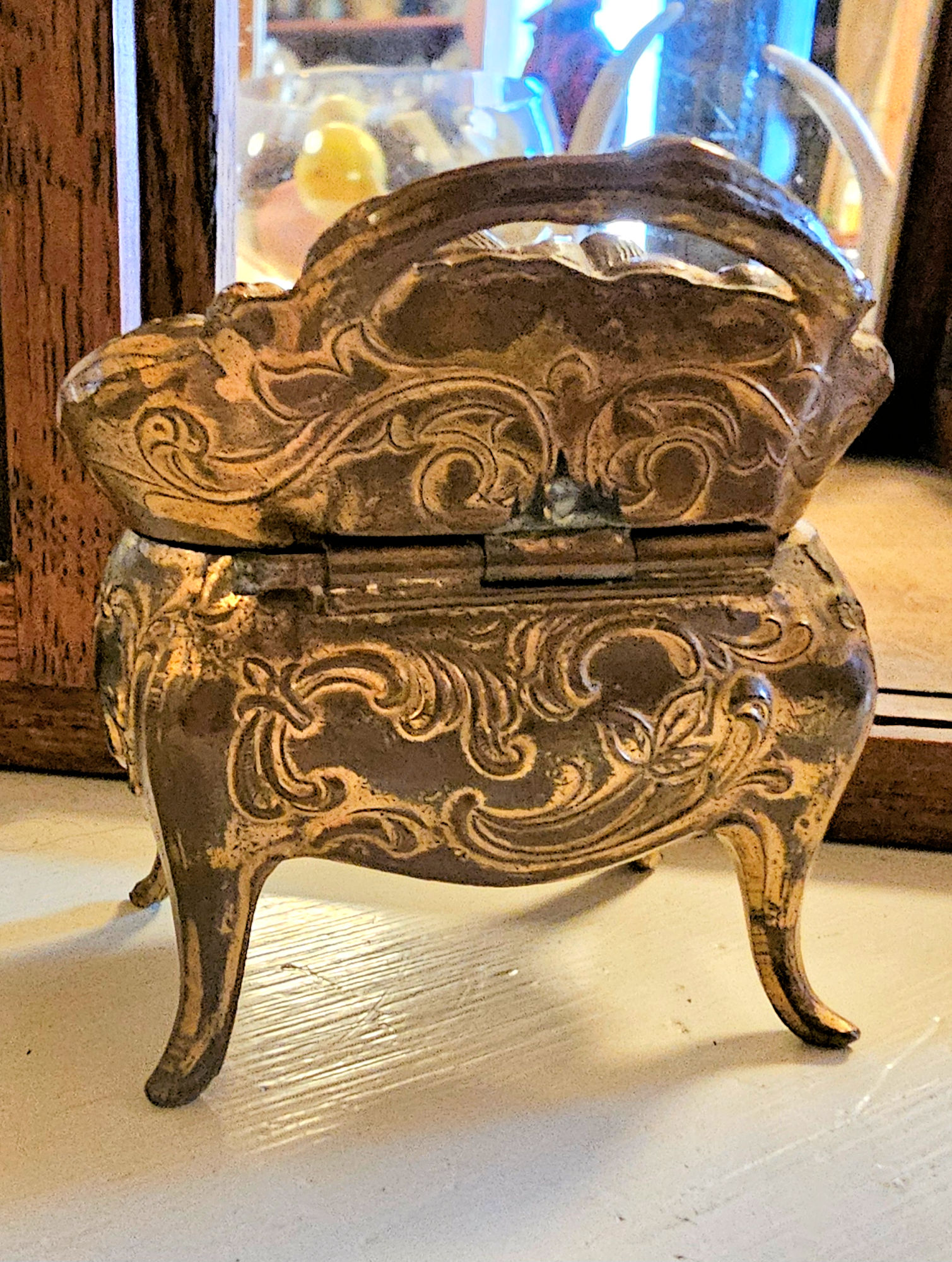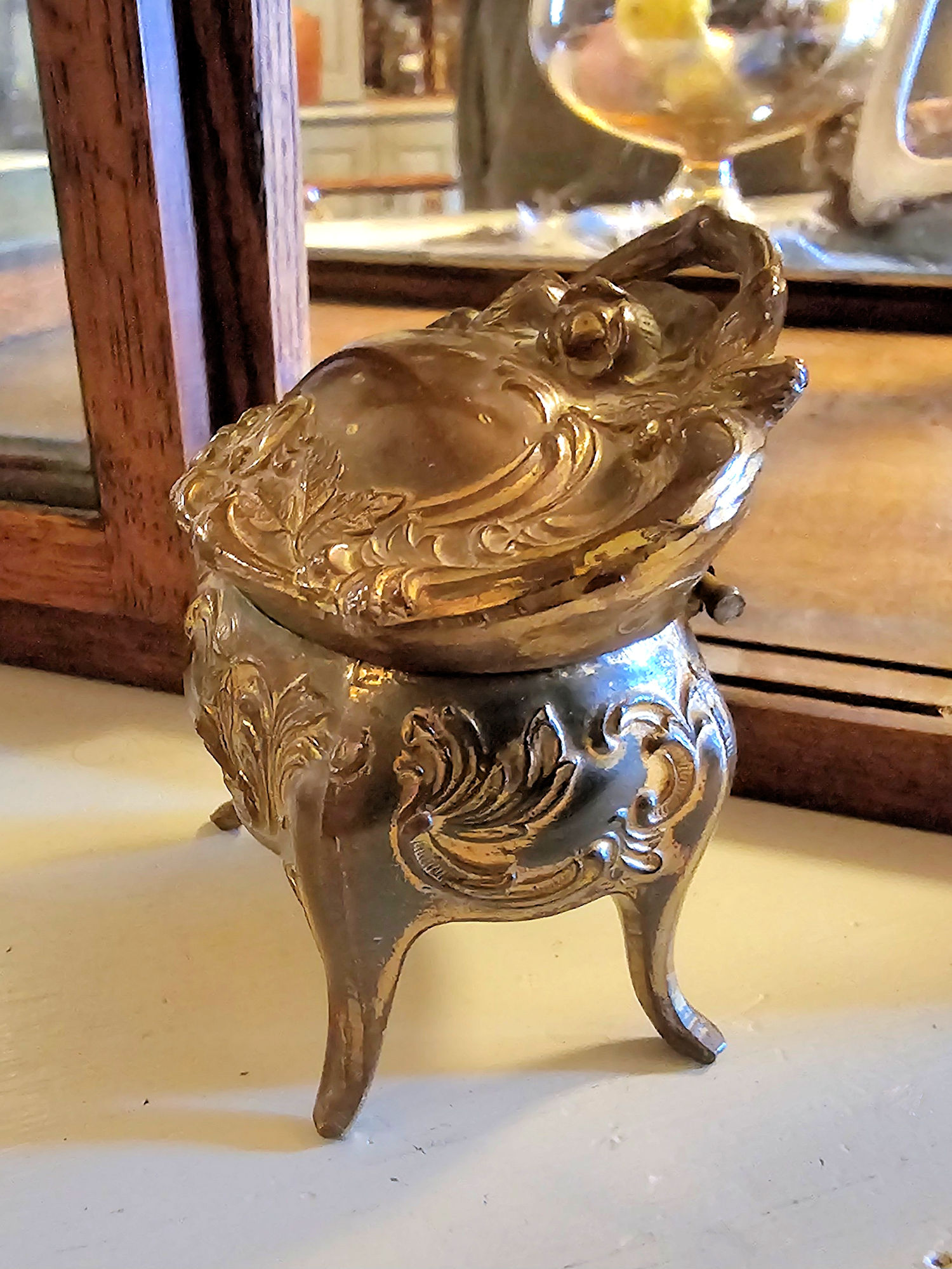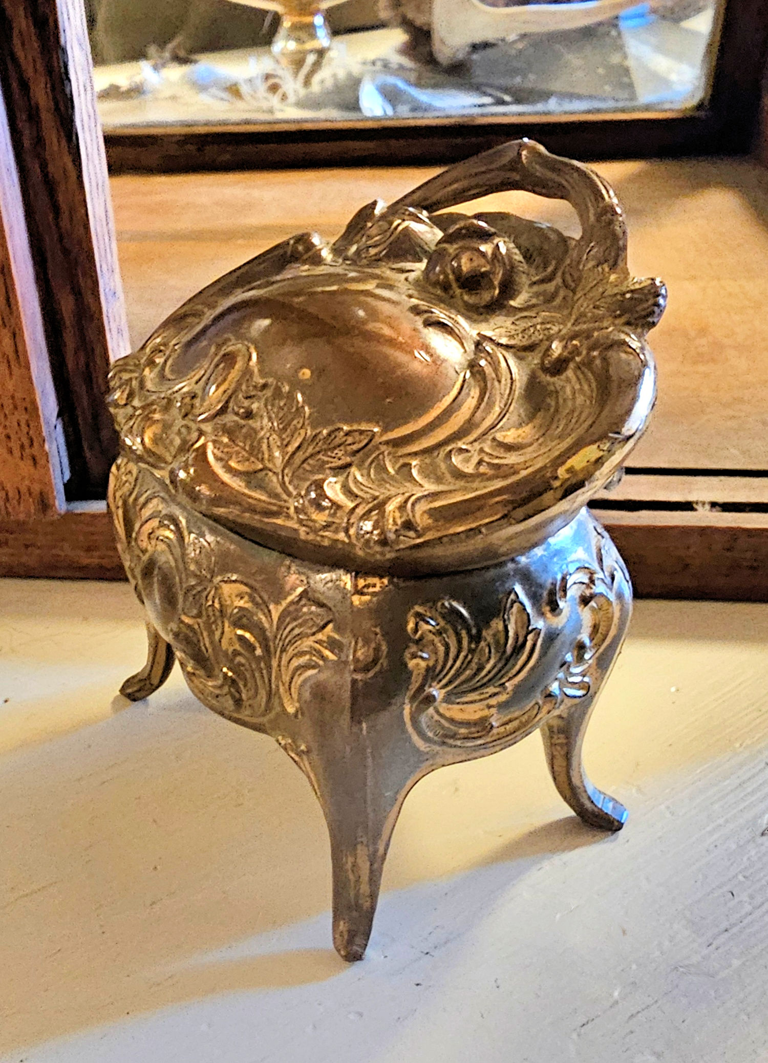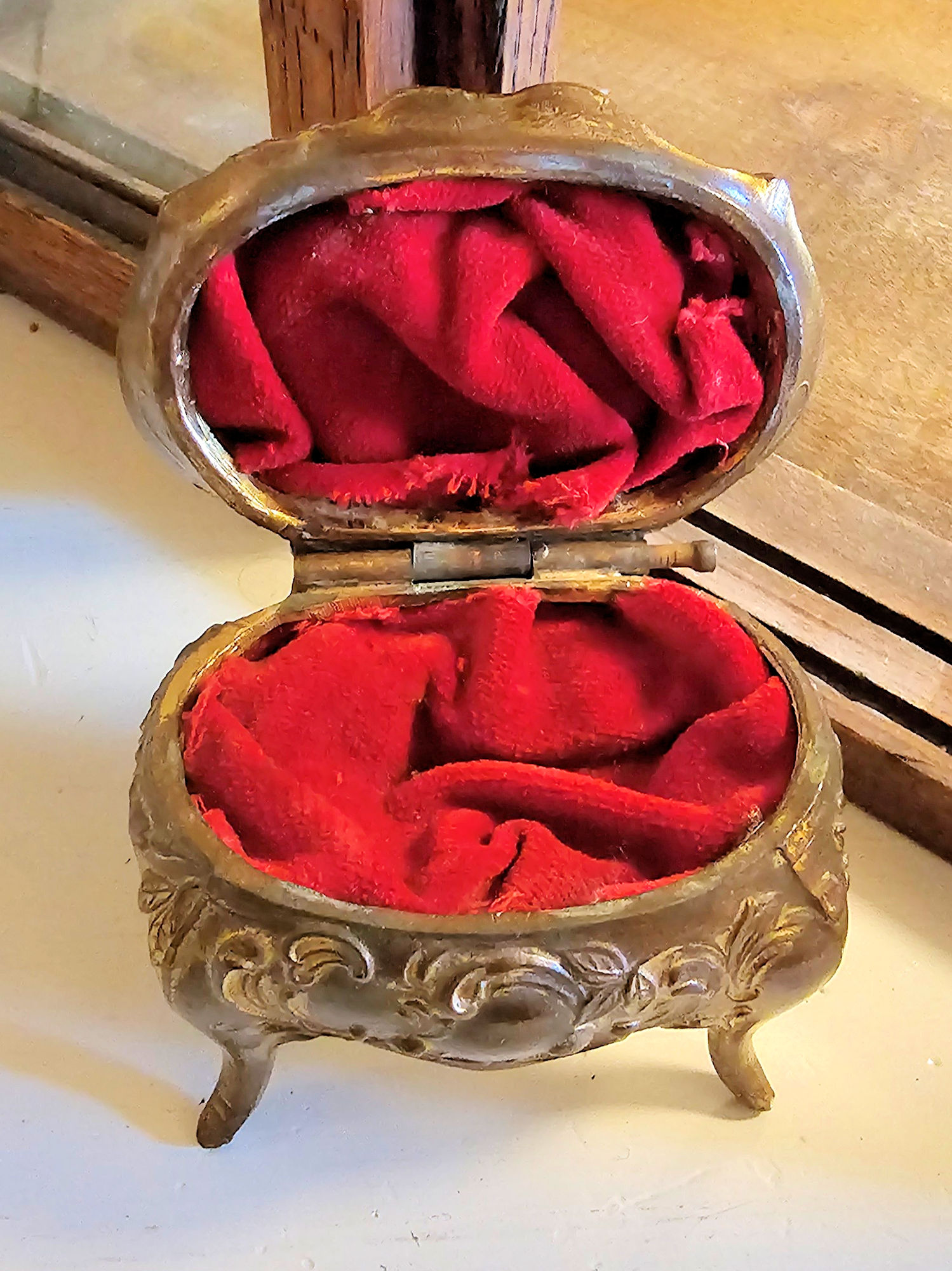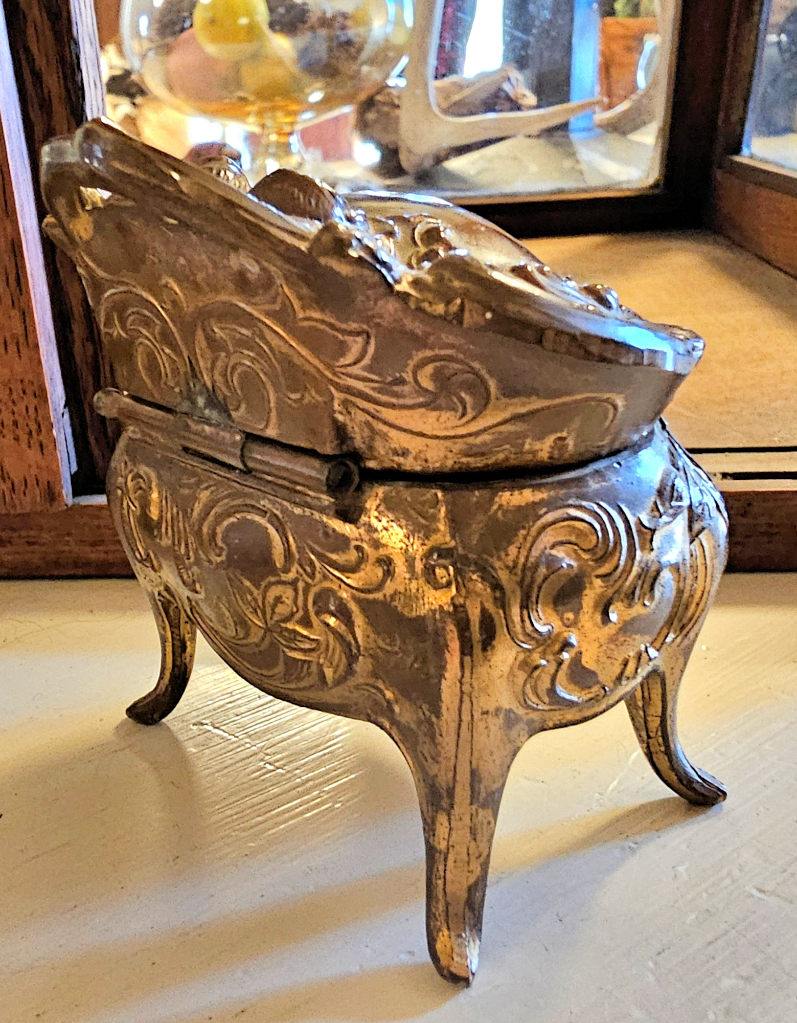Vintage Art Nouveau gilded metal jewelry casket trinket