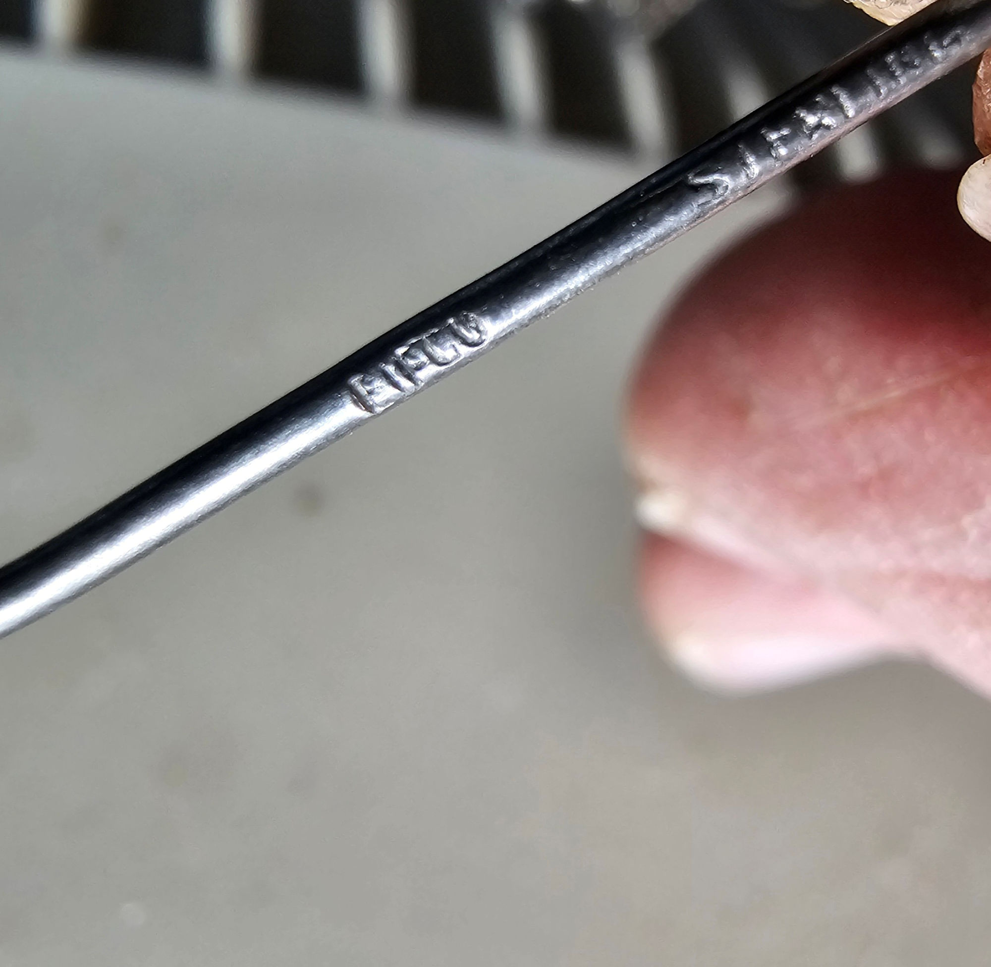 There is one central stone and the ones on each end are larger than the others. The brooch is stamped on the back of the pin itself, the maker's marks is hard to make out but you can clearly see the word 'Sterling'. I will let the buyer decide, see last photo. The clasp appears to be a 'C' type clasp.