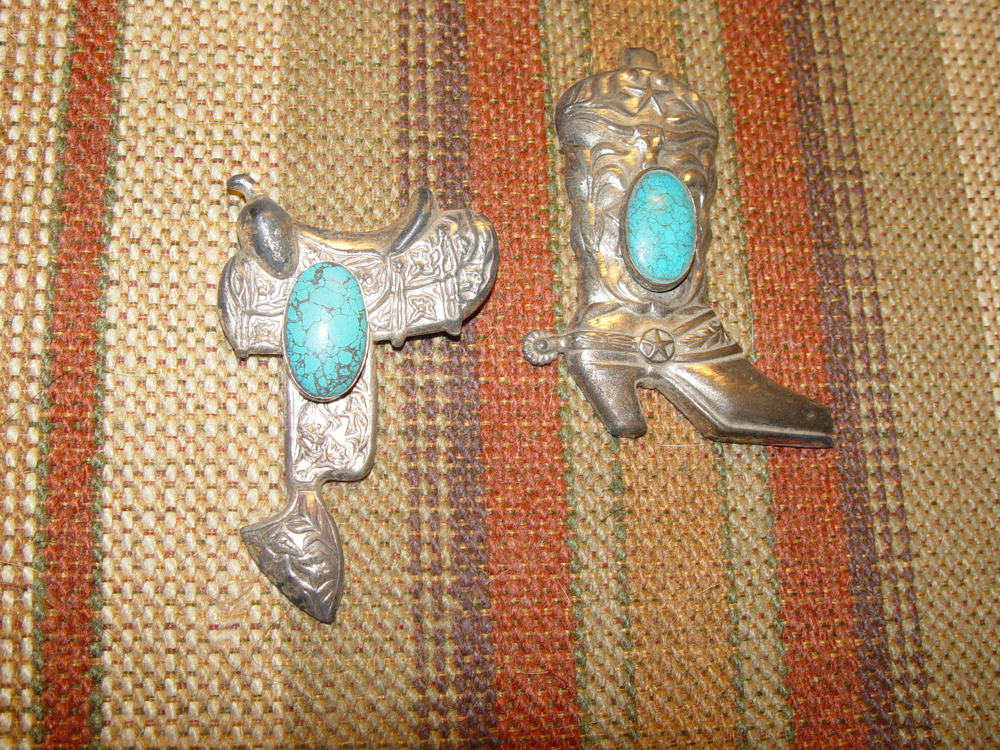 Vintage Silver Tone Cowboy Boots and Saddle w/