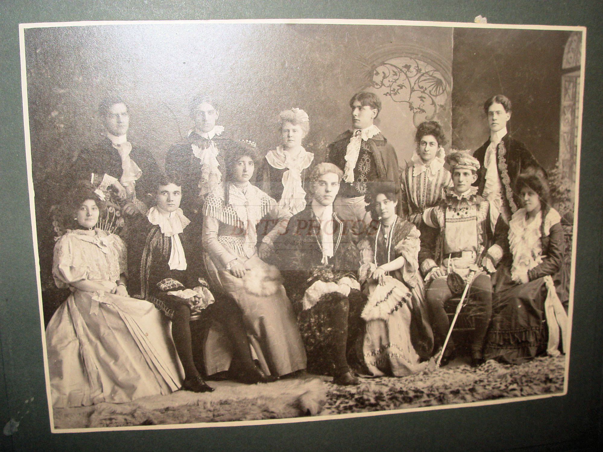 This is believed to be either Minnesota or Iowa theater. Found in an early estate many years ago. The actors and actresses seem to be dressed in 17th century fashion. Beautiful costumes.
