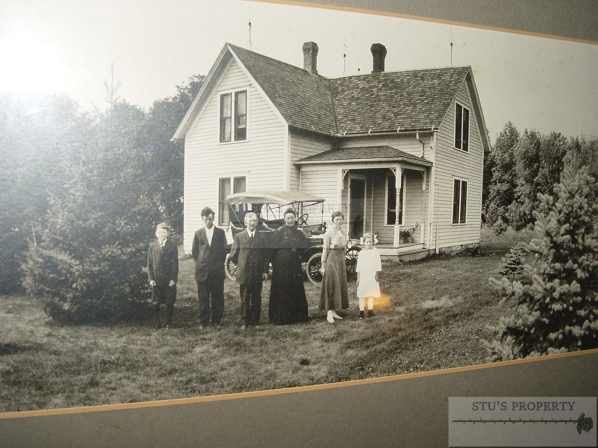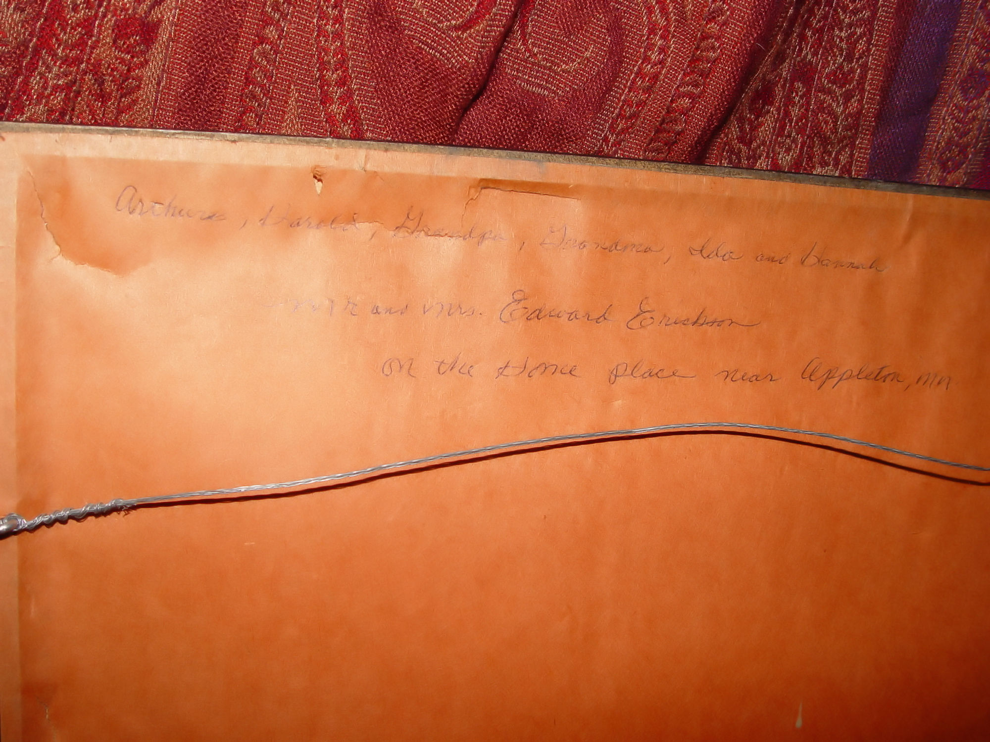 This was the home of Mr. & Mrs. Edward Erickson and his family. Named on the backside - Arthur, Donald, Grandpa, Grandma (Assuming Edward and his wife), Ida and Hannah. From what I found, Arthur Erickson was born in 1884 and died in 1974...if this is the same. This is a very clear and crisp photograph that was framed by a distant family member, hence the reference to Grandpa and Grandma. Would be wonderful for the Swift County or Appleton Minnesota Historic society or great for genealogy purposes. Beautiful detail and regardless of affiliation, would be attractive in any vintage or antique setting in home or office.