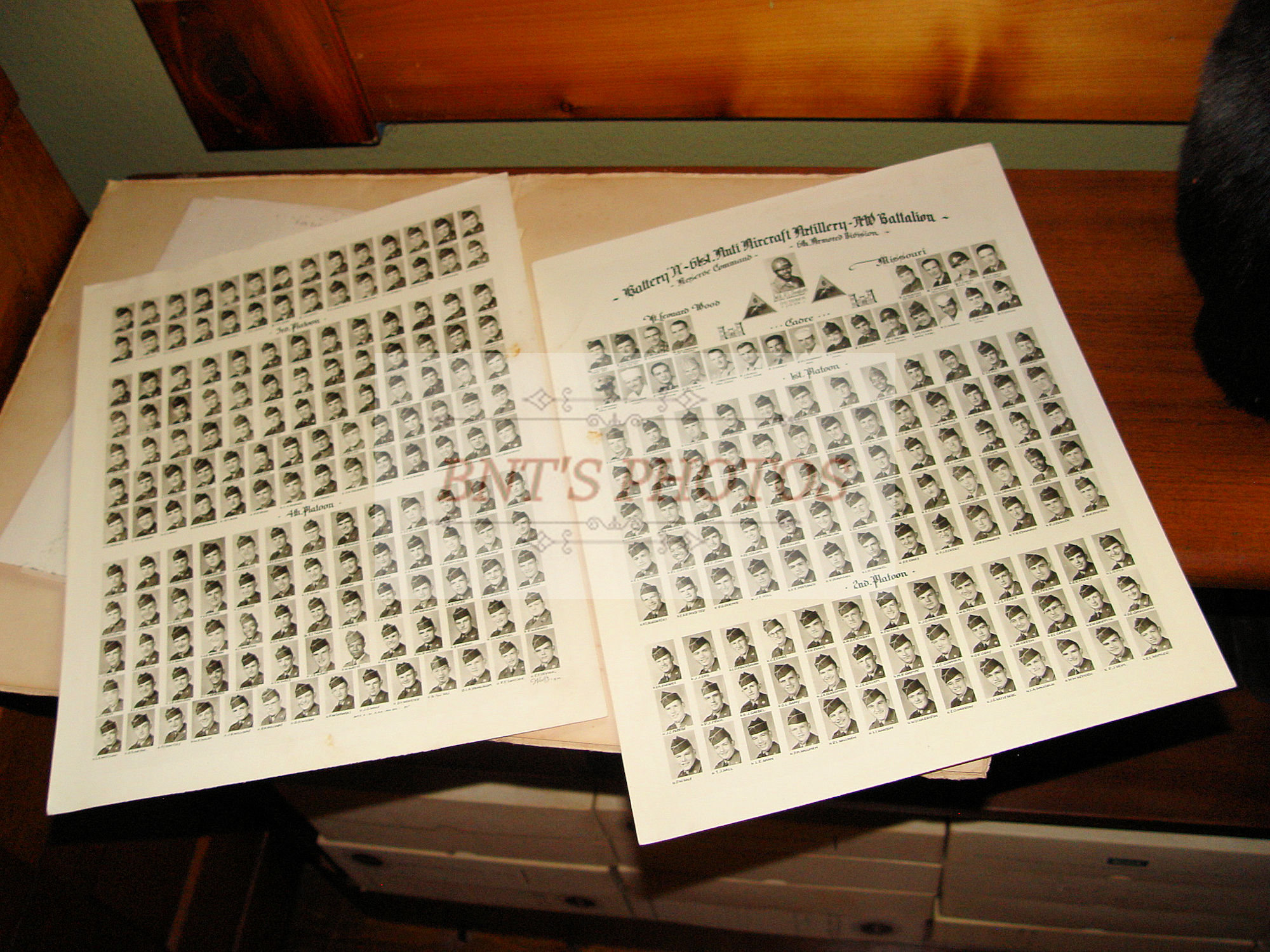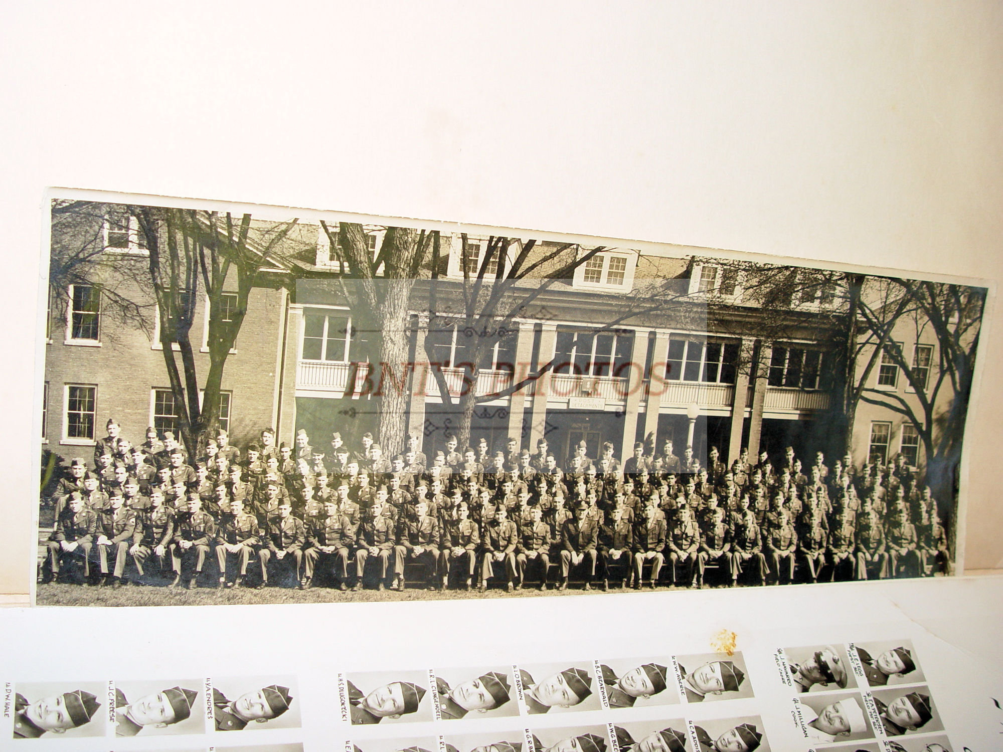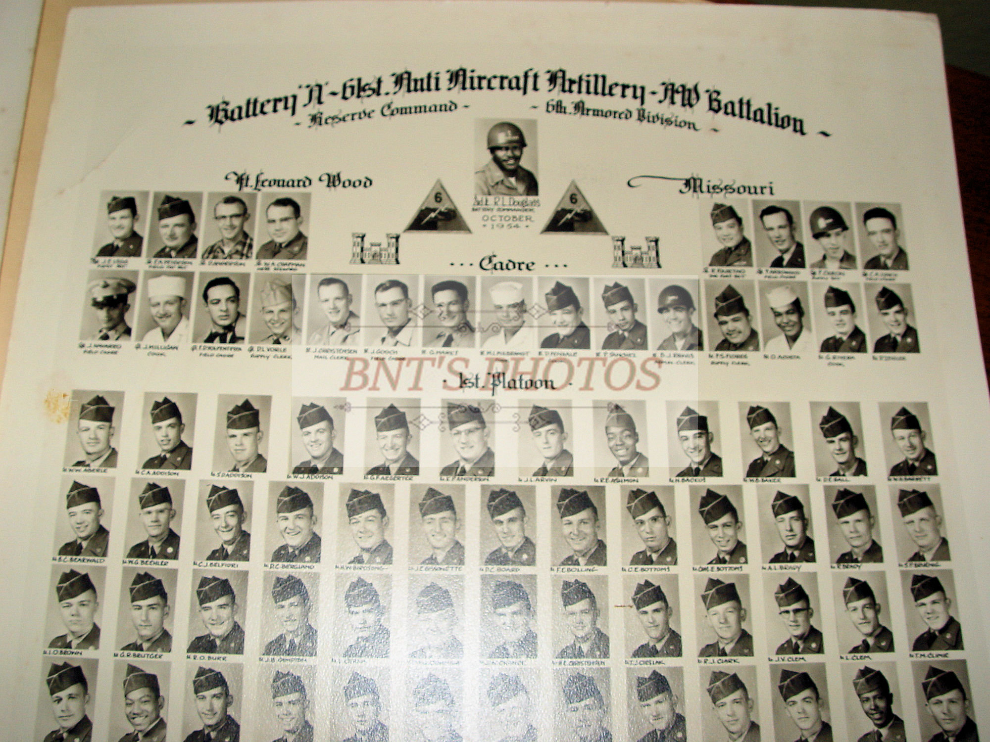 Original vintage military photos from 1954, taken at Fort Leonard Wood Missouri. These show a very large portfolio folder showing two large 10.5" x 13.5" sheets of photographs of all military soldiers in this battalion.