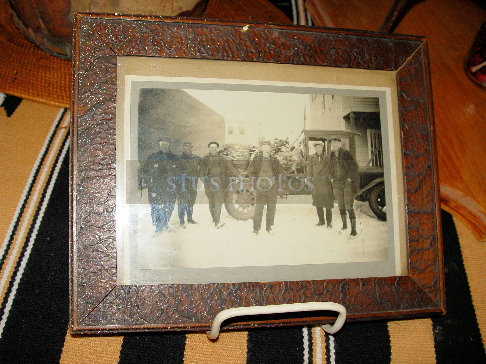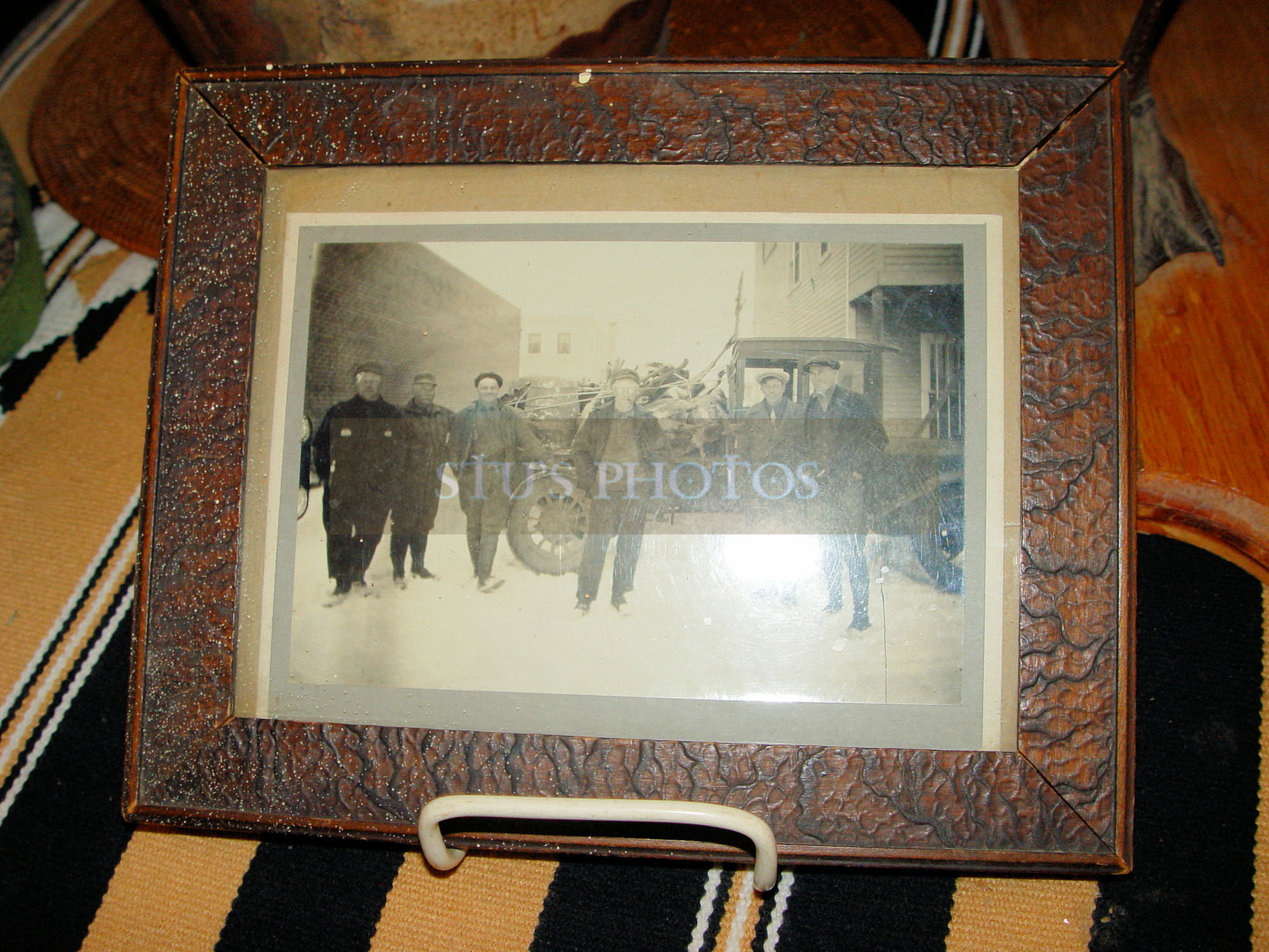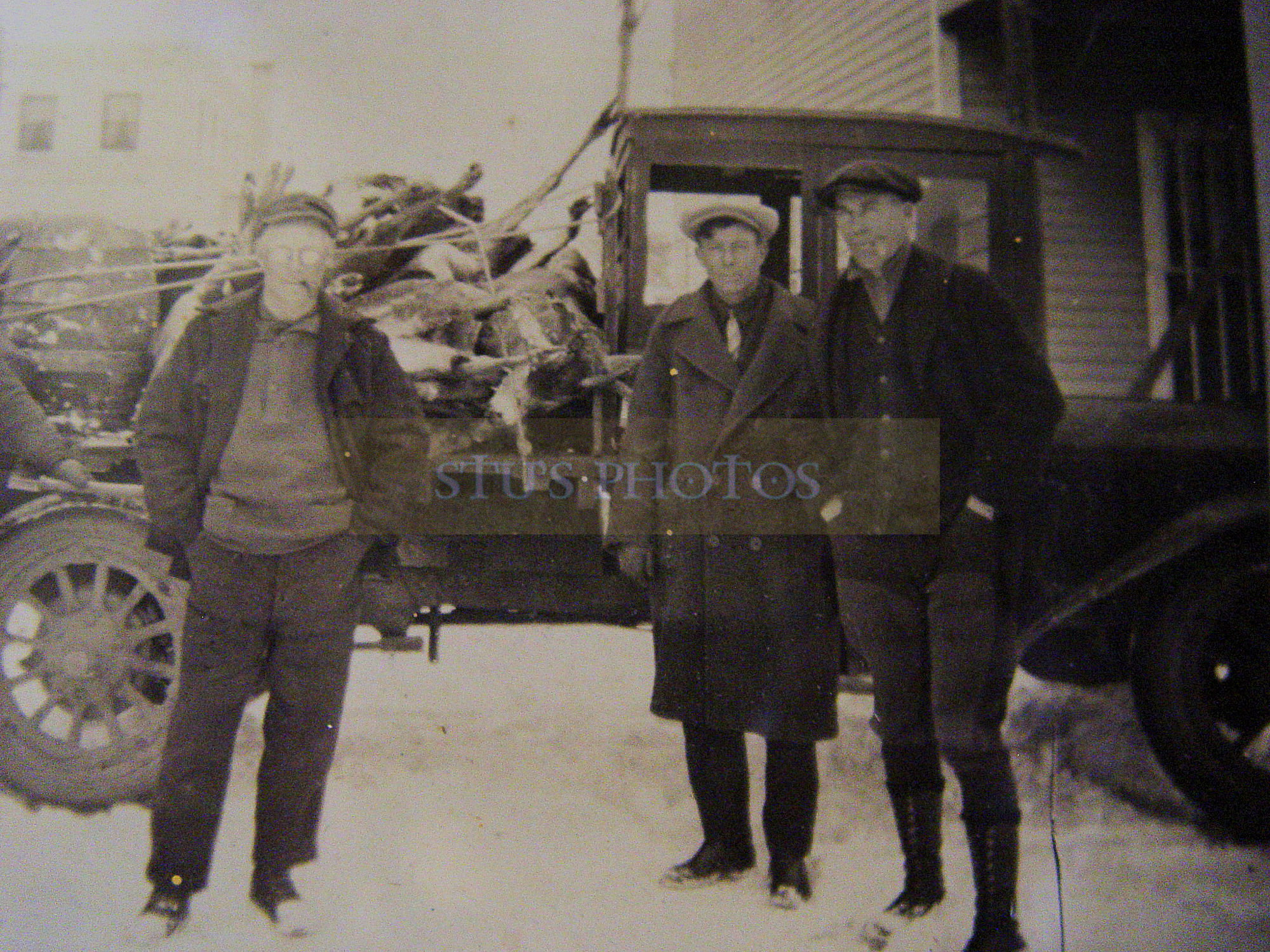 Original 1920s Framed Photograph Hunters, Old Truck and Dead Deer