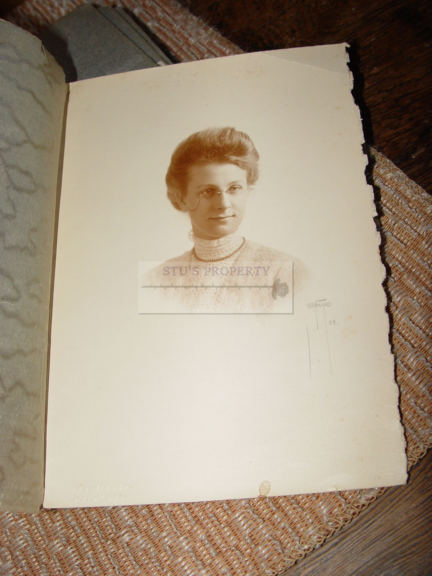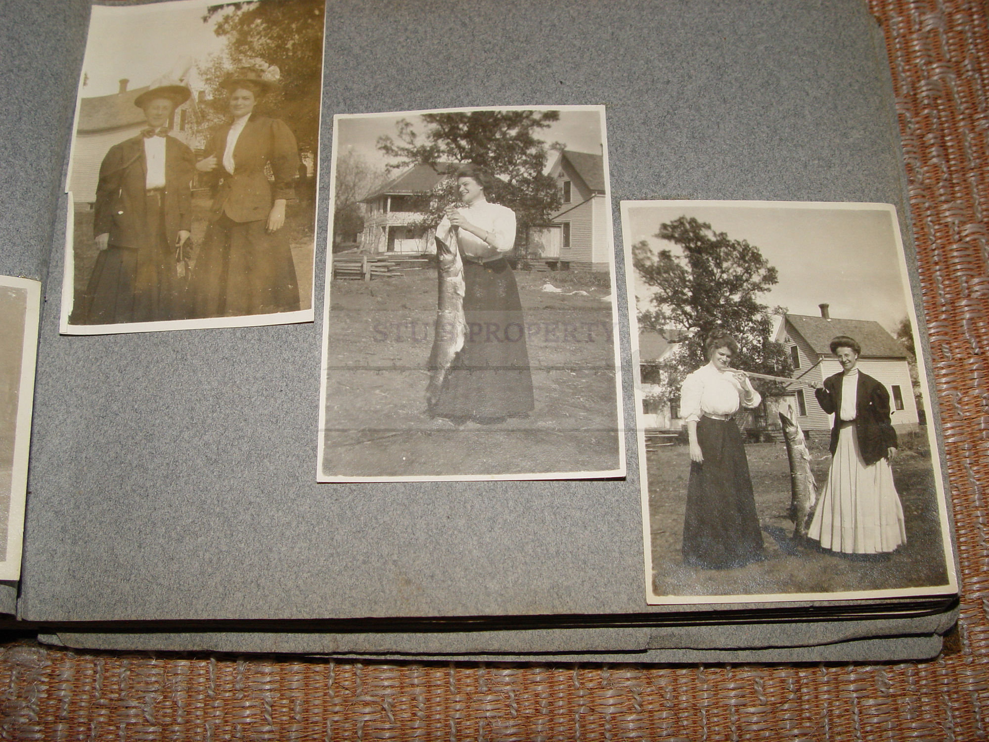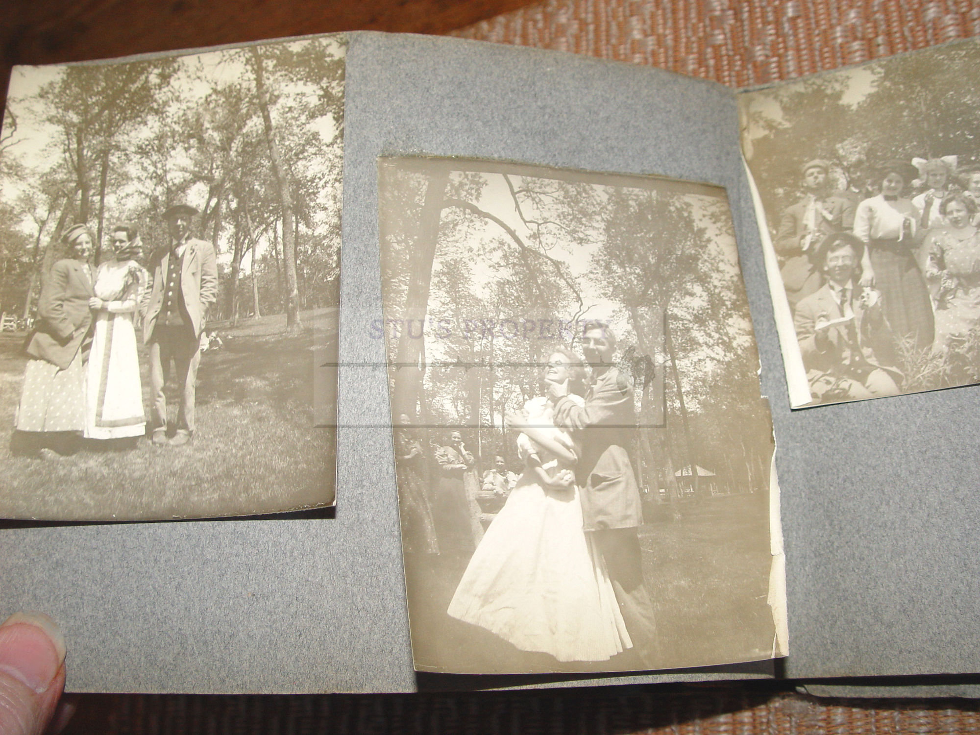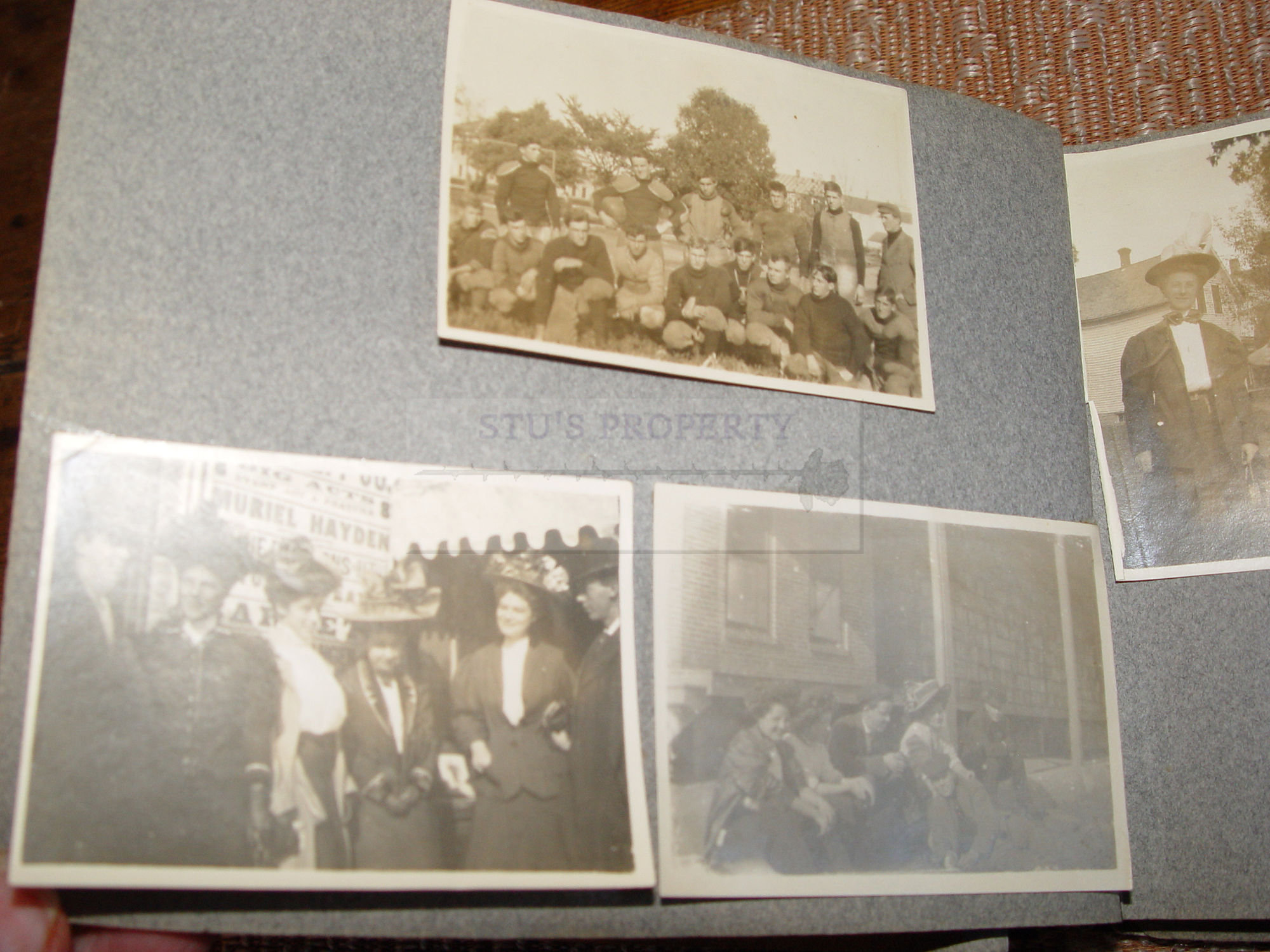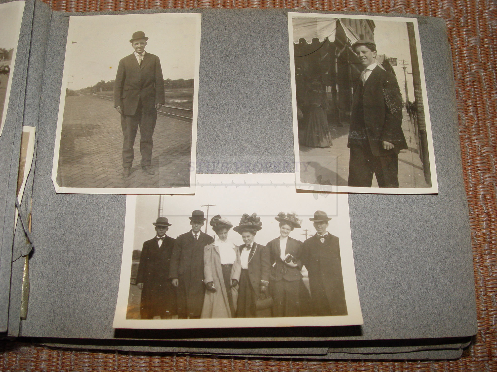 I wish I could show more photos but it would take up so much space! The album is worn as you can see. The pages disheveled. But for the most part very nice. All snap-shot photographs. Lots of dates from 1907 to 1911. A few pages are missing photographs.