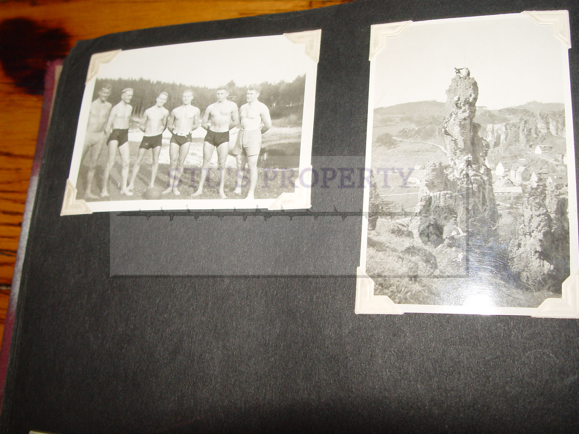 The men are seen in uniform only once in the 10th photo. Many old vehicles, clowning around on beaches, with family gatherings (note the photo with the woman mannequin, a bit bazaar).