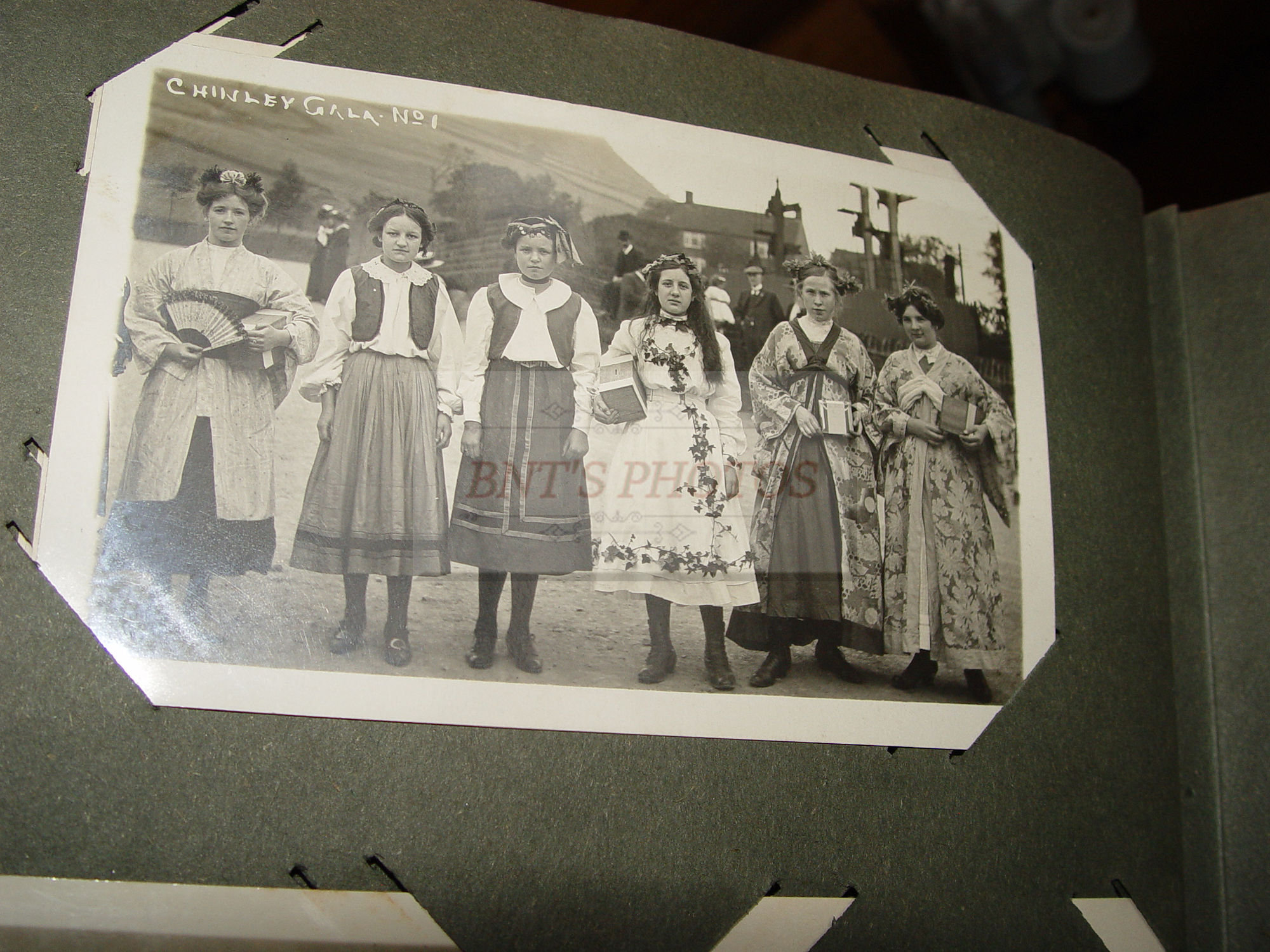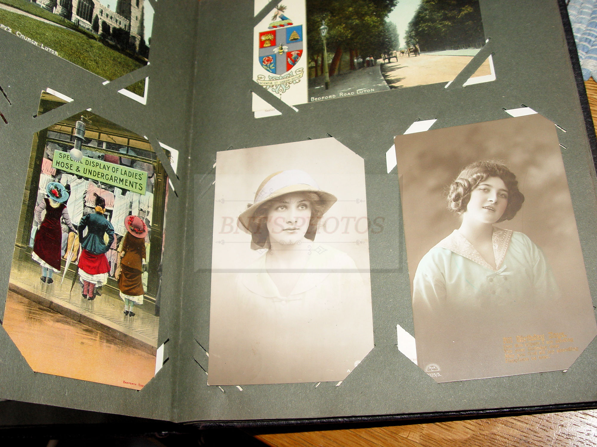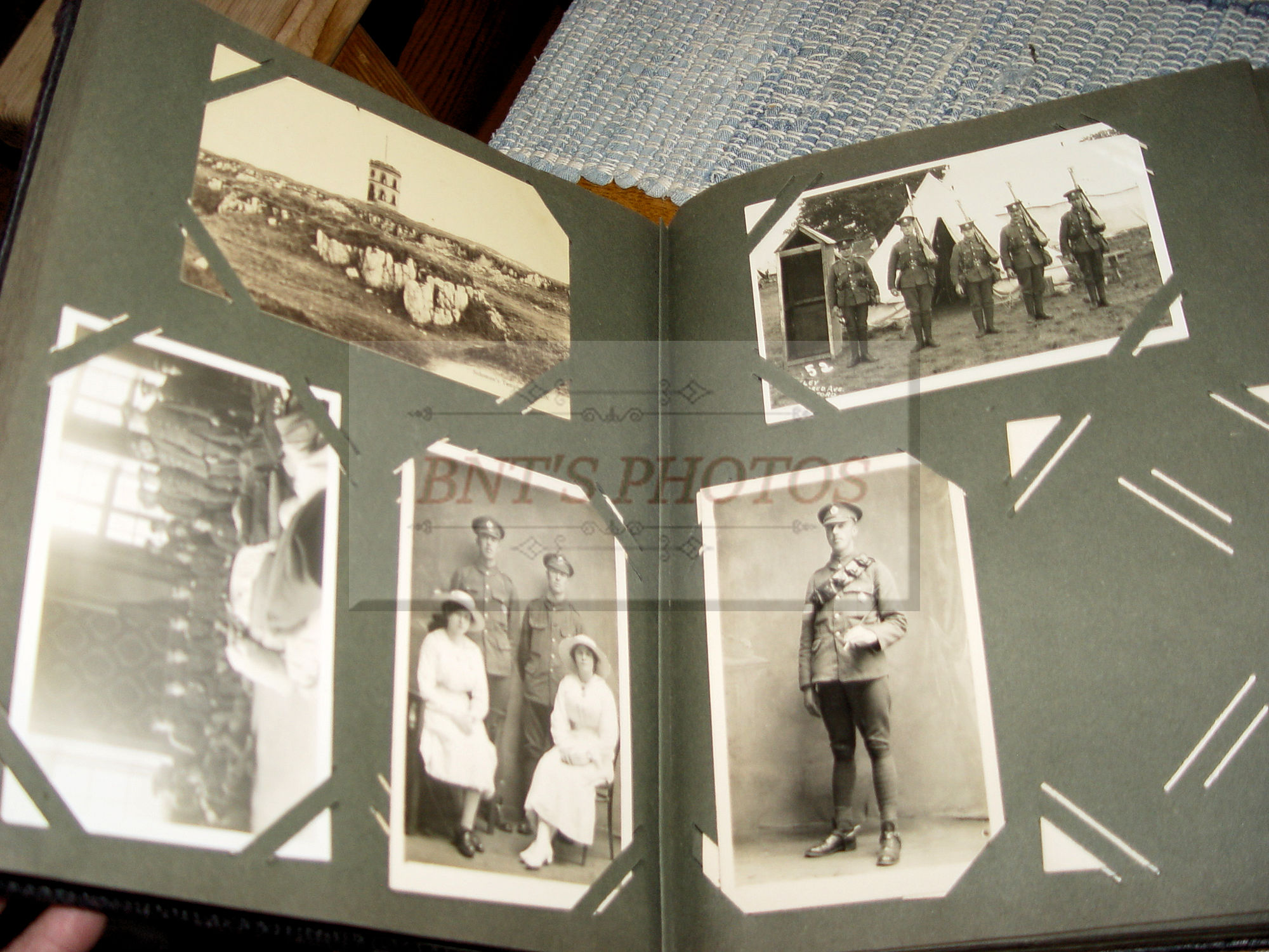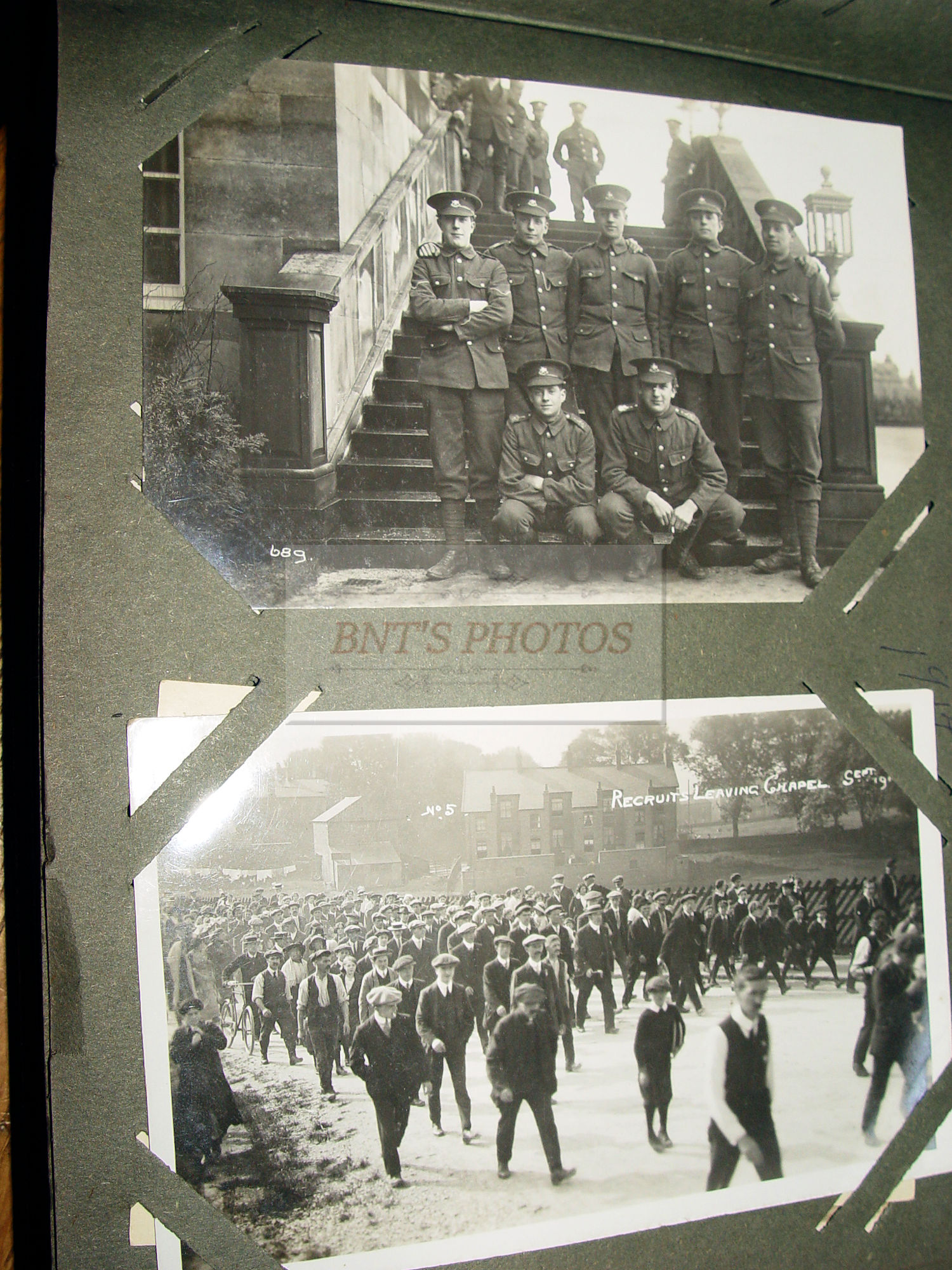 Thick and full large photo album filled with many WWI, World War One military real photo postcards. Many other unique and collectible photo cards as well. This is from an estate years ago where the family member was from Scottish decent. You will see many British soldiers and different styled uniforms from the era. From volunteers to in service. Woman, children and several showing wonderful fashion for the era. There is a Cricket Team 1913 (the Sparrow Cricket Club). Many showing town scenes and important historic images...Chapel-En-Le-Firth, Chinley and more. Young children gathering collections for the 'Radium Fund'. Two photos showing 'Dicky's Skull', Peak Districk Legend Haunted skull of Ned Dickinson from Tunstead Farm. Chinley Gala, Girls in costumes. Many humerus comic postcards and printed ones. Gay interest, cross dressing. Prisoners of War Fund and so much more ...