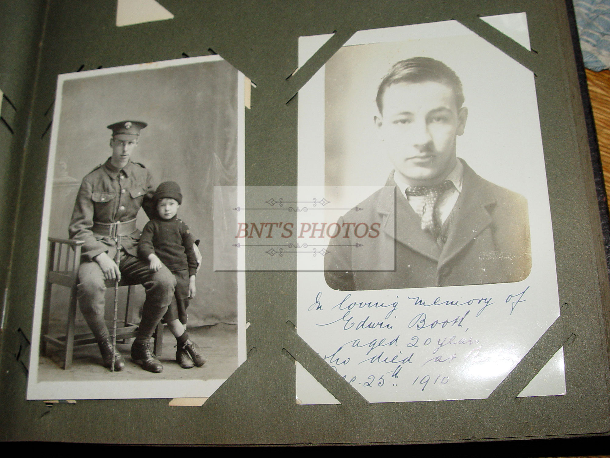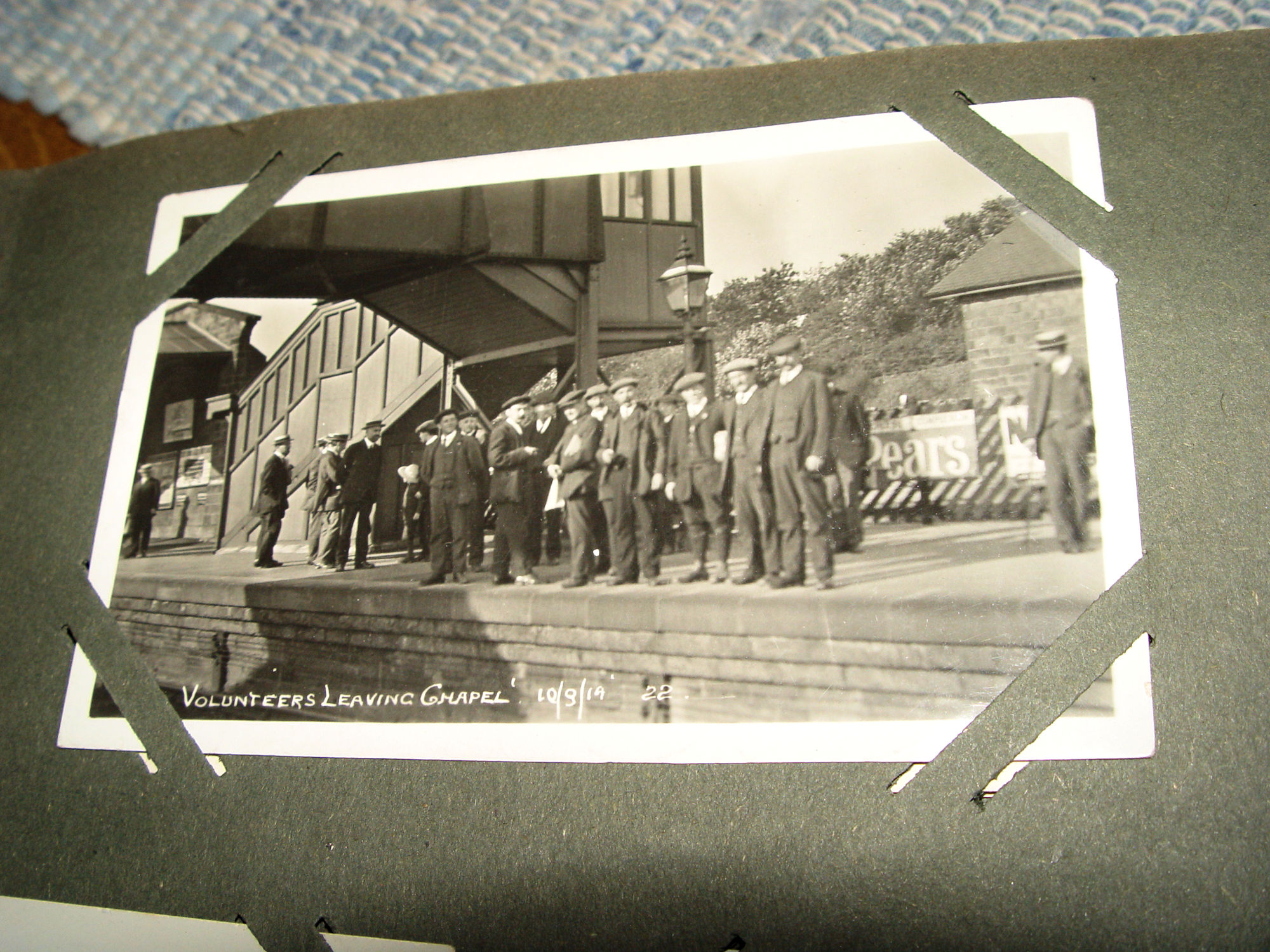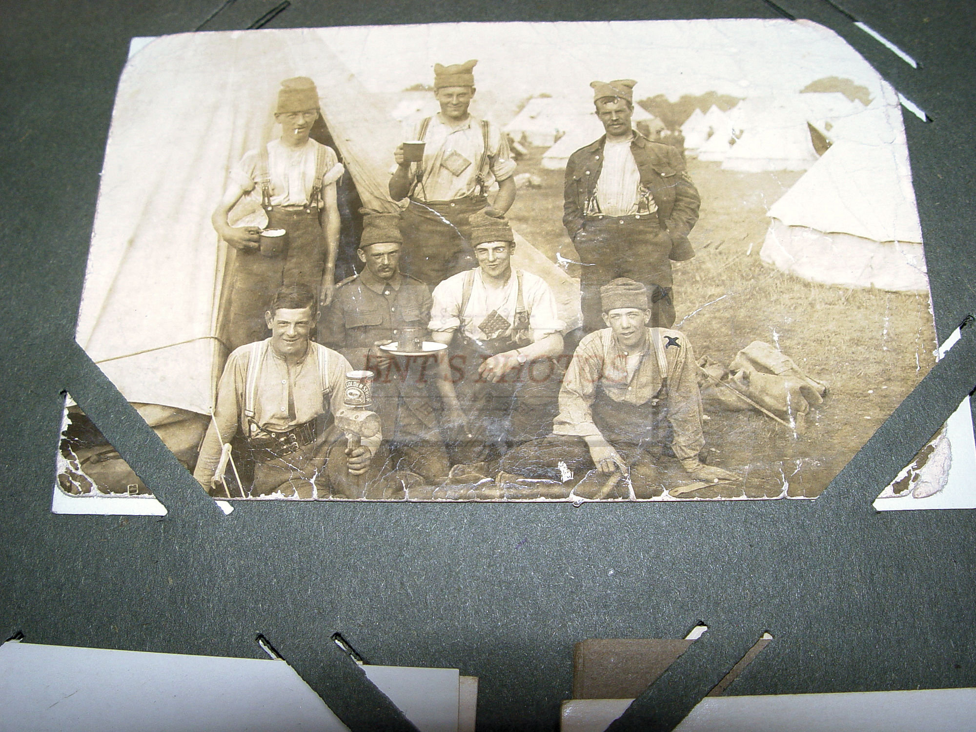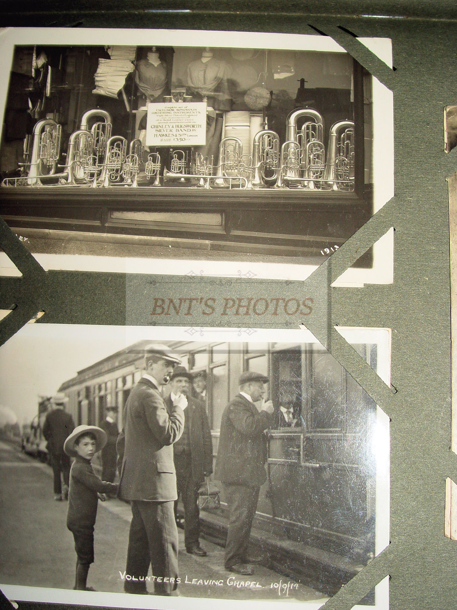 Thick and full large photo album filled with many WWI, World War One military real photo postcards. Many other unique and collectible photo cards as well. This is from an estate years ago where the family member was from Scottish decent. You will see many British soldiers and different styled uniforms from the era. From volunteers to in service. Woman, children and several showing wonderful fashion for the era. There is a Cricket Team 1913 (the Sparrow Cricket Club). Many showing town scenes and important historic images...Chapel-En-Le-Firth, Chinley and more. Young children gathering collections for the 'Radium Fund'. Two photos showing 'Dicky's Skull', Peak Districk Legend Haunted skull of Ned Dickinson from Tunstead Farm. Chinley Gala, Girls in costumes. Many humerus comic postcards and printed ones. Gay interest, cross dressing. Prisoners of War Fund and so much more ...