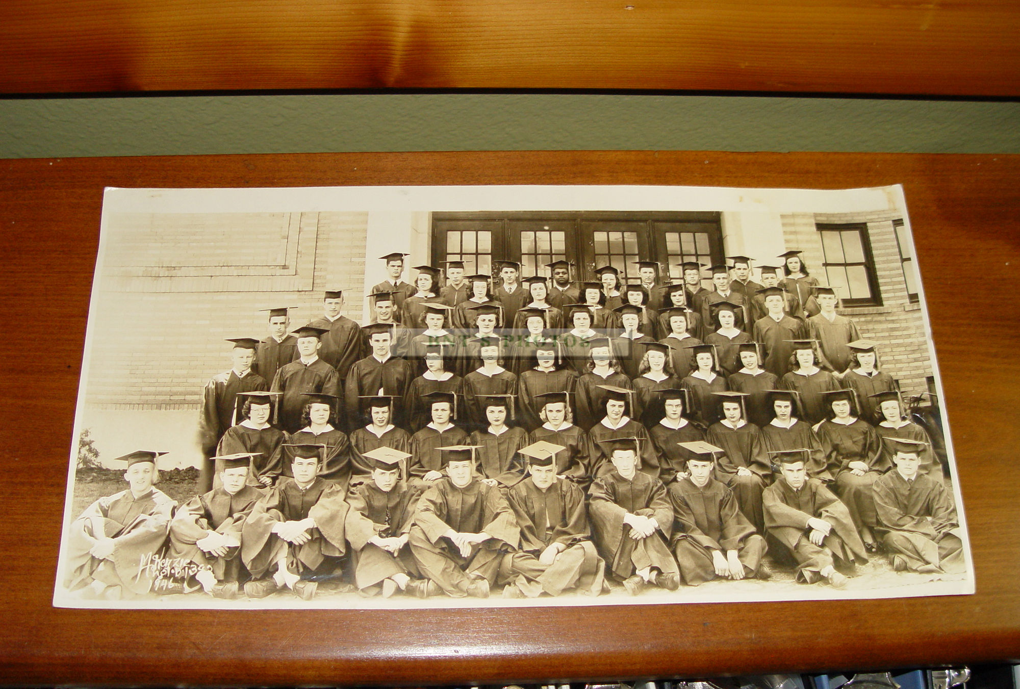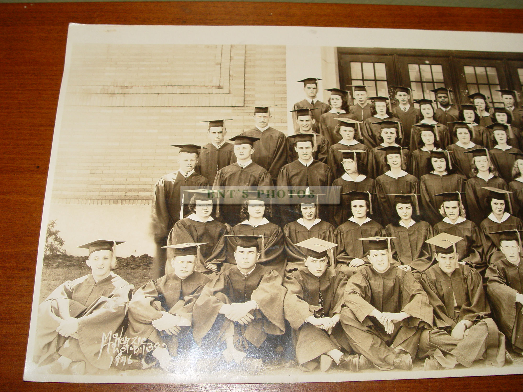 This is in very good condition for the age. Slightly bumped corners. Photographer signature at bottom left McKenzie 1946. Great piece for town history or genealogy.