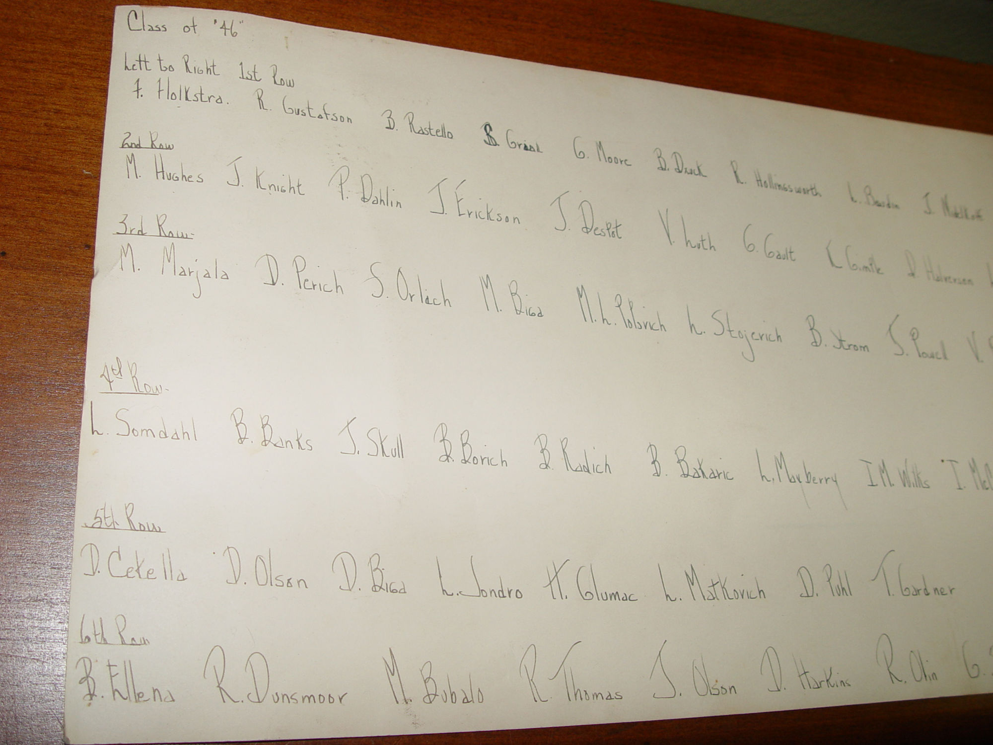 What is so very neat is that all the names of the class of 1946 appears on the back displayed by rows. Below is many names, found either on the internet or from the back.