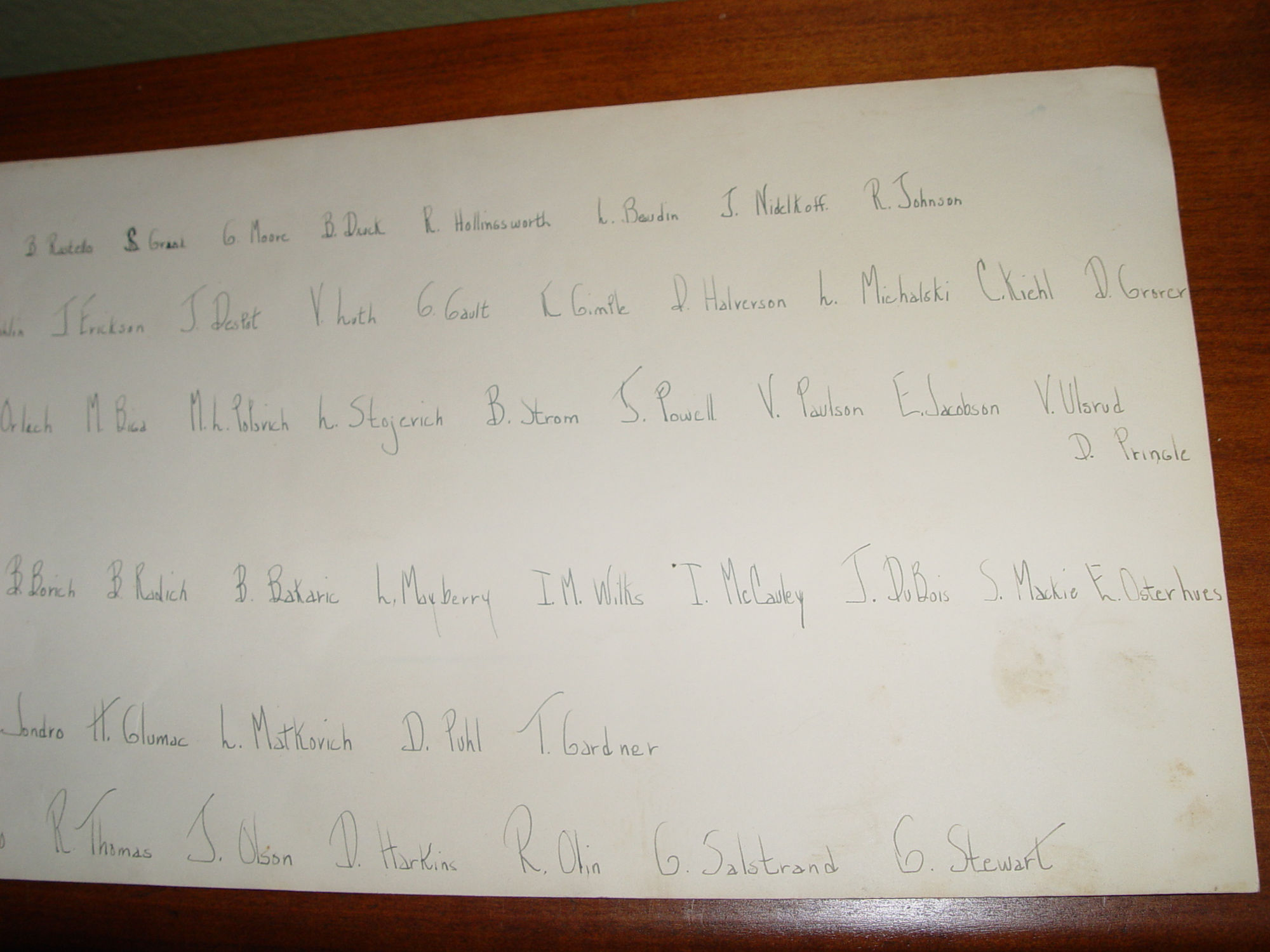 Phyllis Dahlin - Virginia Luth - Richard Olin - Richard Puhl - I.M. Wilks - V. Paulson - E. Jacobson - V. Ulsrud - D. Pringle - T. Gardner - D. Puhl - L. Mayberry - B. Bakaric - B. Radich - B. Borich - J. Skull - S. Orlich - B. Strom - J. Powell - H or L.Stojerich - K. Gimple - C. Kiehl - D. Grorcr - R. Hollingworth - R. Johnson - B. William Druck - B. Rastello - R. Gustafson - F. Flolksra - M. Hughes - J. Knight - J. Despot - M. Biga - D. Olson - D. Cekella - S. Mackie - E. Osterhues - J. DuBois - G. Stewart - G. Salstrand - R. Olin - D. Harkin - M. Bubalo - R. Dunsmoor - L. Jondro and more.