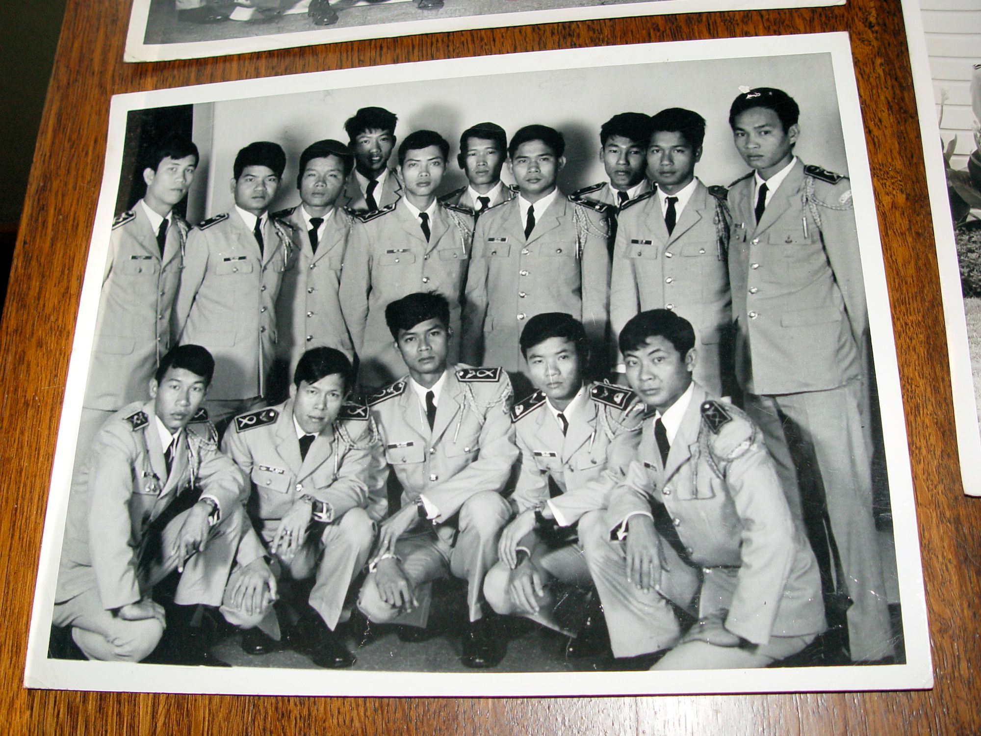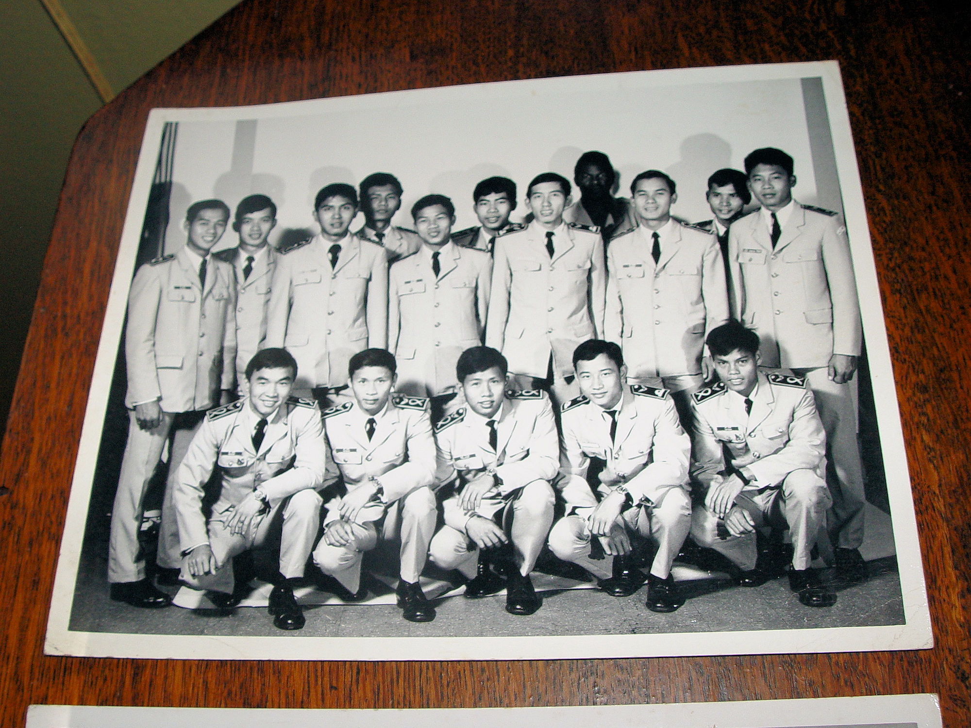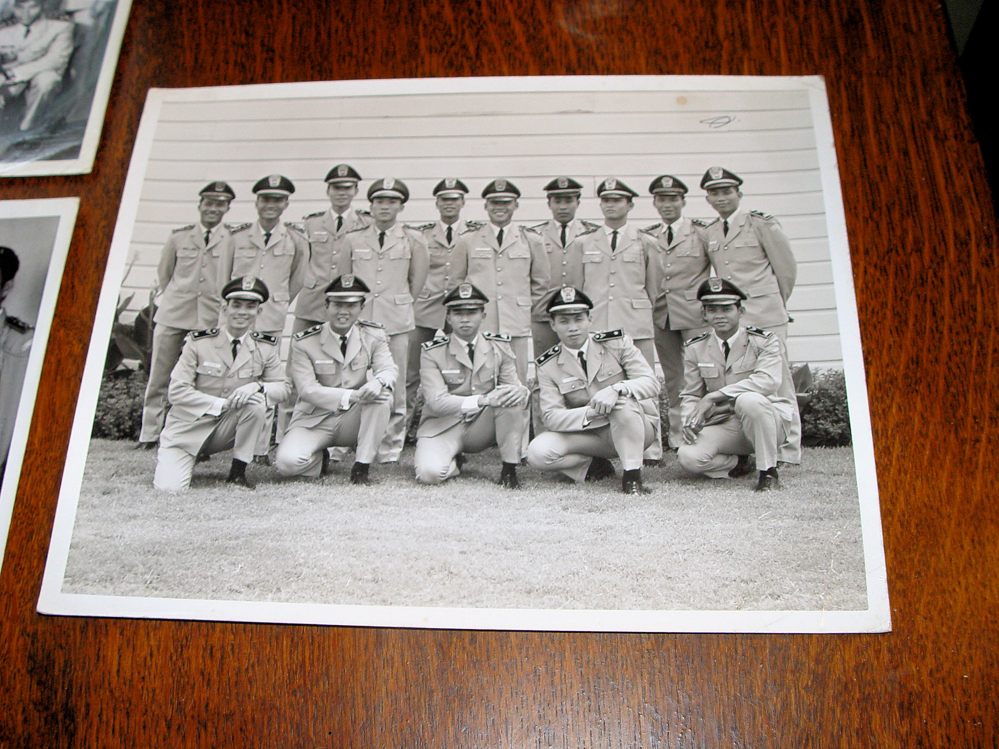 Scarce vintage original black and white photographs of soldiers or officers in the Republic of Vietnam (South Vietnam), 1955-1975. The names of all men are typed on the back of each photo. I believe that maybe the towns from which the officers came from is beside their names. This was found with two other 8 by 10's from the USAF United States Air Force in 1972, Sheppard AFB Texas. See stamps.