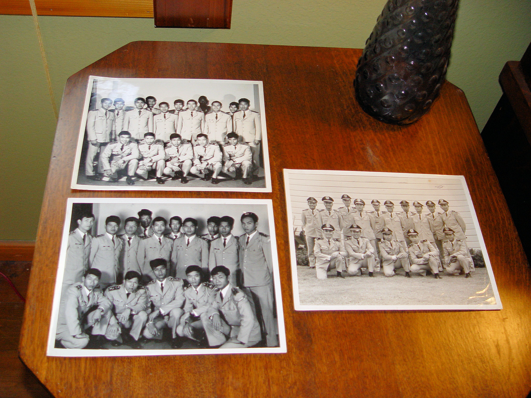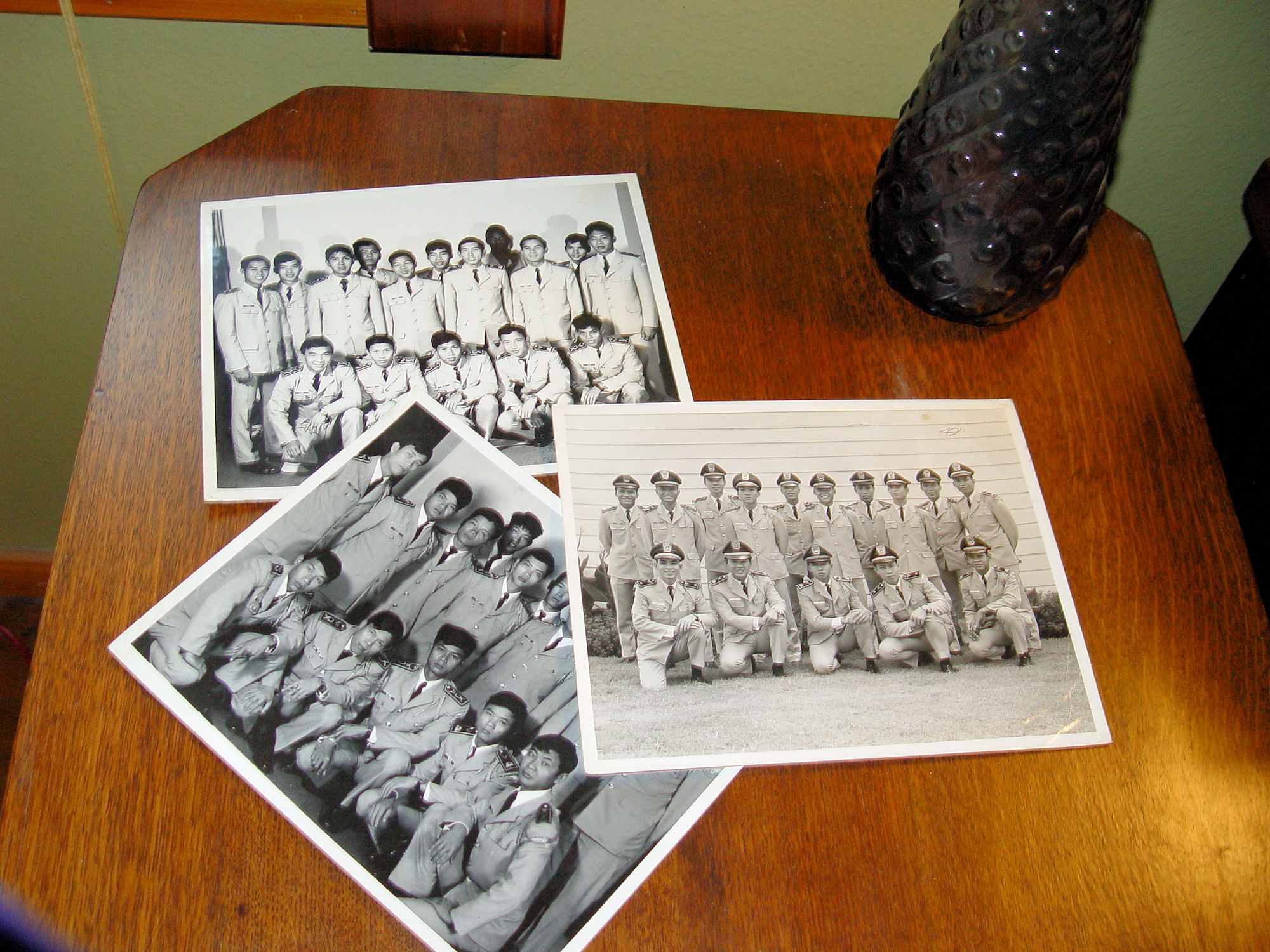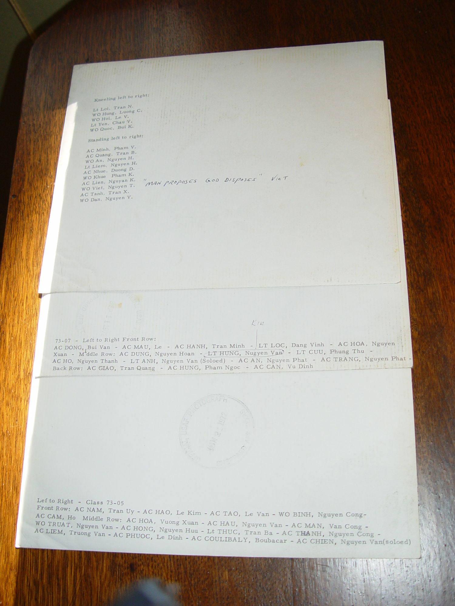 Scarce vintage original black and white photographs of soldiers or officers in the Republic of Vietnam (South Vietnam), 1955-1975. The names of all men are typed on the back of each photo. I believe that maybe the towns from which the officers came from is beside their names. This was found with two other 8 by 10's from the USAF United States Air Force in 1972, Sheppard AFB Texas. See stamps.