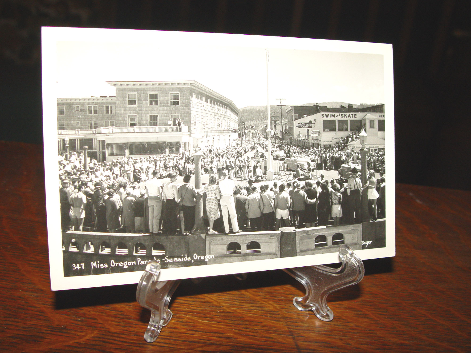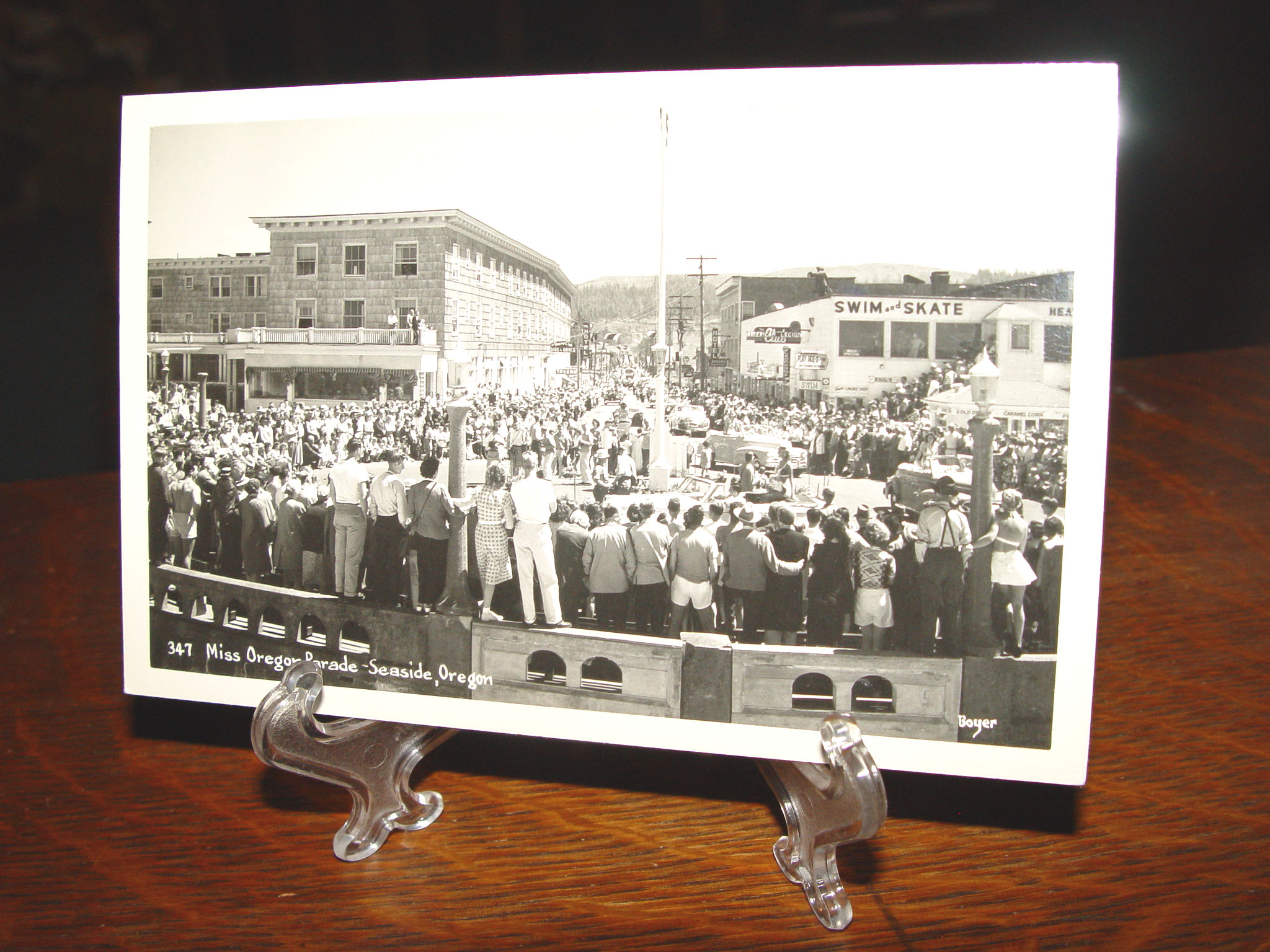 Oregonians flocked to Seaside that year, 1950, for the Miss Oregon Parade a major affair that summer. Miss McMinnville, Elizabeth Ann Baker, wowed the judges with her classical piano rendition of “Clair De Lune” and was crowned Miss Oregon. Local dignitaries, as well as the very first Chevrolet convertible off the General Motors assembly line following World War II.