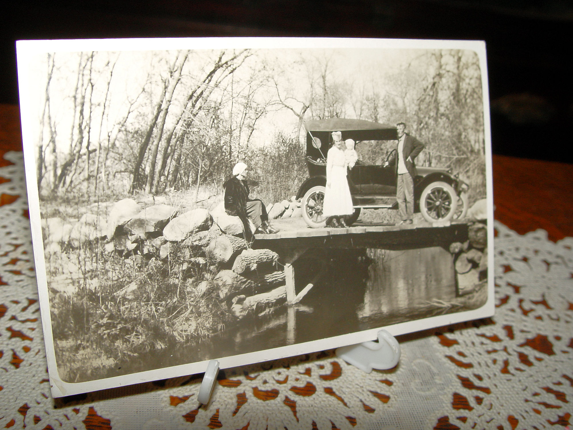 RPPC 1918 Dodge Touring? Stream bridge, Nanny -