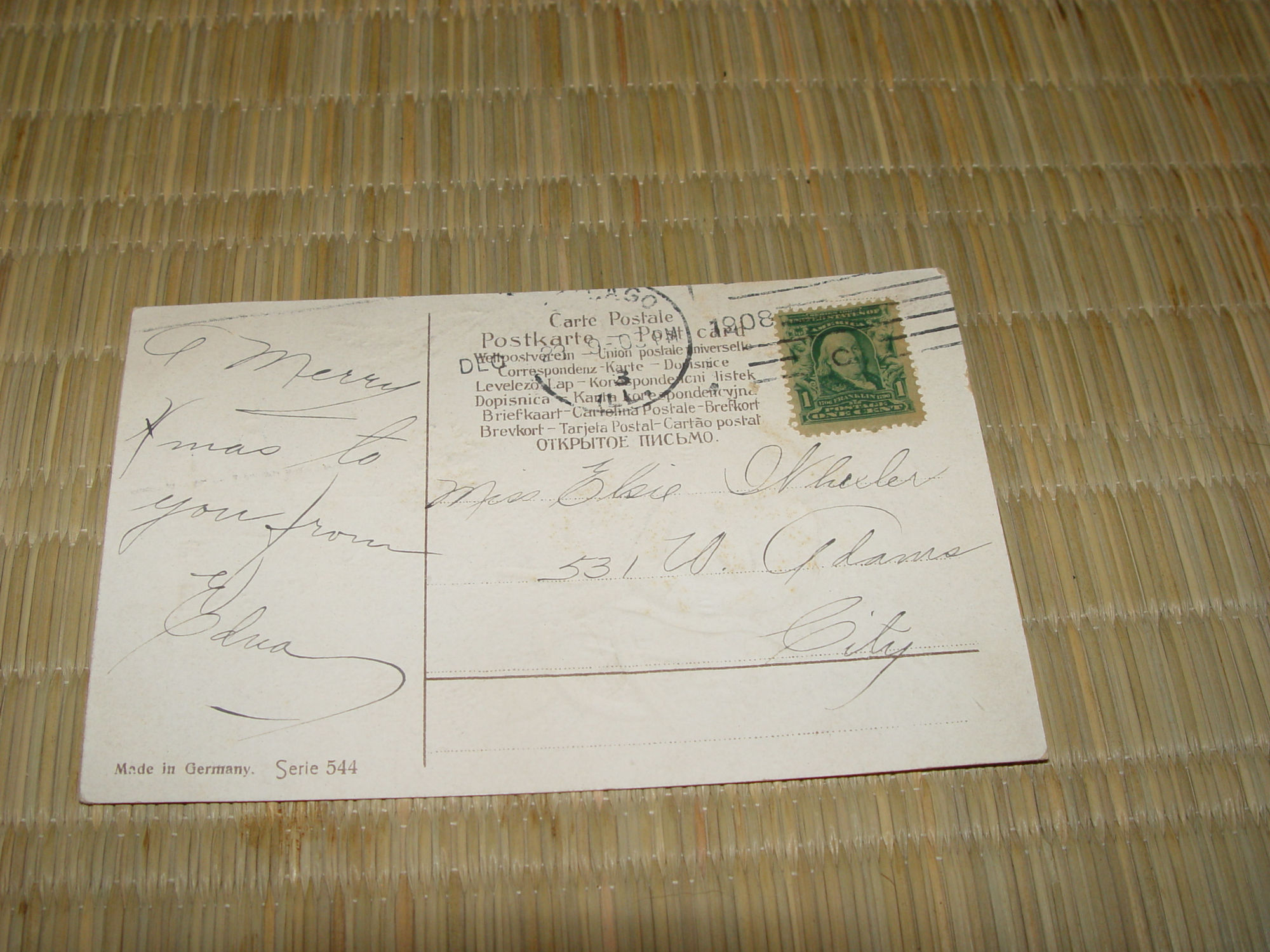Postmarked Chicago Ill, 1908