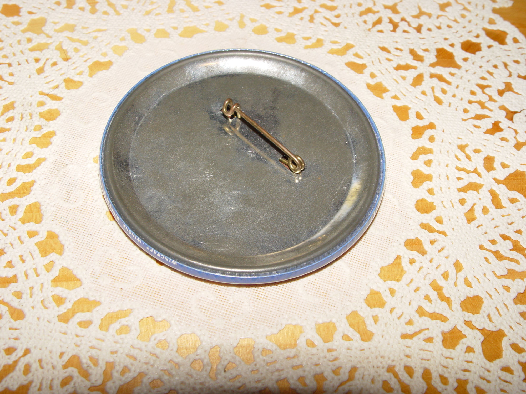 Very good condition with a little bit of minor spotting on the front and some light tarnishing on the back. The outer edge says the maker is Wincraft out of Winona Mn.