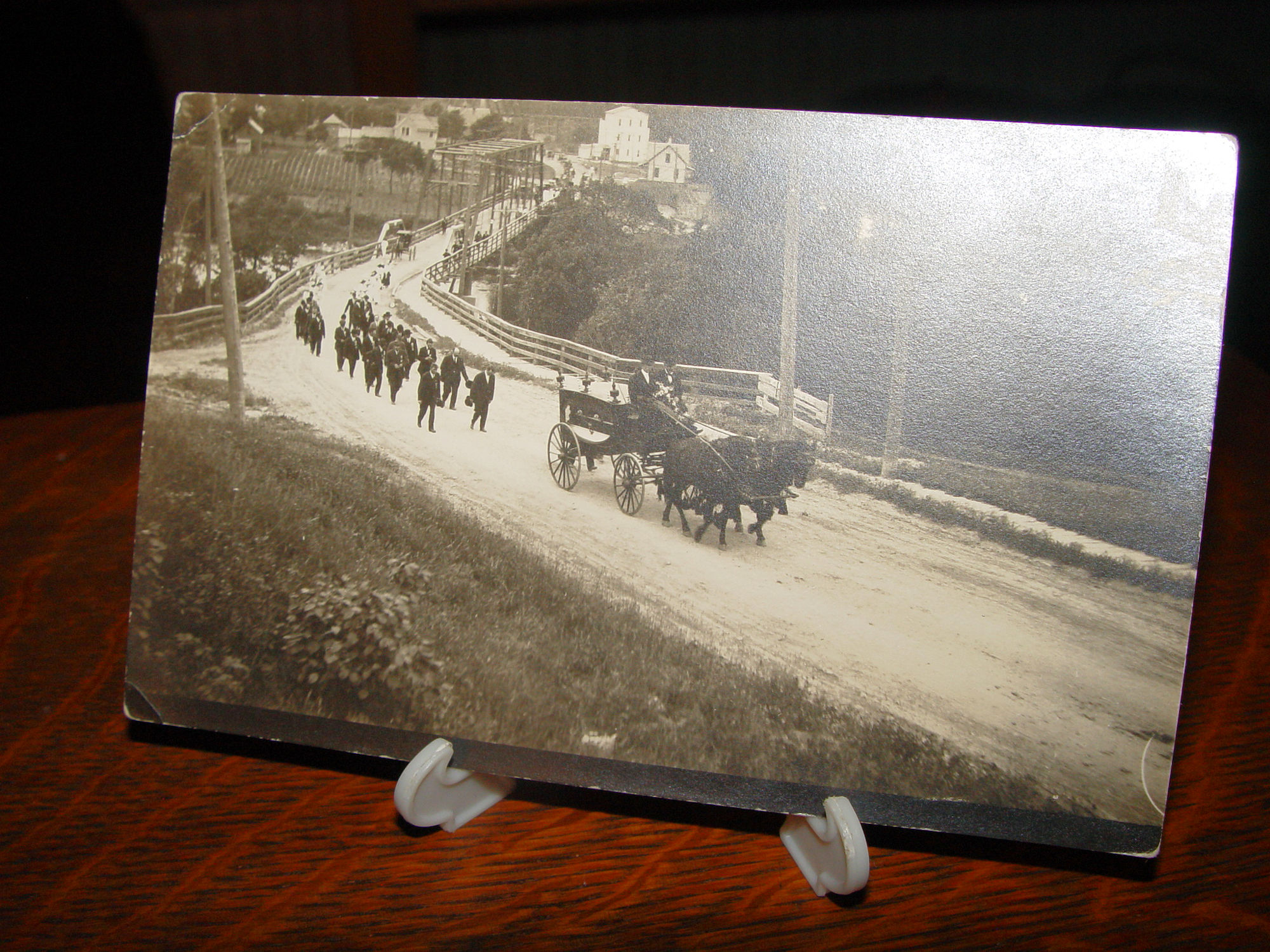 Funeral Procession RPPC, River Bridge, Stewart Mill -