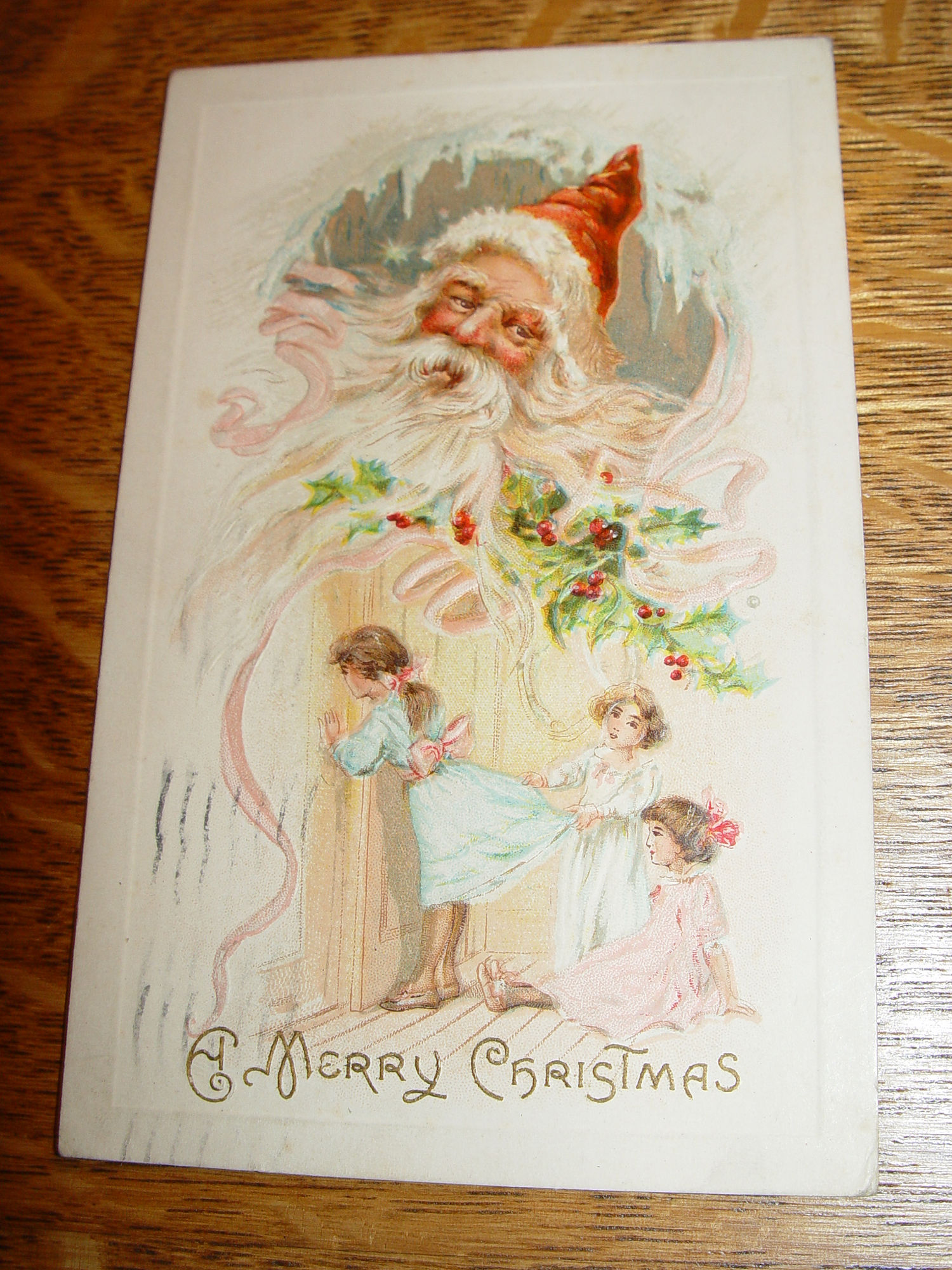 A Merry Christmas 1910 Meeker Postcard; Santa's Watching