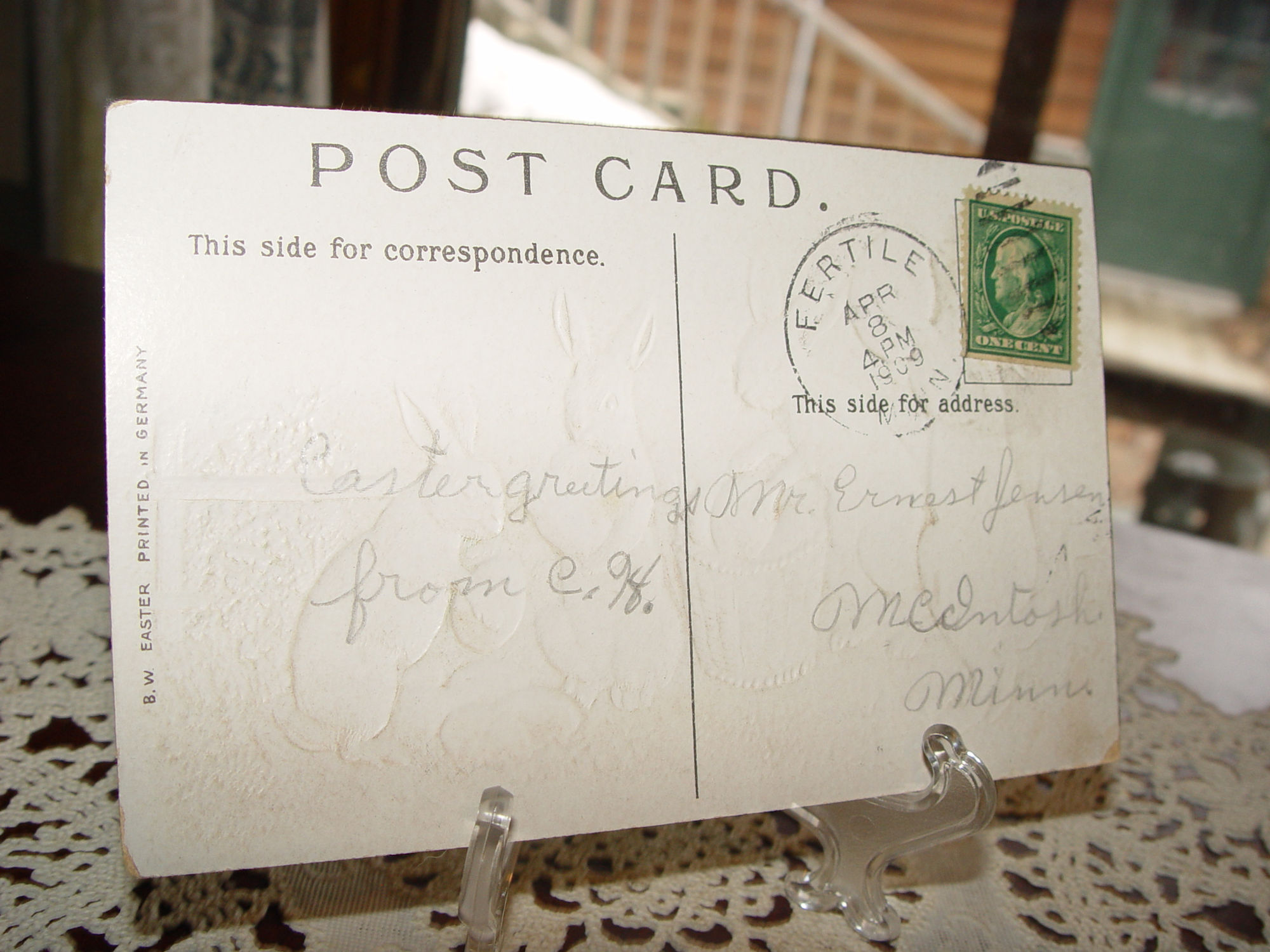 1909 Easter Postcard BW Germany Rabbits and