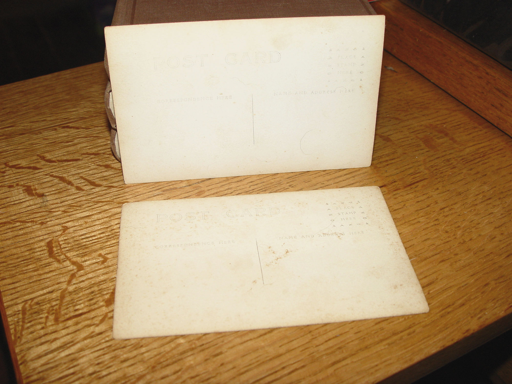 The cards are in very good condition with only slightly bumped corners. Both are un-used and show smudges on the backs. North Dakota estate purchase years ago. Measures 5.5" tall by 3.5".