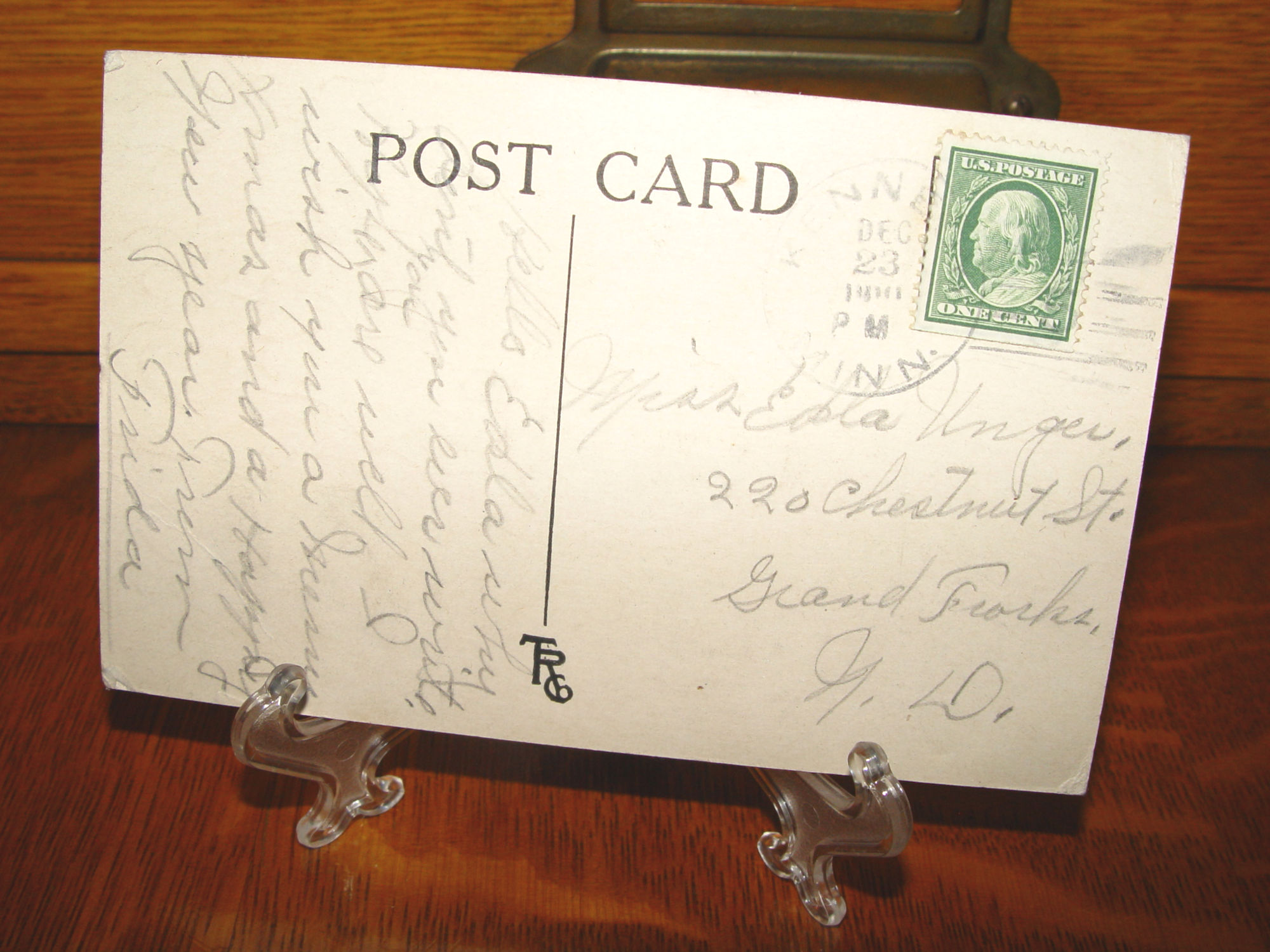The Santa in the cameo is post marked Kennedy, Minnesota. TRG Postcard. Too hard to read the date. Addressed to Edla Unger of Grand Forks, ND. (Edla O. Unger Hanson; born May 1888, died July 1979 Never moved from Grand Forks, North Dakota)