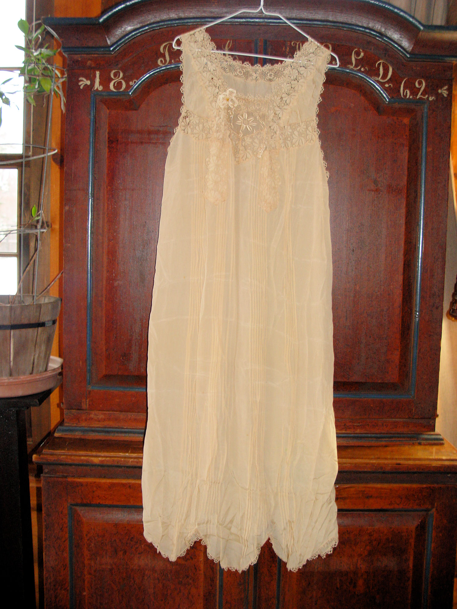 Vintage 1930s beige silk and lace