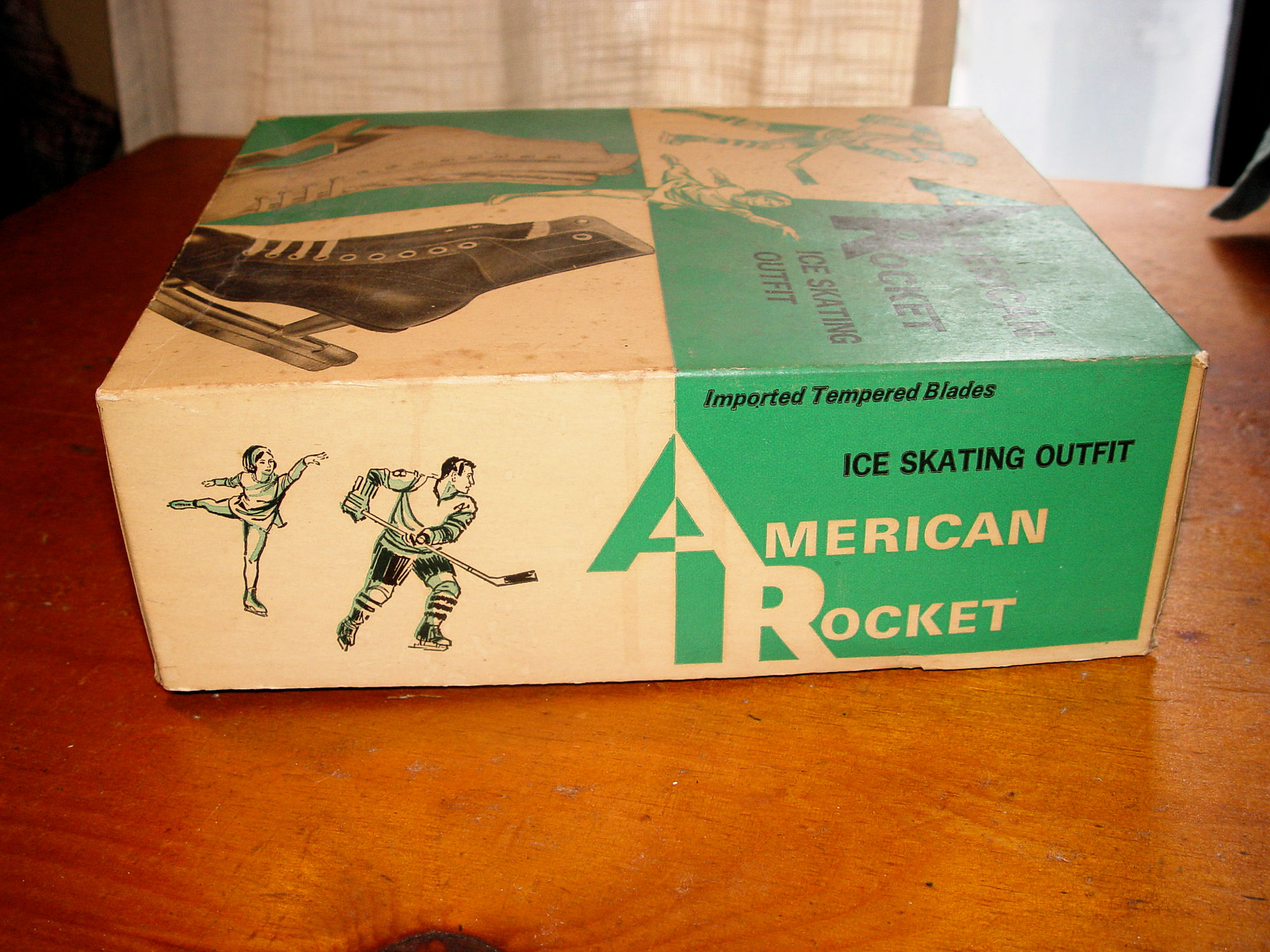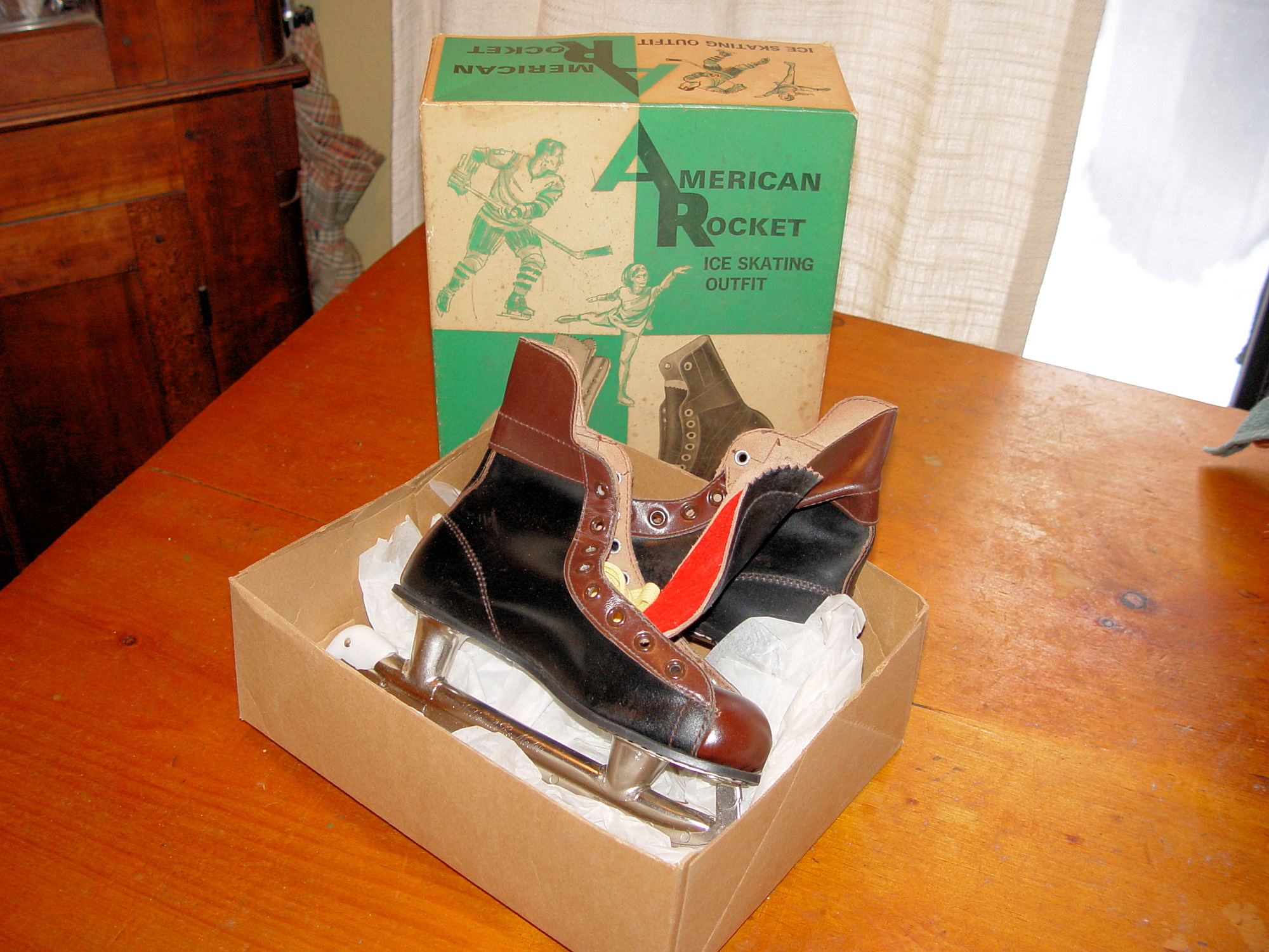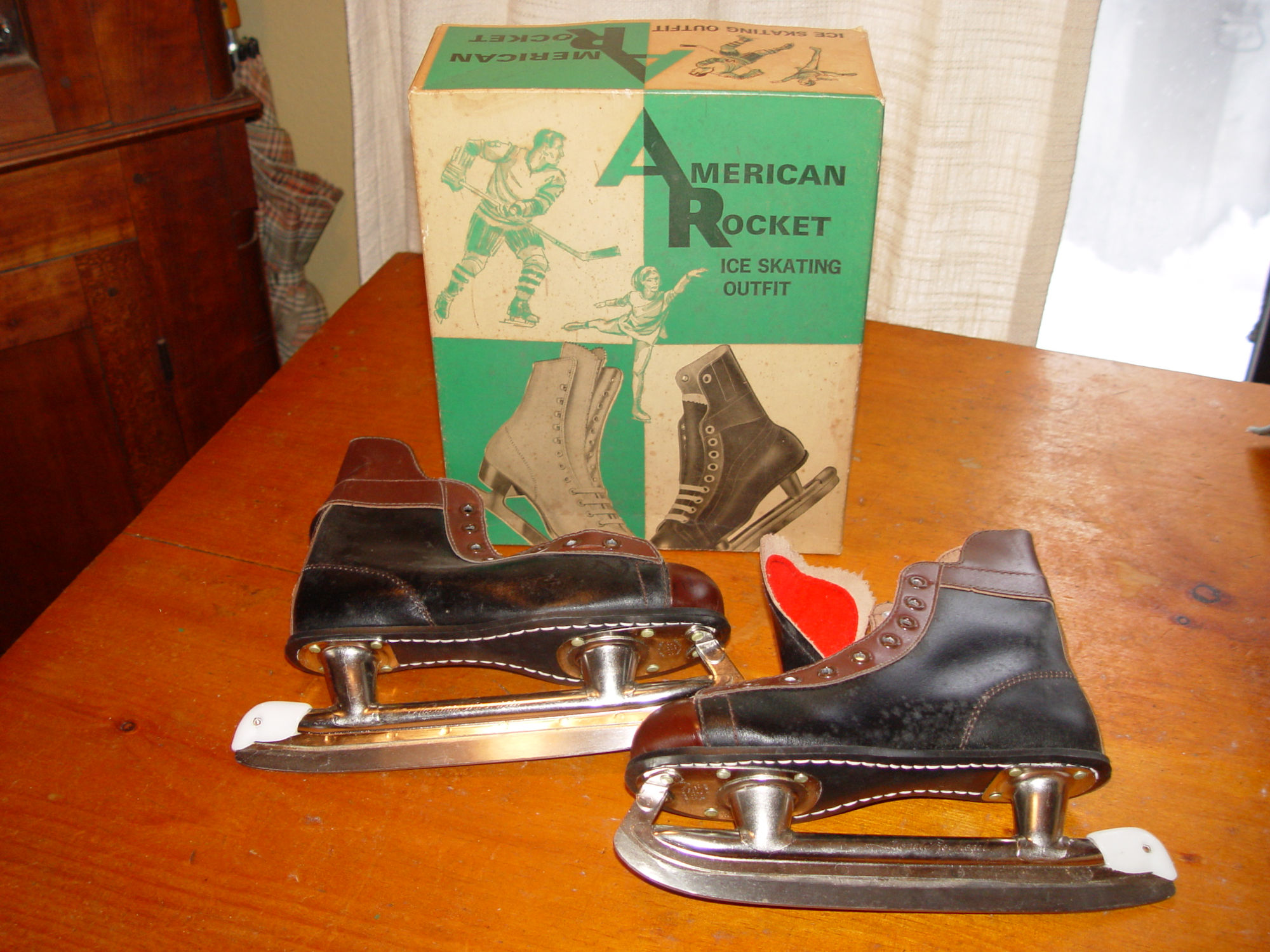 Very nice early pair of figure or Hockey skates. As found in old closed store inventory. Attractive 2-tone skates.