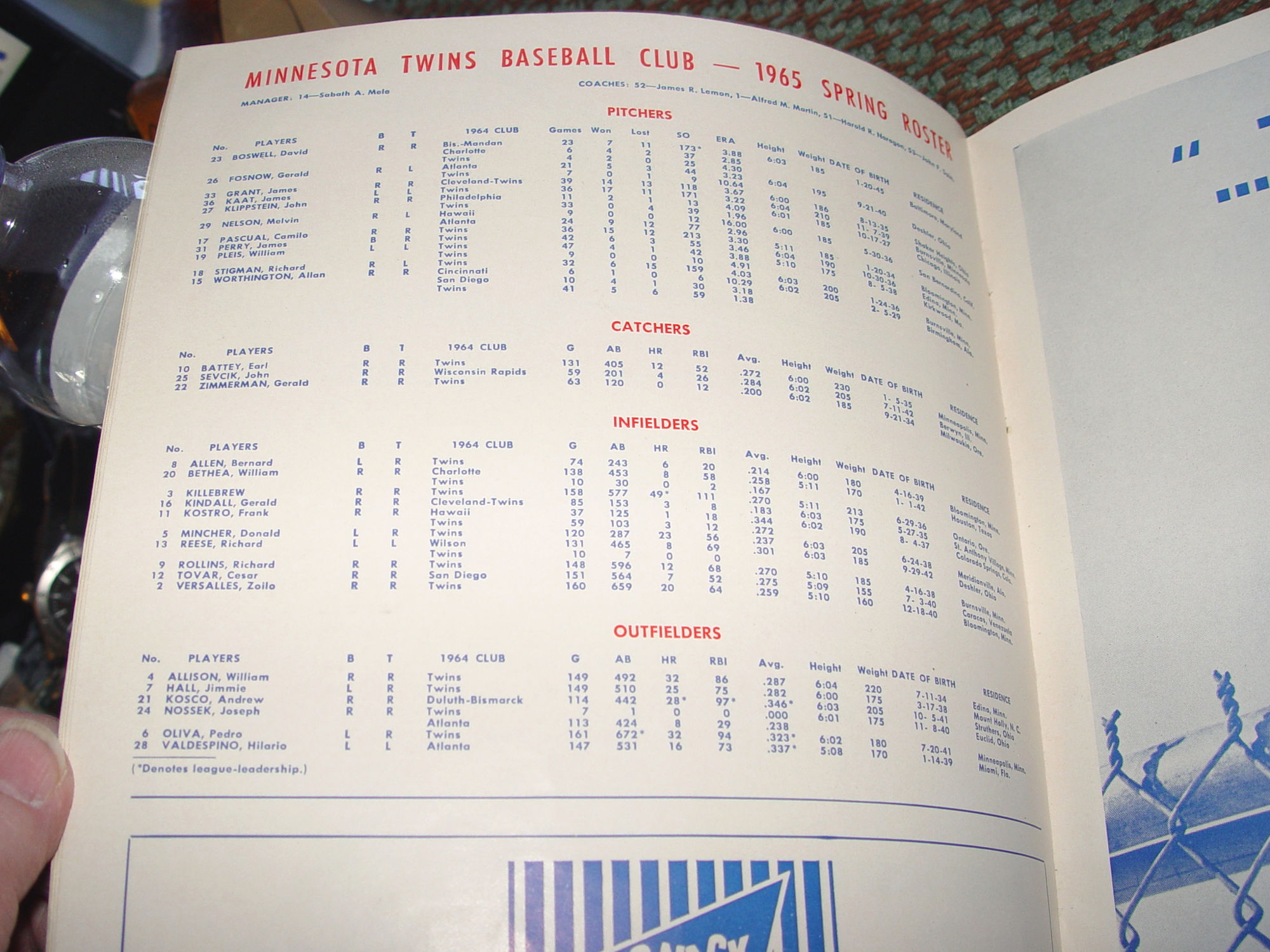 Official Baseball program (Pennant win 1965) MN Twins