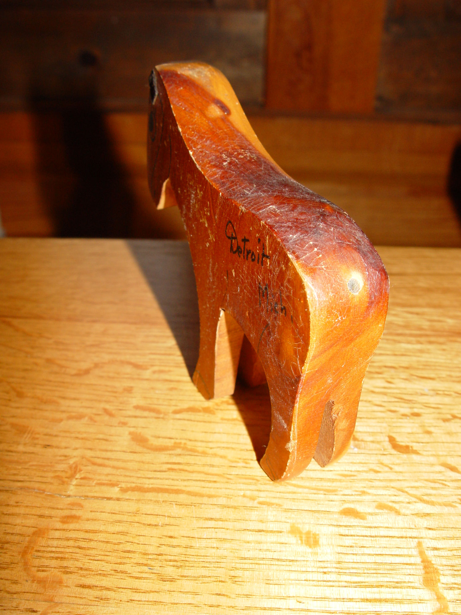 Cedar. One side of the donkey reads Detroit, Mich. and the other