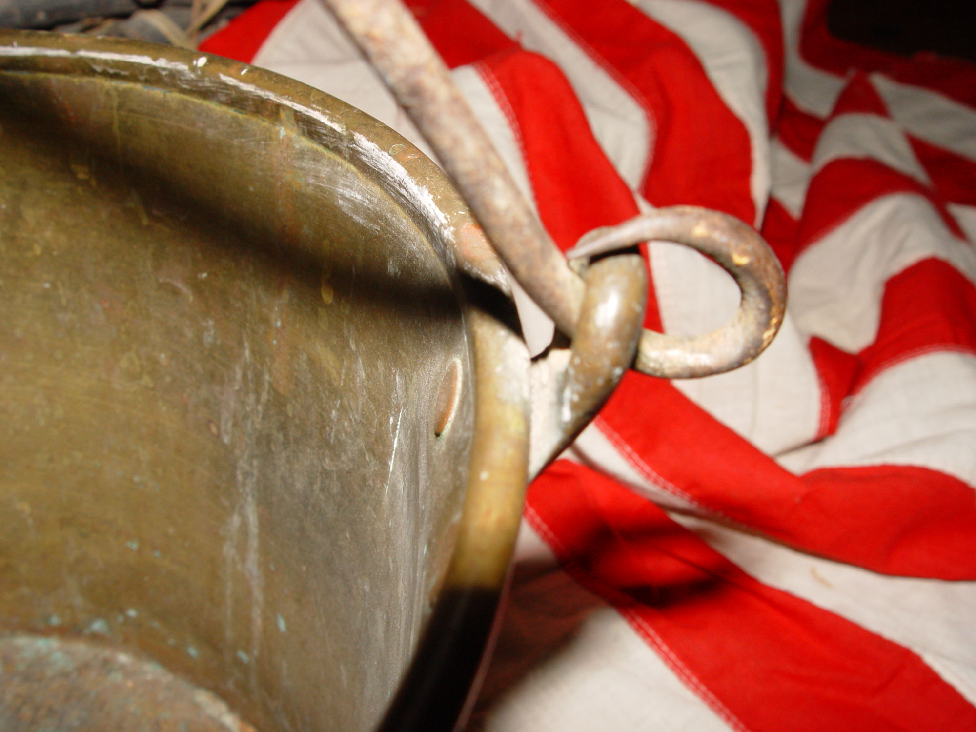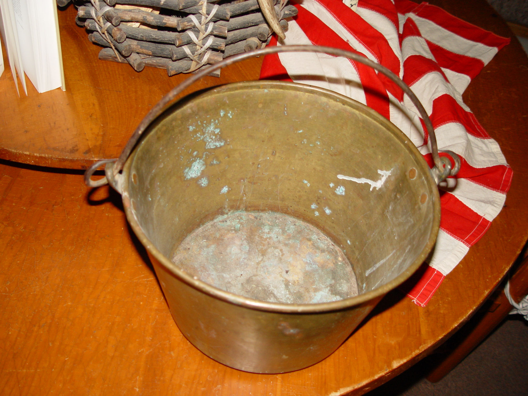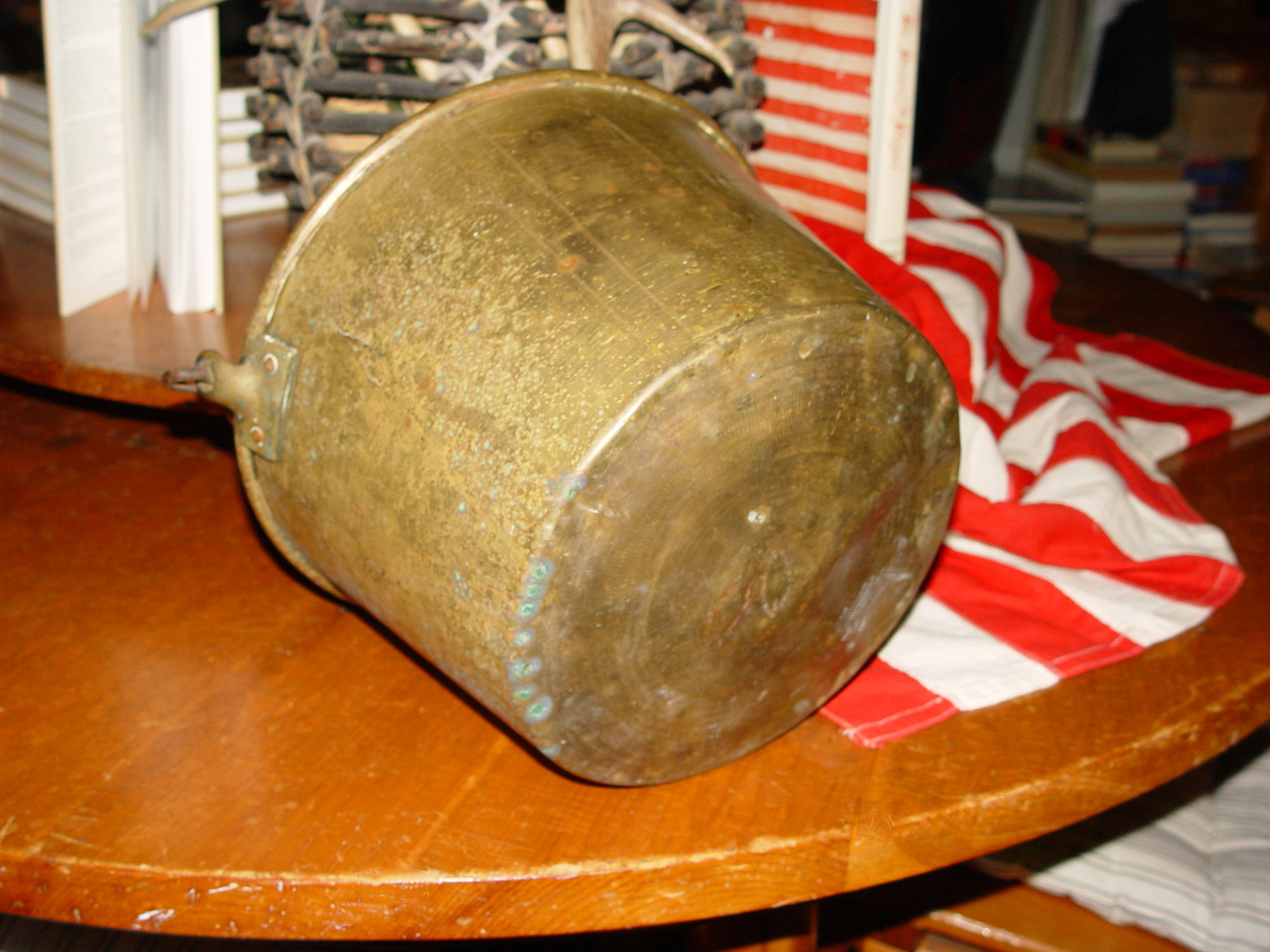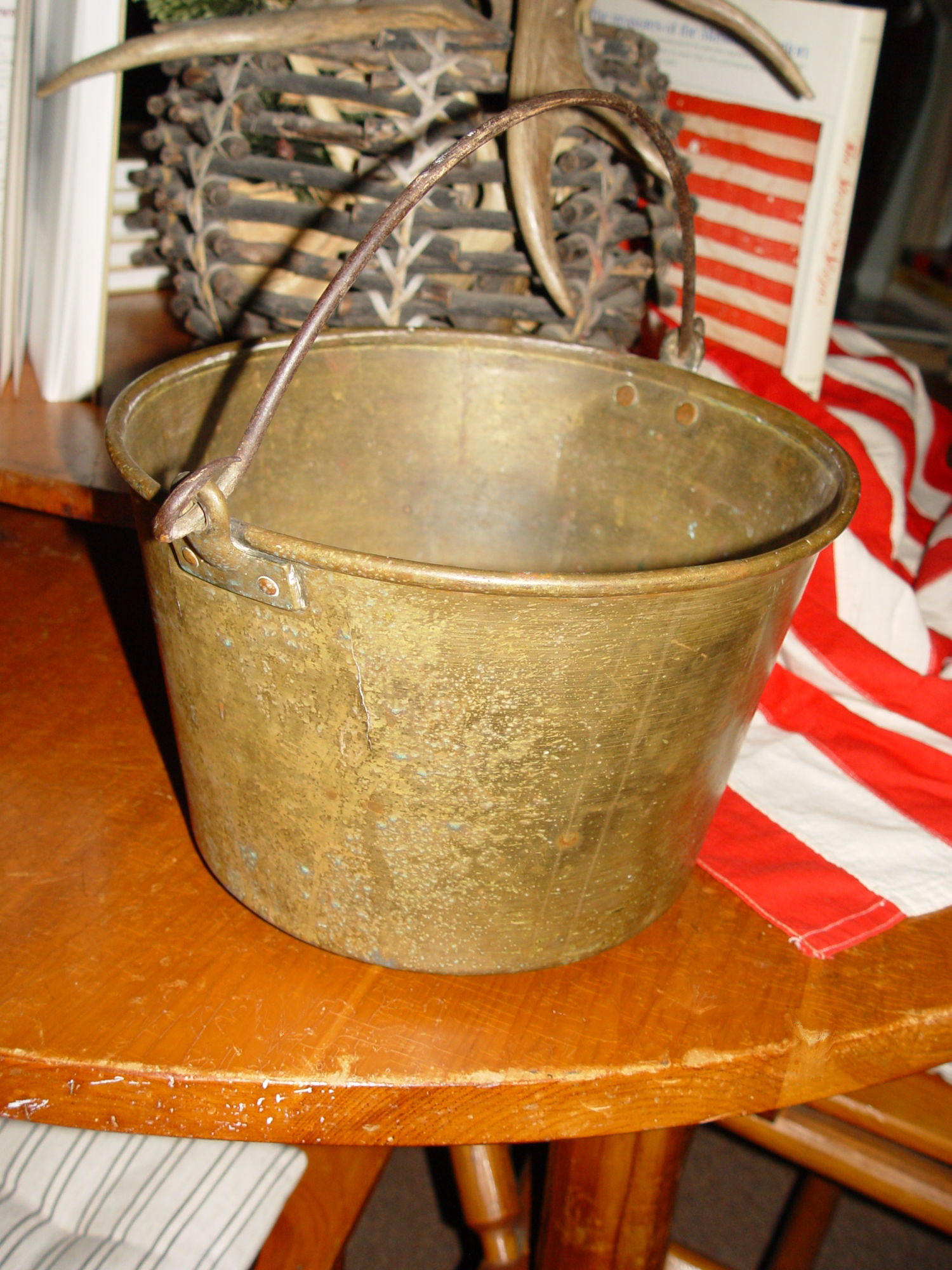 This classic mid-19th century spun brass bucket has a forged