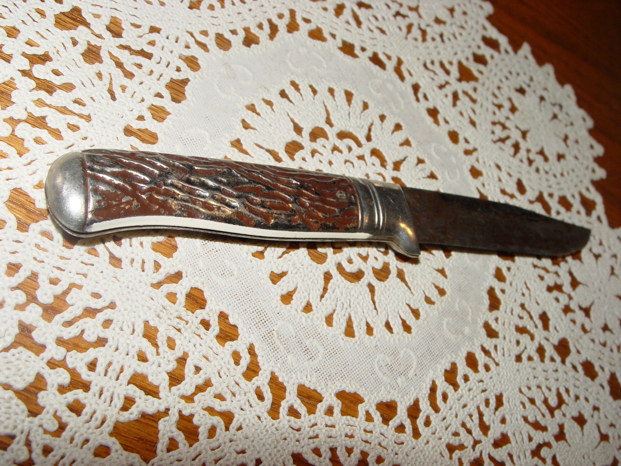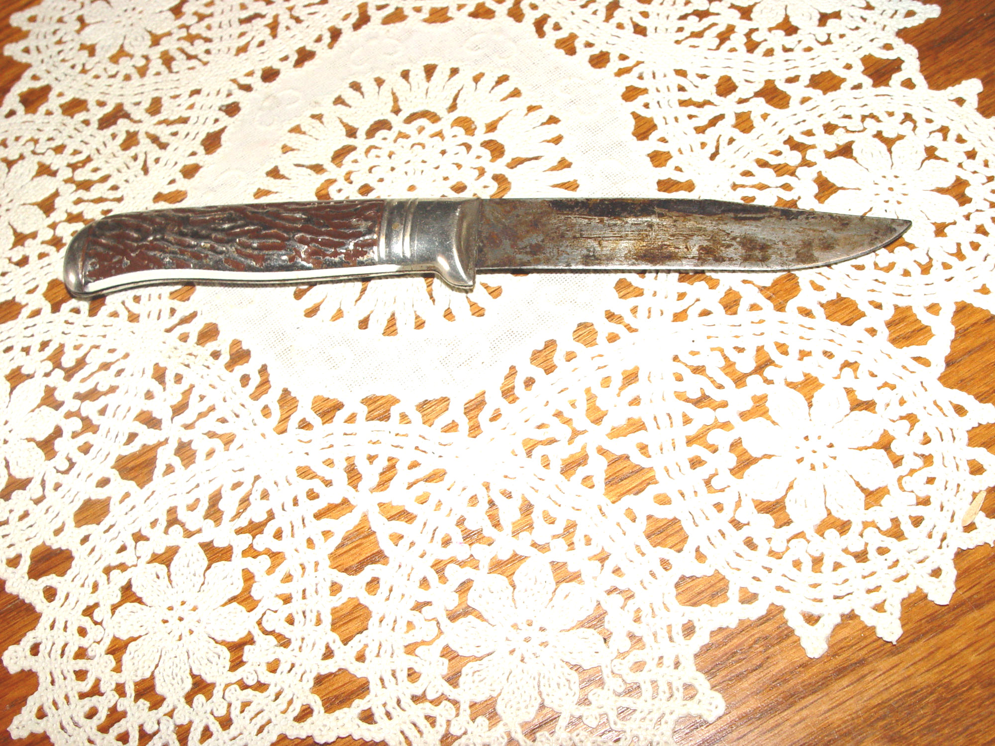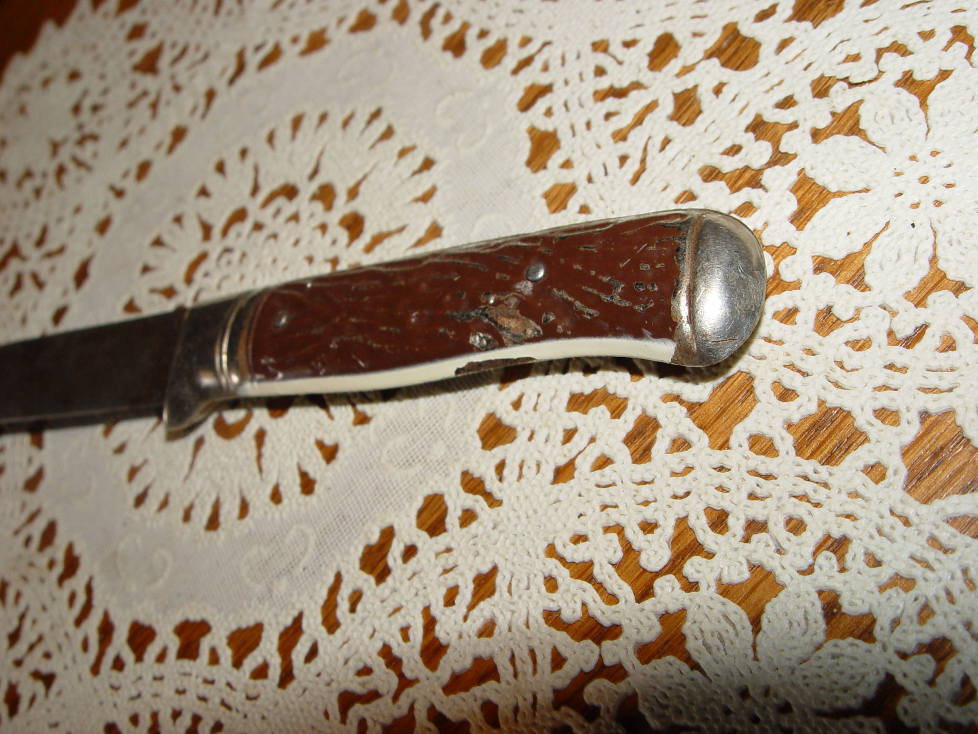 I have not cleaned this or polished. I will leave that to the buyer. Very light piece due to the tin handle. Neat gift idea for the knife collector or for a carver.