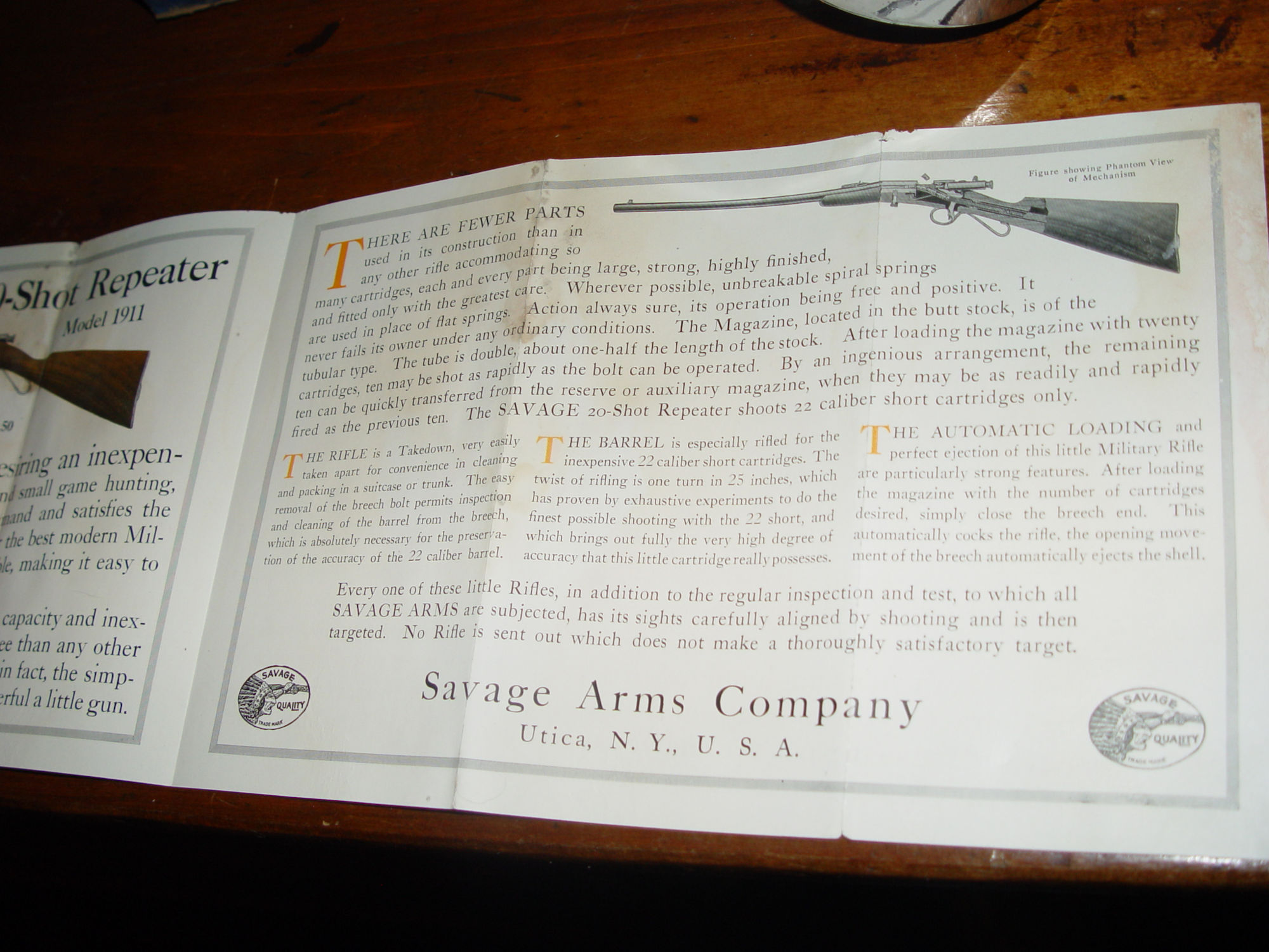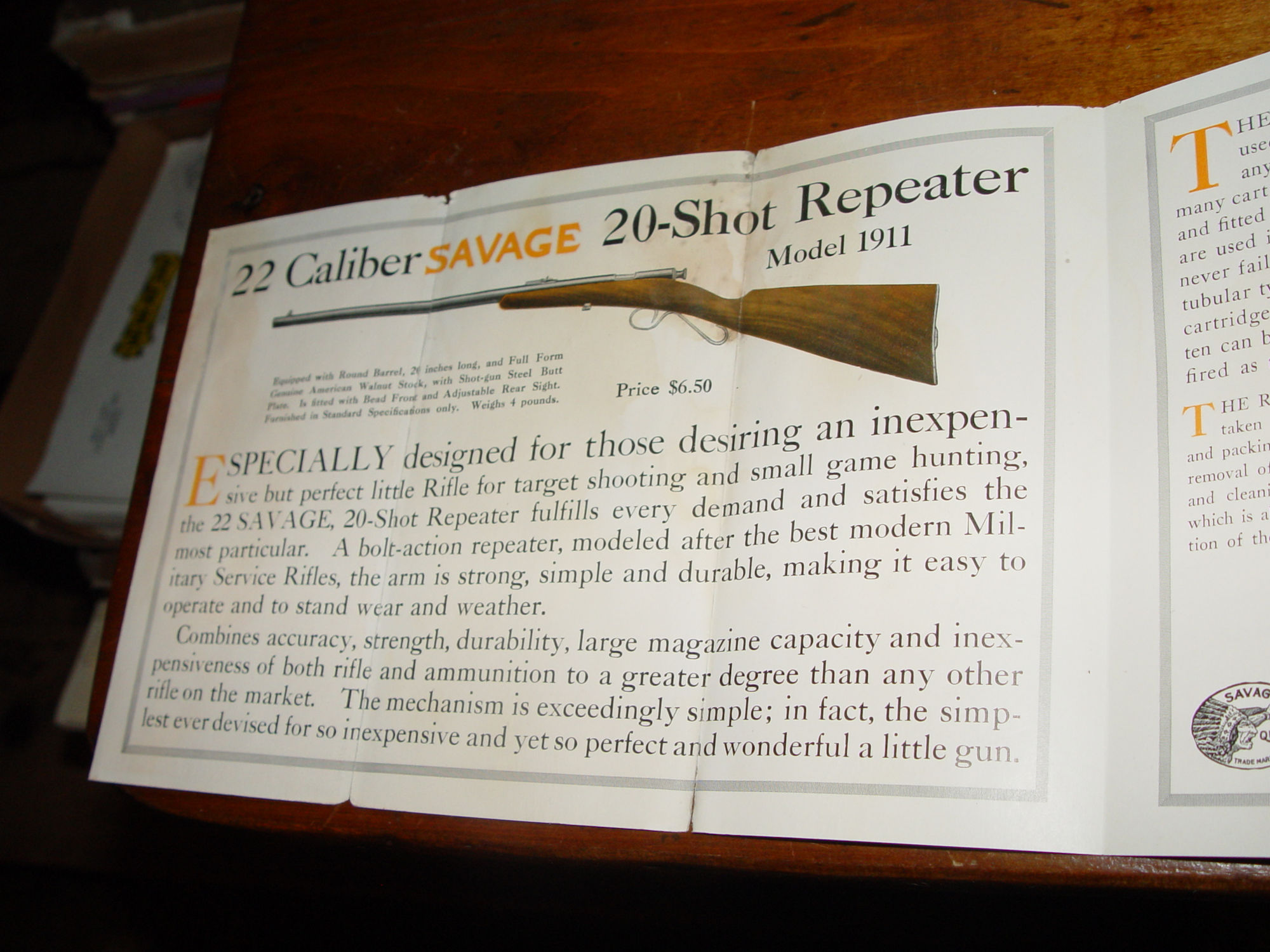 Original advertising pamphlet for the Savage Model 1911 22 Caliber Repeater. A scarce item.