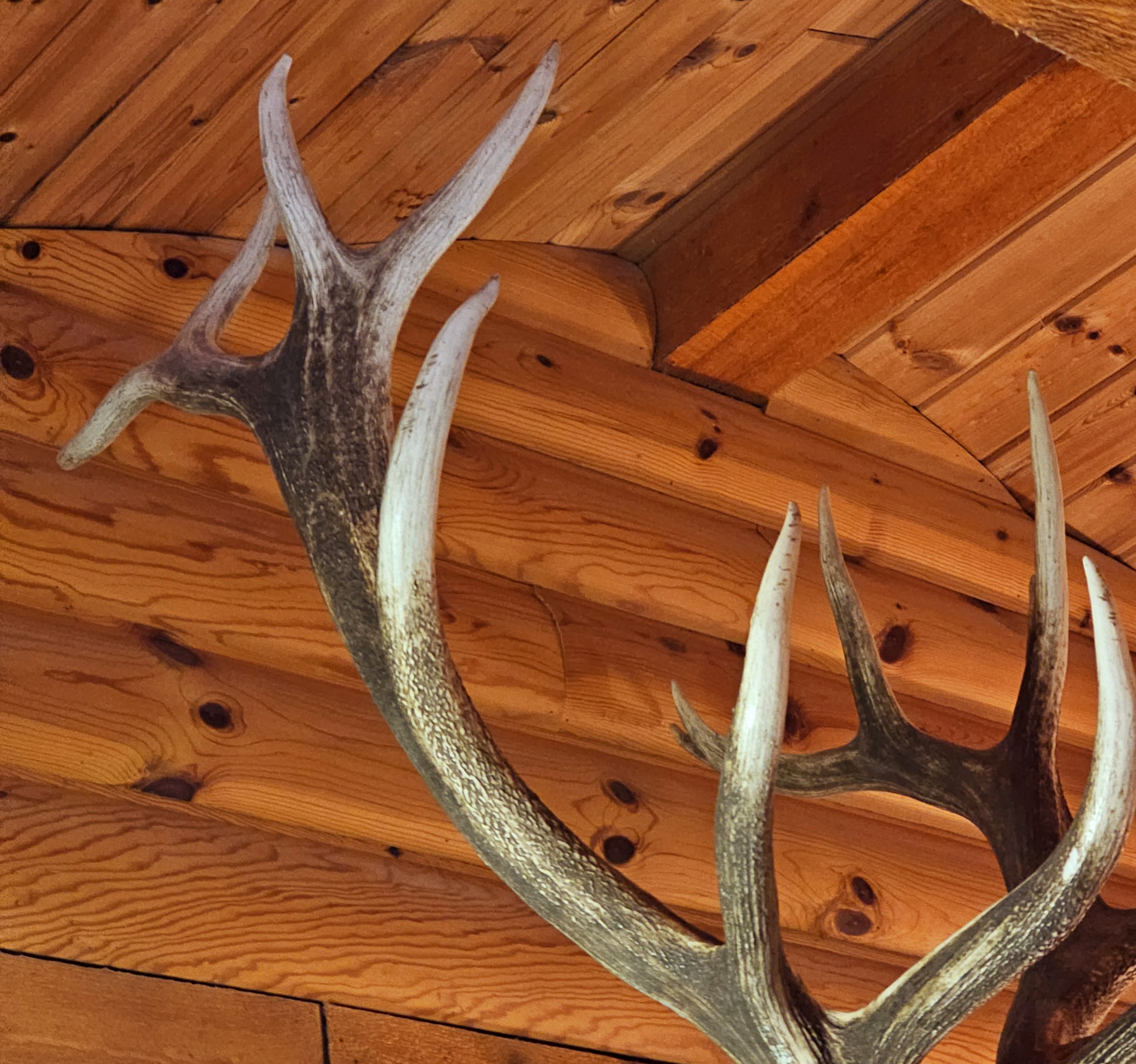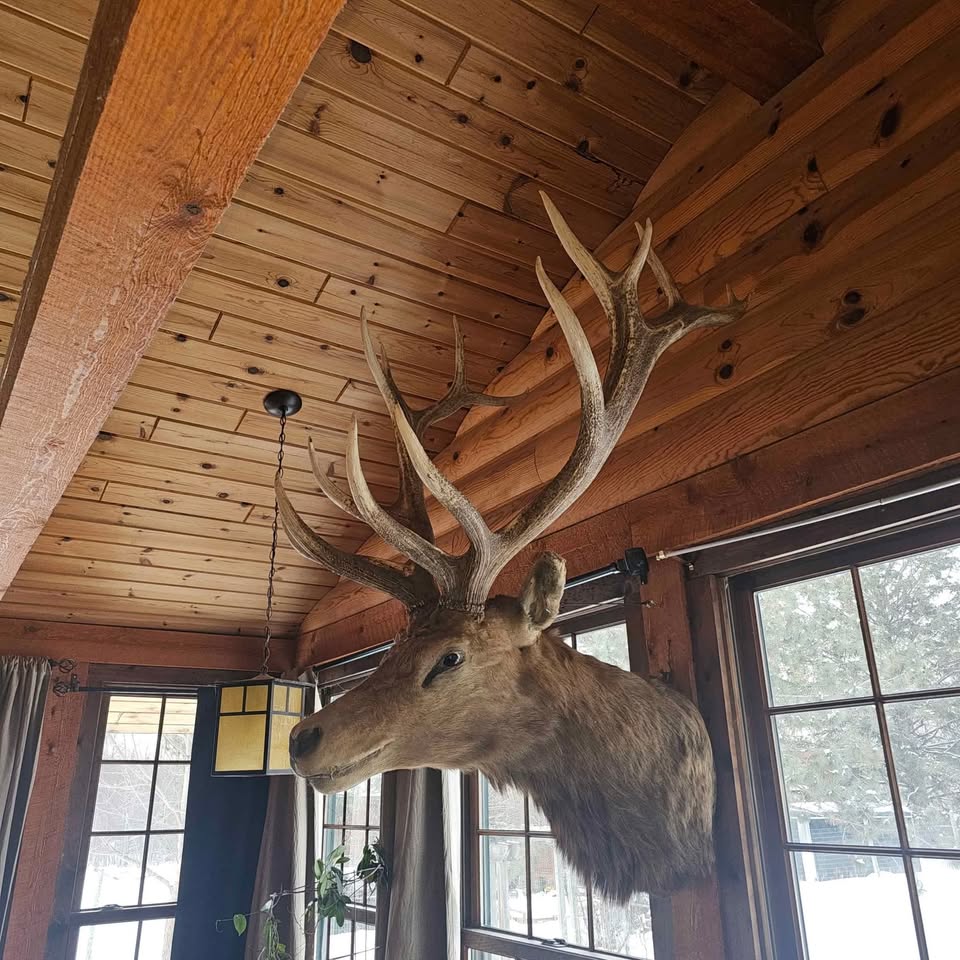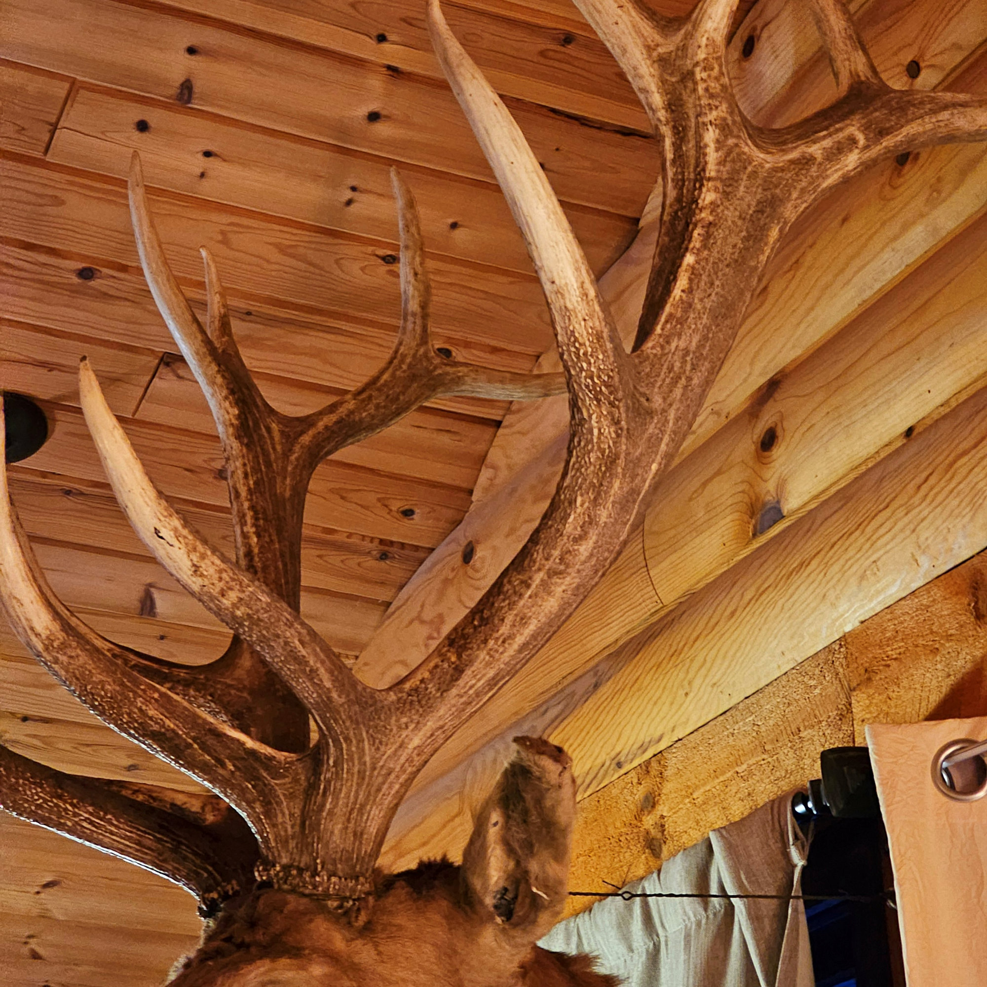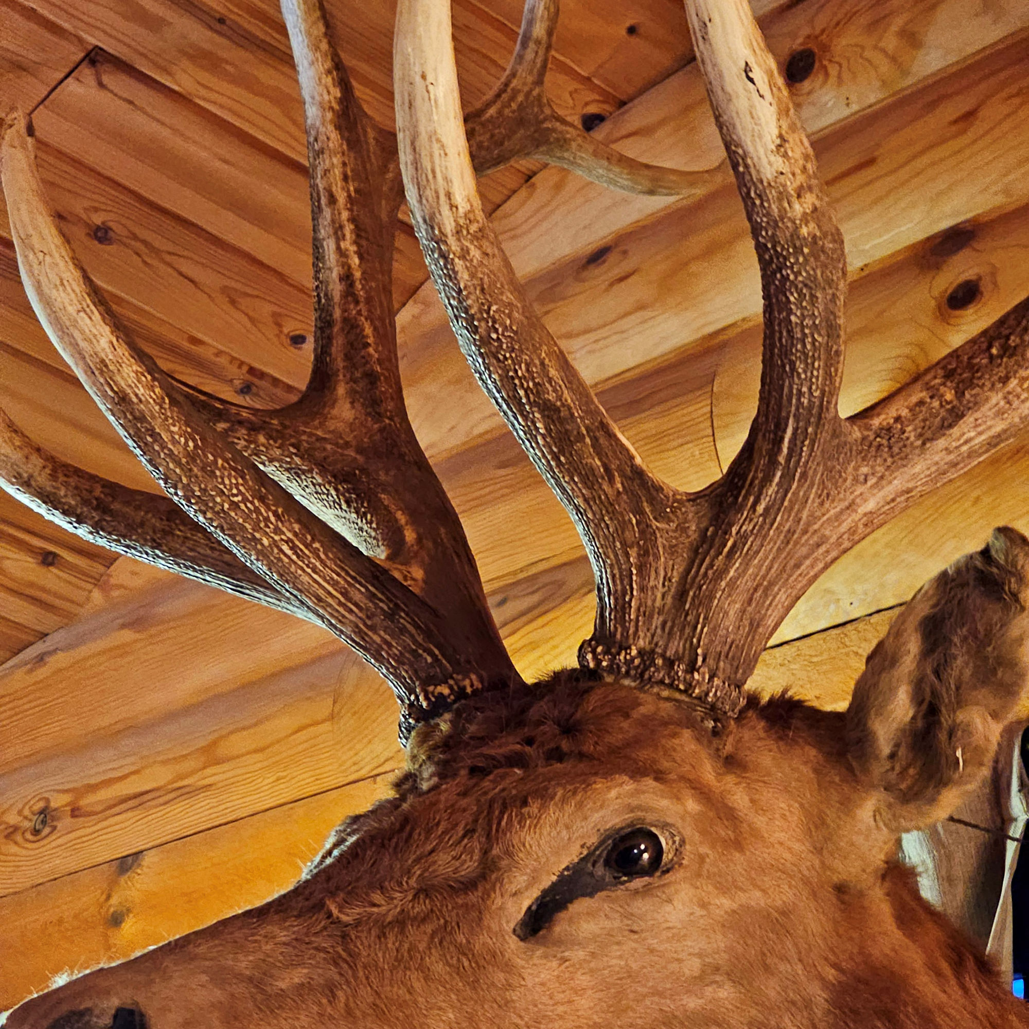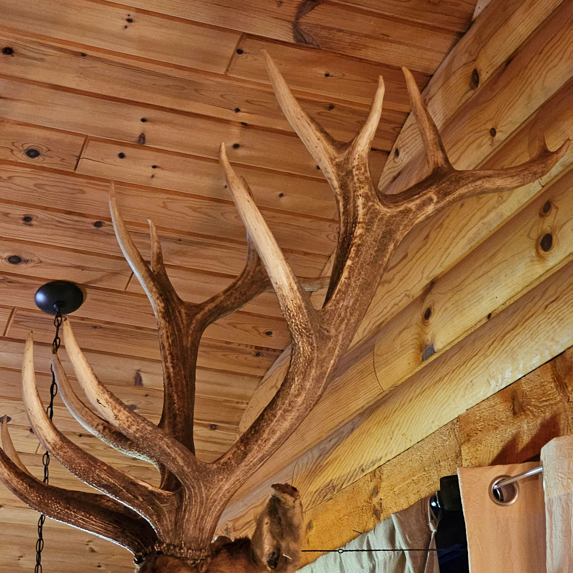 You don't see many this size and with such girth. Showing 7 points on the left (facing mount) and 8 points on the right. Research describes this as an Imperial Elk but will leave this to the professionals.