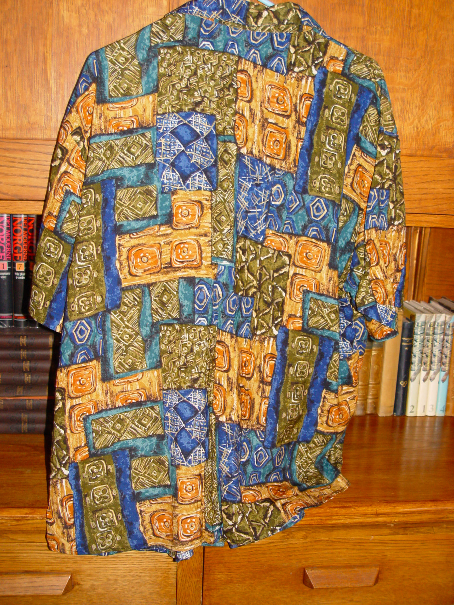 Nice vintage lightweight soft and comfortable shirt. Believed to be for men but can be both genders. Guessing c. 1980s. Beautiful bright and bold colors of oranges, muted greens and blues. Hawaiian in style, perfect for that Rockabilly, casual 50's style.