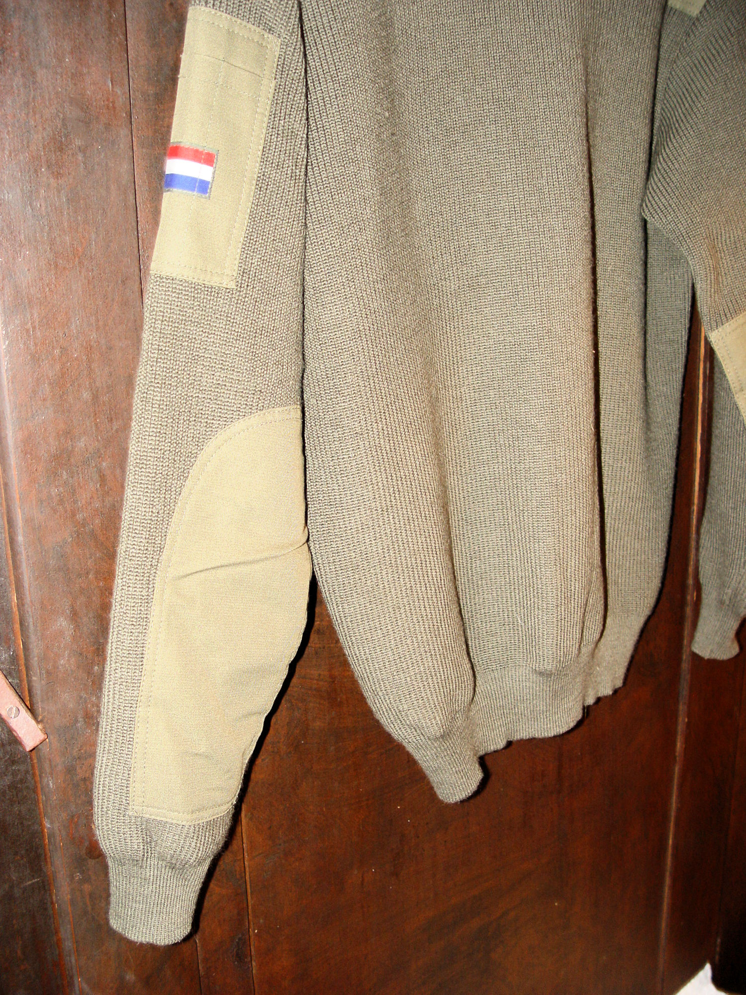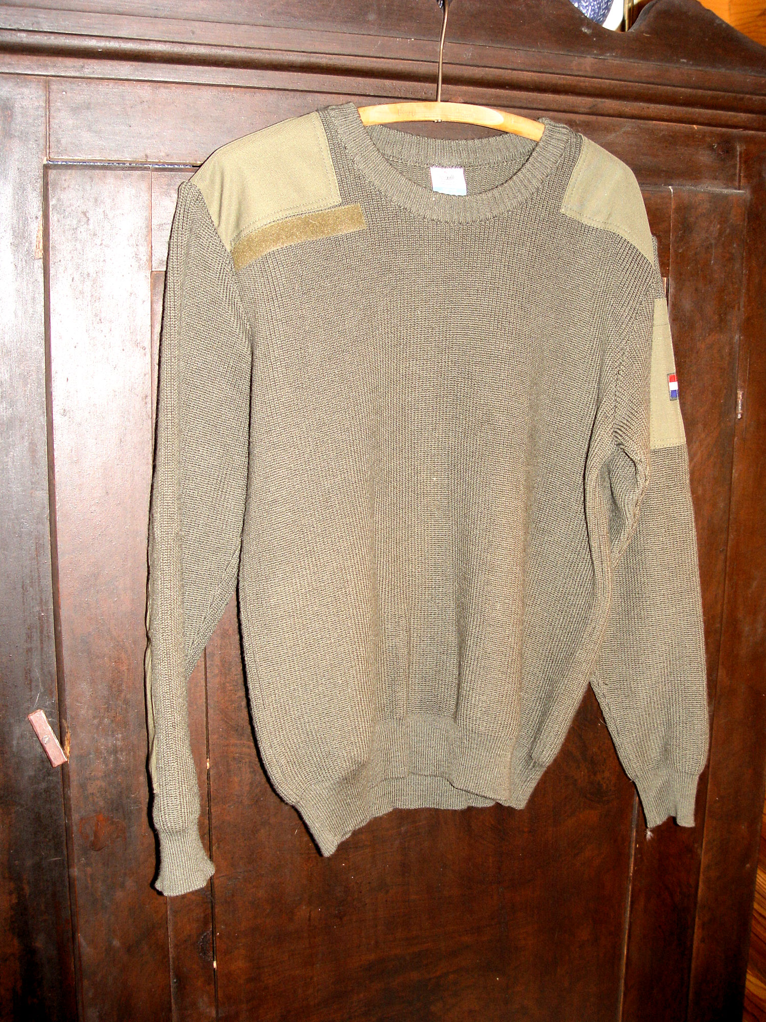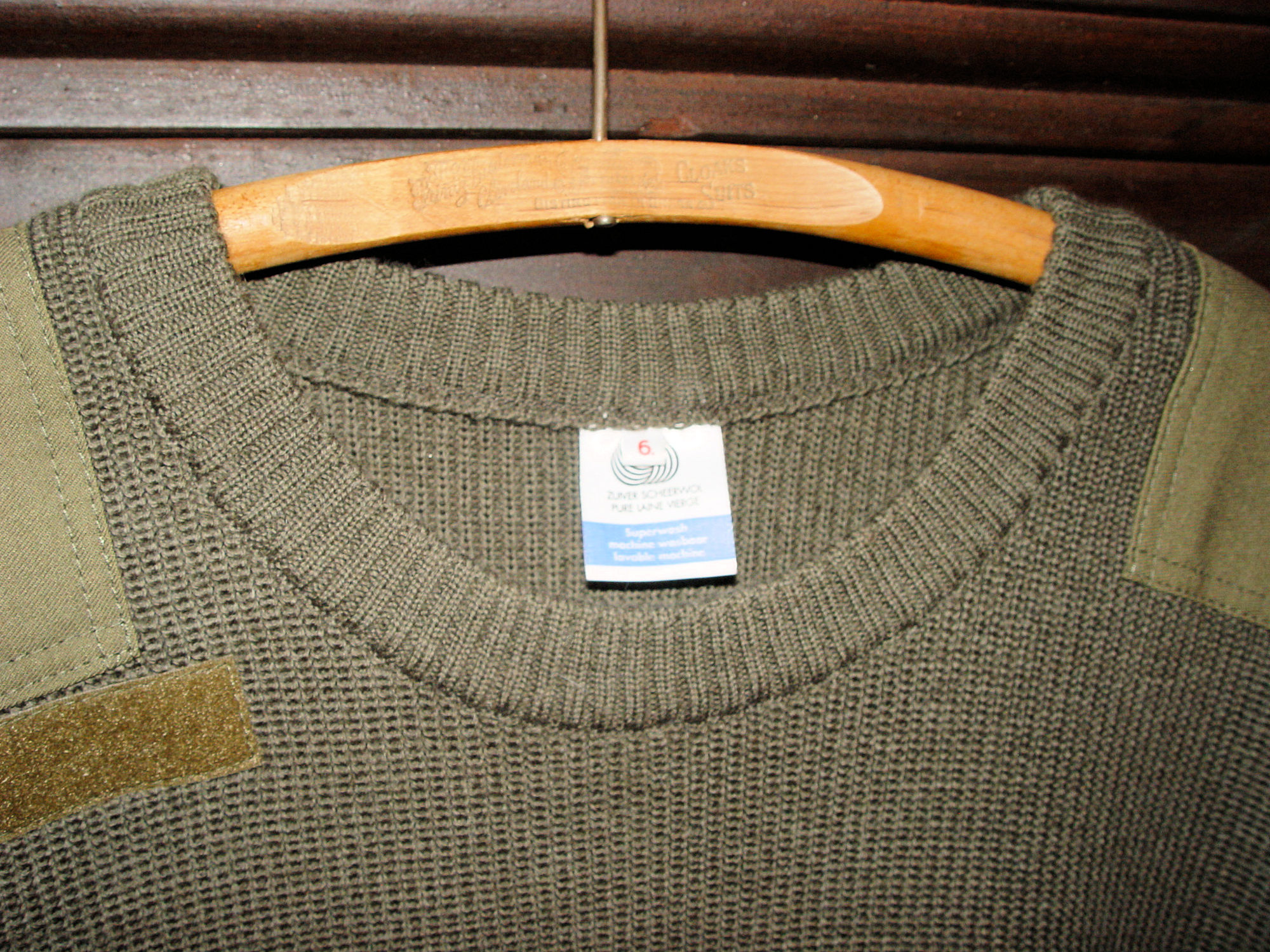 Vintage very nice German or Austrian Army Military Sweater. As-found in a military collector's estate. Tag reeds Zuiver Scheerwol, Pure New Wool. Pure Laine Vierge, “100% virgin wool.”