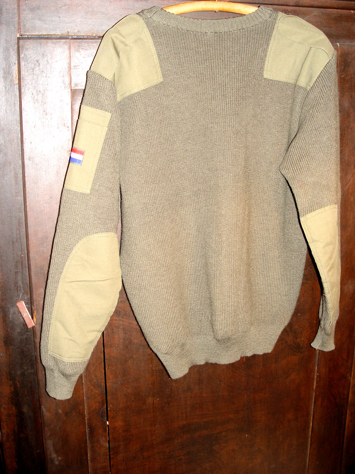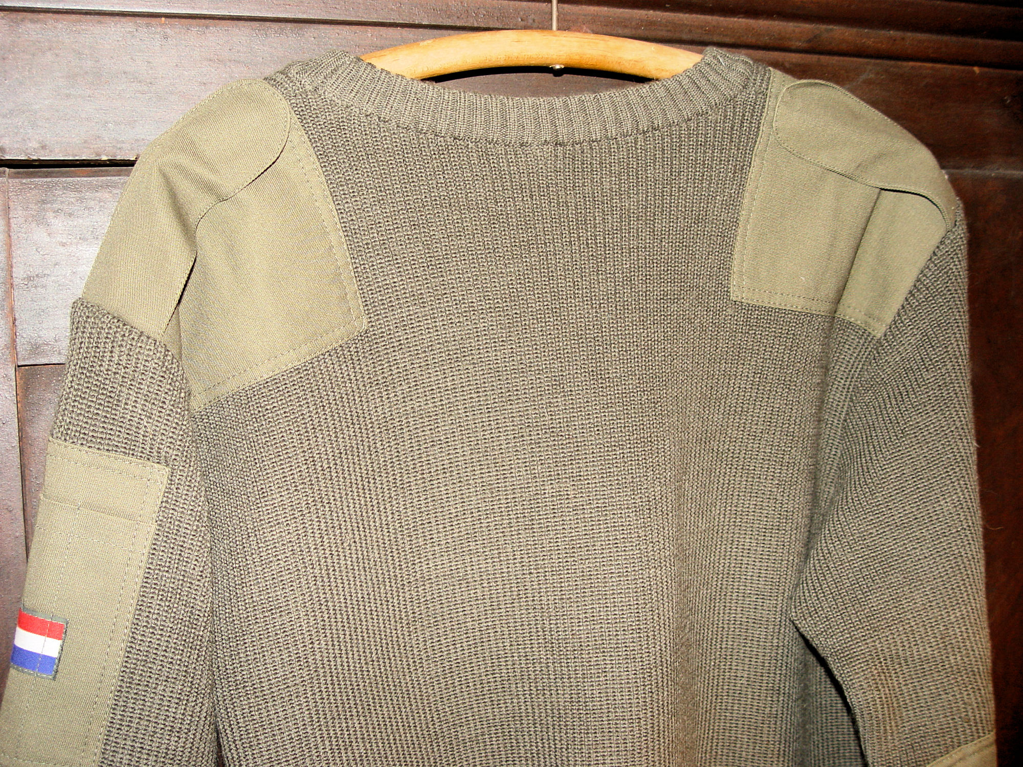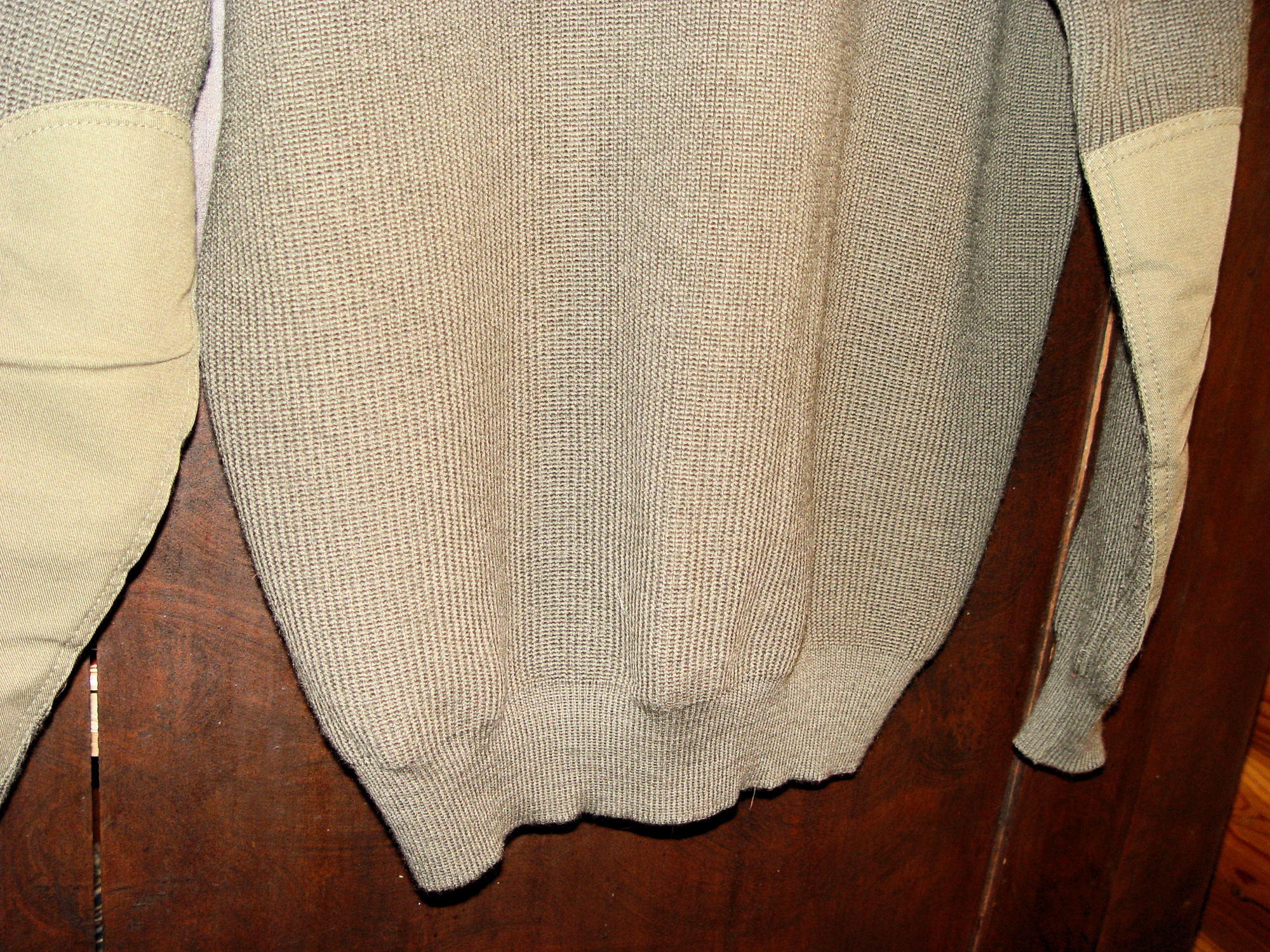 Army Alpine Sweater for the serious military styled man or woman. The round-neck sweater features a ribbed knitted neck, cuffs, and waistline. This is a reinforced sweater with elbow patches and shoulders include an authentic reinforced design to provide extra support and comfort. This is the perfect companion for all your activities or a casual day out. Really nice looking sweater with a dark green color, Flash makes look lighter.