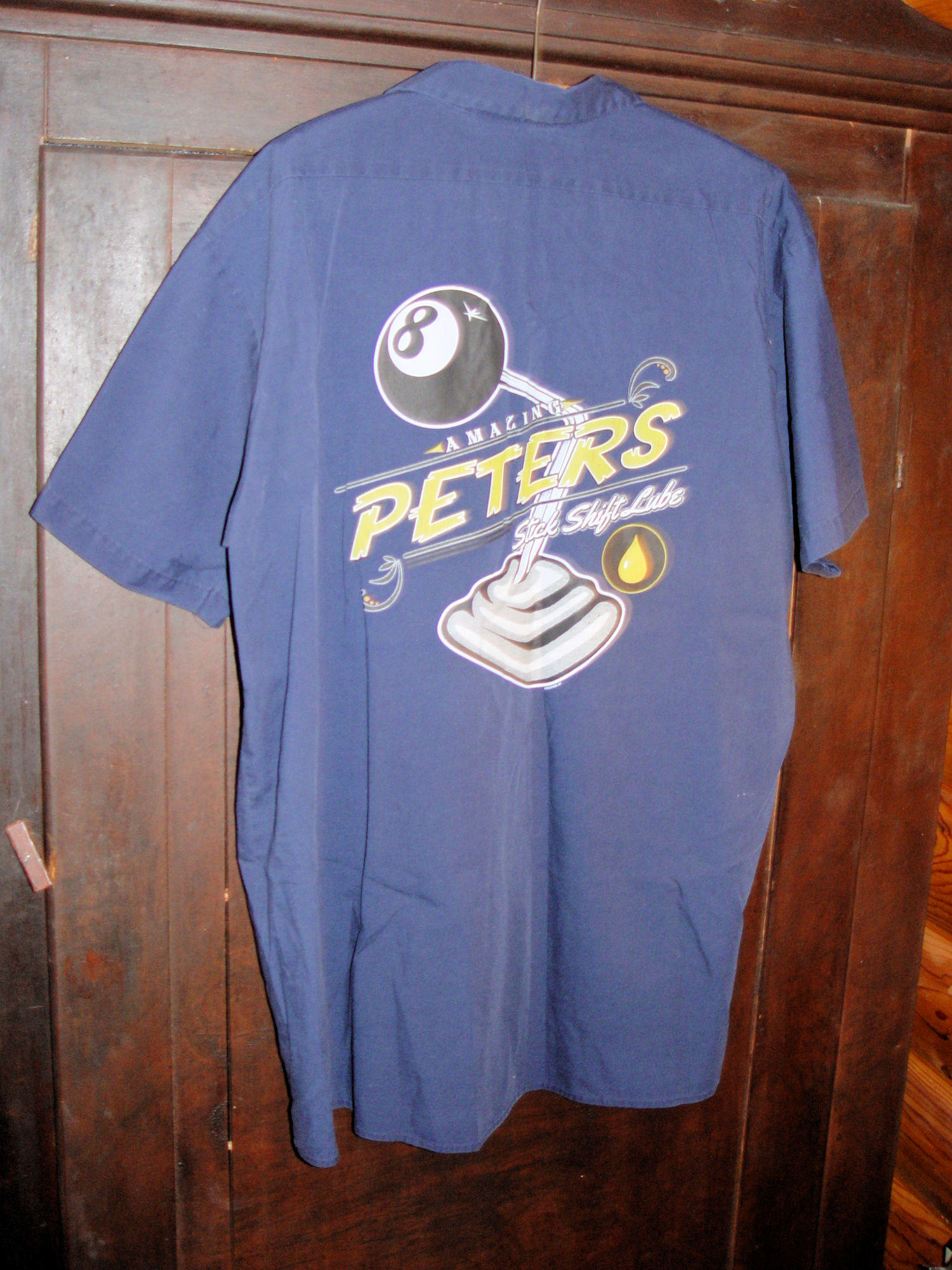Vintage Cintas Comfort Flex short sleeve work shirt. Awesome Hot Rod or Rat Rod This show the name Eddy on it with Eddy Farris on a tag at back of neck. The original Cintas tag reads 935-20 2XL men's size. Made in Honduras. Probably part of a uniform from the 1970s or 80s. The back has a fun design for the rodder ro car guy. (Amazing Stick Shift Lube).